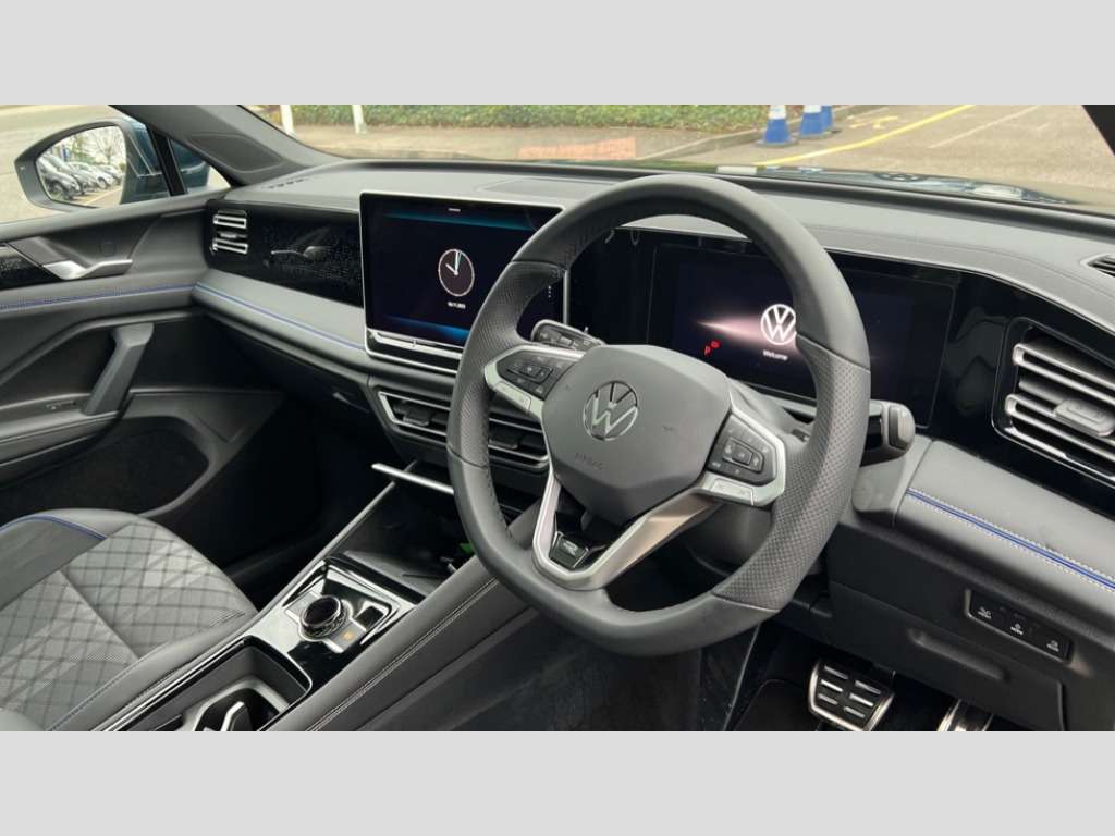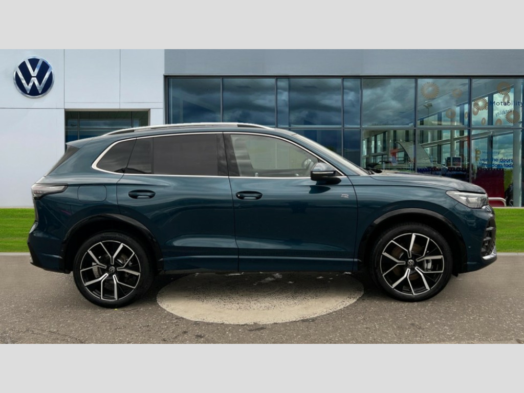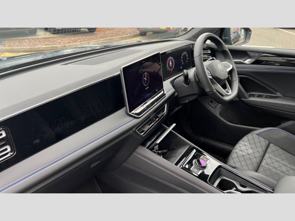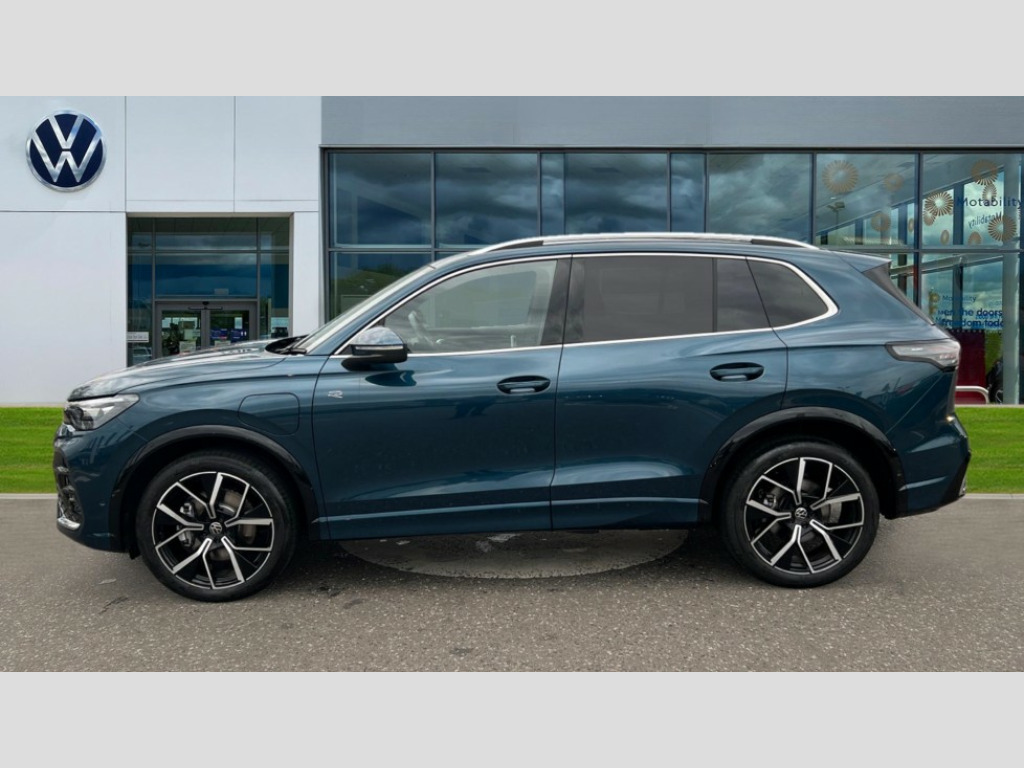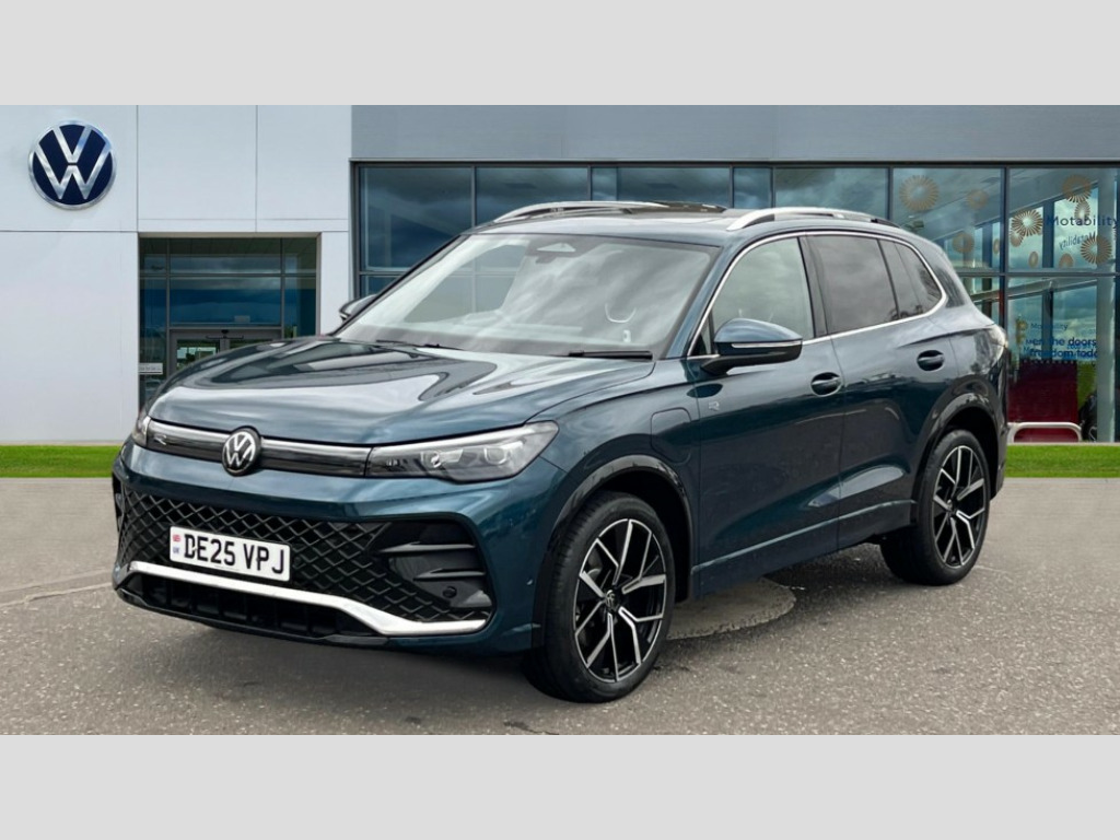 Volkswagen Tiguan 1.5 TSI 272 eHybrid R-Line 5dr DSG Adaptive cruise control (ACC), Advanced driver attention and drowsiness monitor, Bluetooth mobile phone interface, Car2X technology, Digital Cockpit Pro - 10.25" high resolution dash display screen with customisable menus and information, Dynamic road sign display, E-Sim card for online connectivity, eCall emergency call service, Front Assist - Autonomous emergency braking with pedestrian and cyclist monitoring, Lane change system, Side assist, Rear traffic alert and Exit warning system, Lane keeping system Lane Assist, Multifunction front facing camera, Oncoming vehicle braking when turning including swerve support, Park assistance plus with front and rear parking sensors, Power assisted steering with speed sensitive, Start/stop system with regenerative braking, Warning signal and warning light for front and rear seatbelts not fastened, Wireless App-Connect, Adaptive chassis control DCC pro includes driving mode selection, Charging cable Mode 3 Type 2 / 3 (16A), Front shock absorption, Front wheel drive, Rear shock absorption, Digital radio reception (DAB), Diversity antenna for FM reception, Air intake with Chrome trim, Ambient lighting with logo projection, Auto dimming interior rear view mirror, Automatic headlight control system, Body coloured door handles, Chrome moldings on the side windows, Coming/leaving home lighting function, Heat insulating glass in side and rear windows, Heated rear window, Heated windscreen washer jets, High level 3rd brake light, Illuminated door handle recesses, Illuminated lightline between headlamps, Laminated safety glass windshield, Rain sensor windscreen wipers, Rear fog light on one side, reversing light on both sides, Rear side wing doors, Rear wiper, 12V outlet in center console rear and in luggage compartment, 12V socket in centre console, 3 bench rear seats in 2nd row, Air care climatronic 3 zone air conditioning system with rear air conditioning control panel, Black roof lining, Brushed stainless steel pedals, Carpet mats, front and rear, Centre console with illuminated storage compartment with sliding cover and two drinks holders, Chrome elements on the mirror switch and power window switches and door pulls, Door and side trim panel with leatherette insert, Door sill protectors, Front centre armrest, Interior ambient lighting with 30 colour options, ISOFIX anchors for child seats on outer rear seats and front passenger seat compatible with i-Size, Mechanical rear seat release, Power adjustable lumbar support in front, Rear bench seat, split folding, longitudinally movable and folding with load-through hatch and centre armrest, Single front passenger seat, Soul headlining, Sports comfort seats in front, Sun visors with illuminated vanity mirrors, Three rear head restraints, Variable luggage compartment floor, 3 point seat belt for centre rear seats, 3 Point seat belts in front with pretensioners, 3 point seatbelts in outer rear with ECE label, Driver and front passenger airbag with front passenger airbag deactivation, Electronic parking brake with auto hold, Front and rear curtain airbags, Front and rear side airbags, Front centre airbag, Front disc brakes, Manual child proof rear door locks, Rear disc brakes, Two tone horn, Warning triangle, Anti theft wheel bolts, Decorative inserts, Interior door handle in matte chrome, Soul instrument panel, Tool kit for tyre mobility set, Tyre mobility kit including compressor and sealing foam