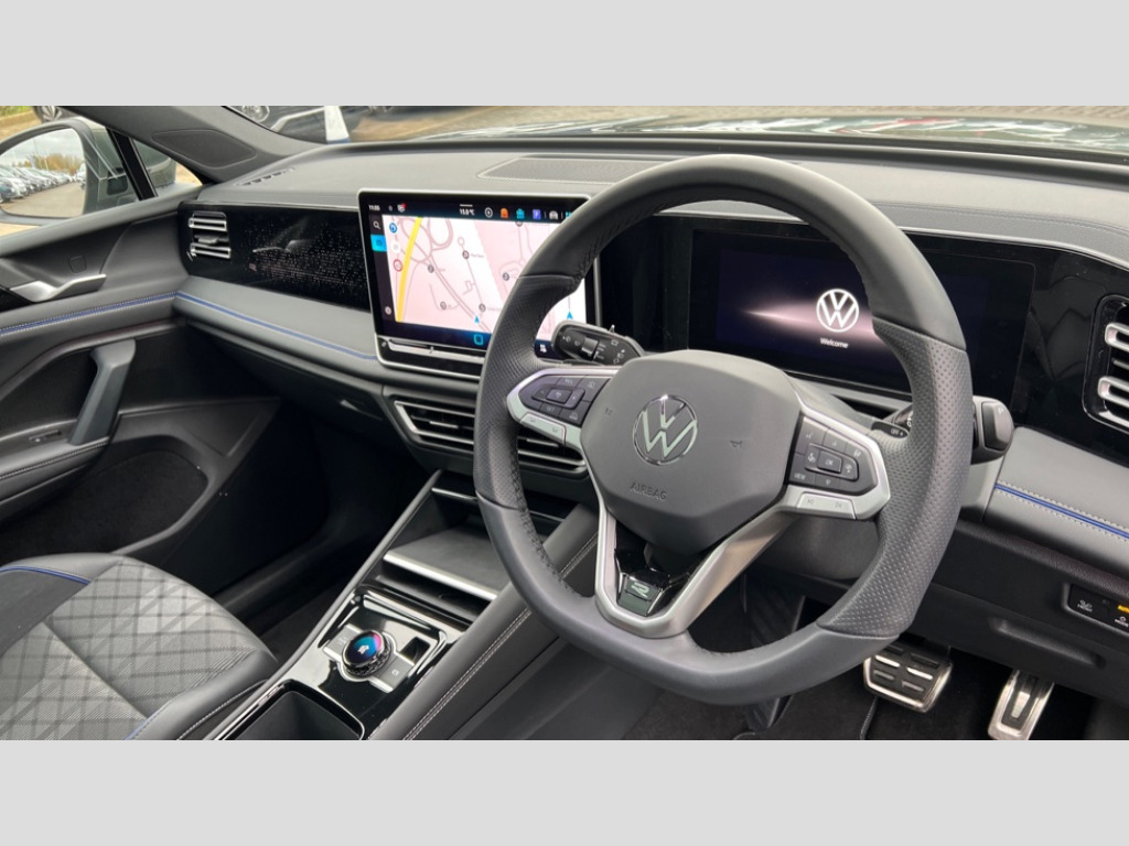 Volkswagen Tiguan 1.5 TSI 272 eHybrid R-Line 5dr DSG Adaptive cruise control (ACC), Advanced driver attention and drowsiness monitor, Bluetooth mobile phone interface, Car2X technology, Digital Cockpit Pro - 10.25" high resolution dash display screen with customisable menus and information, Dynamic road sign display, E-Sim card for online connectivity, eCall emergency call service, Front Assist - Autonomous emergency braking with pedestrian and cyclist monitoring, Lane change system, Side assist, Rear traffic alert and Exit warning system, Lane keeping system Lane Assist, Multifunction front facing camera, Oncoming vehicle braking when turning including swerve support, Park assistance plus with front and rear parking sensors, Power assisted steering with speed sensitive, Start/stop system with regenerative braking, Warning signal and warning light for front and rear seatbelts not fastened, Wireless App-Connect, Adaptive chassis control DCC pro includes driving mode selection, Charging cable Mode 3 Type 2 / 3 (16A), Front shock absorption, Front wheel drive, Rear shock absorption, Digital radio reception (DAB), Diversity antenna for FM reception, Air intake with Chrome trim, Ambient lighting with logo projection, Auto dimming interior rear view mirror, Automatic headlight control system, Body coloured door handles, Chrome moldings on the side windows, Coming/leaving home lighting function, Heat insulating glass in side and rear windows, Heated rear window, Heated windscreen washer jets, High level 3rd brake light, Illuminated door handle recesses, Illuminated lightline between headlamps, Laminated safety glass windshield, Rain sensor windscreen wipers, Rear fog light on one side, reversing light on both sides, Rear side wing doors, Rear wiper, 12V outlet in center console rear and in luggage compartment, 12V socket in centre console, 3 bench rear seats in 2nd row, Air care climatronic 3 zone air conditioning system with rear air conditioning control panel, Black roof lining, Brushed stainless steel pedals, Carpet mats, front and rear, Centre console with illuminated storage compartment with sliding cover and two drinks holders, Chrome elements on the mirror switch and power window switches and door pulls, Door and side trim panel with leatherette insert, Door sill protectors, Front centre armrest, Interior ambient lighting with 30 colour options, ISOFIX anchors for child seats on outer rear seats and front passenger seat compatible with i-Size, Mechanical rear seat release, Power adjustable lumbar support in front, Rear bench seat, split folding, longitudinally movable and folding with load-through hatch and centre armrest, Single front passenger seat, Soul headlining, Sports comfort seats in front, Sun visors with illuminated vanity mirrors, Three rear head restraints, Variable luggage compartment floor, 3 point seat belt for centre rear seats, 3 Point seat belts in front with pretensioners, 3 point seatbelts in outer rear with ECE label, Driver and front passenger airbag with front passenger airbag deactivation, Electronic parking brake with auto hold, Front and rear curtain airbags, Front and rear side airbags, Front centre airbag, Front disc brakes, Manual child proof rear door locks, Rear disc brakes, Two tone horn, Warning triangle, Anti theft wheel bolts, Decorative inserts, Interior door handle in matte chrome, Soul instrument panel, Tool kit for tyre mobility set, Tyre mobility kit including compressor and sealing foam