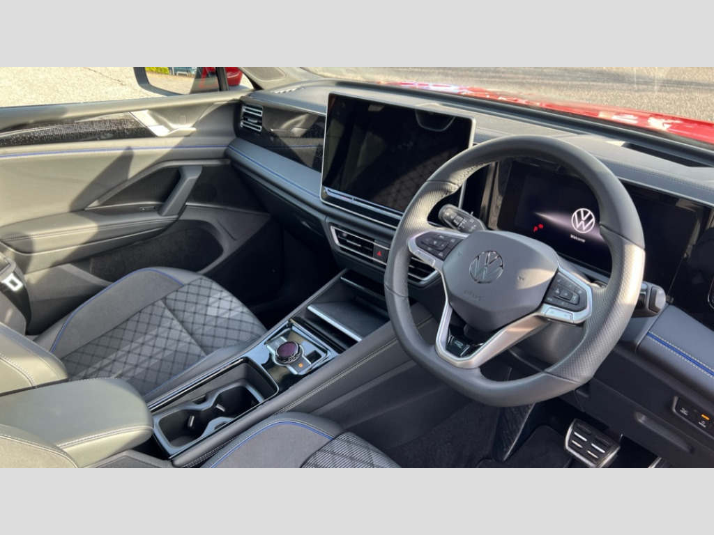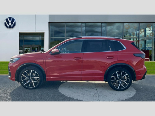 Volkswagen Tiguan 1.5 TSI 272 eHybrid R-Line 5dr DSG Adaptive cruise control (ACC), Advanced driver attention and drowsiness monitor, Bluetooth mobile phone interface, Car2X technology, Digital Cockpit Pro - 10.25" high resolution dash display screen with customisable menus and information, Dynamic road sign display, E-Sim card for online connectivity, eCall emergency call service, Front Assist - Autonomous emergency braking with pedestrian and cyclist monitoring, Lane change system, Side assist, Rear traffic alert and Exit warning system, Lane keeping system Lane Assist, Multifunction front facing camera, Oncoming vehicle braking when turning including swerve support, Park assistance plus with front and rear parking sensors, Power assisted steering with speed sensitive, Start/stop system with regenerative braking, Warning signal and warning light for front and rear seatbelts not fastened, Wireless App-Connect, Adaptive chassis control DCC pro includes driving mode selection, Charging cable Mode 3 Type 2 / 3 (16A), Front shock absorption, Front wheel drive, Rear shock absorption, Digital radio reception (DAB), Diversity antenna for FM reception, Air intake with Chrome trim, Ambient lighting with logo projection, Auto dimming interior rear view mirror, Automatic headlight control system, Body coloured door handles, Chrome moldings on the side windows, Coming/leaving home lighting function, Heat insulating glass in side and rear windows, Heated rear window, Heated windscreen washer jets, High level 3rd brake light, Illuminated door handle recesses, Illuminated lightline between headlamps, Laminated safety glass windshield, Rain sensor windscreen wipers, Rear fog light on one side, reversing light on both sides, Rear side wing doors, Rear wiper, 12V outlet in center console rear and in luggage compartment, 12V socket in centre console, 3 bench rear seats in 2nd row, Air care climatronic 3 zone air conditioning system with rear air conditioning control panel, Black roof lining, Brushed stainless steel pedals, Carpet mats, front and rear, Centre console with illuminated storage compartment with sliding cover and two drinks holders, Chrome elements on the mirror switch and power window switches and door pulls, Door and side trim panel with leatherette insert, Door sill protectors, Front centre armrest, Interior ambient lighting with 30 colour options, ISOFIX anchors for child seats on outer rear seats and front passenger seat compatible with i-Size, Mechanical rear seat release, Power adjustable lumbar support in front, Rear bench seat, split folding, longitudinally movable and folding with load-through hatch and centre armrest, Single front passenger seat, Soul headlining, Sports comfort seats in front, Sun visors with illuminated vanity mirrors, Three rear head restraints, Variable luggage compartment floor, 3 point seat belt for centre rear seats, 3 Point seat belts in front with pretensioners, 3 point seatbelts in outer rear with ECE label, Driver and front passenger airbag with front passenger airbag deactivation, Electronic parking brake with auto hold, Front and rear curtain airbags, Front and rear side airbags, Front centre airbag, Front disc brakes, Manual child proof rear door locks, Rear disc brakes, Two tone horn, Warning triangle, Anti theft wheel bolts, Decorative inserts, Interior door handle in matte chrome, Soul instrument panel, Tool kit for tyre mobility set, Tyre mobility kit including compressor and sealing foam