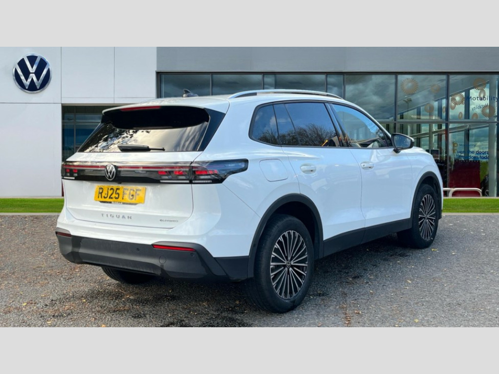 Volkswagen Tiguan 1.5 TSI eHybrid Match 5dr DSG Adaptive cruise control (ACC), Advanced driver attention and drowsiness monitor, Bluetooth mobile phone interface, Car2X technology, Digital Cockpit Pro - 10.25" high resolution dash display screen with customisable menus and information, Dynamic road sign display, E-Sim card for online connectivity, eCall emergency call service, Front Assist - Autonomous emergency braking with pedestrian and cyclist monitoring, Lane change system, Side assist, Rear traffic alert and Exit warning system, Lane keeping system Lane Assist, Multifunction front facing camera, Oncoming vehicle braking when turning including swerve support, Park assistance plus with front and rear parking sensors, Power assisted steering with speed sensitive, Start/stop system with regenerative braking, Warning signal and warning light for front and rear seatbelts not fastened, Wireless App-Connect, Adaptive chassis control DCC pro includes driving mode selection, Charging cable Mode 3 Type 2 / 3 (16A), Front shock absorption, Front wheel drive, Rear shock absorption, Digital radio reception (DAB), Diversity antenna for FM reception, Ambient lighting with logo projection, Auto dimming interior rear view mirror, Automatic headlight control system, Body coloured bumpers and air intake with chrome trim, Body coloured door handles, Body-coloured exterior mirror housings, Coming/leaving home lighting function, Heat insulating glass in side and rear windows, Heat insulating windshield, Heated rear window, High level 3rd brake light, Illuminated door handle recesses, Illuminated lightline between headlamps, Rain sensor windscreen wipers, Rear fog light on one side, reversing light on both sides, Rear side wing doors, Rear wiper, 12V outlet in center console rear and in luggage compartment, 12V socket in centre console, 3 bench rear seats in 2nd row, Air care climatronic 3 zone air conditioning system with rear air conditioning control panel, Carpet mats, front and rear, Ceramique headlining, Door and side trim panel in foam film and woven fabric, Front centre armrest, ISOFIX anchors for child seats on outer rear seats and front passenger seat compatible with i-Size, Mechanical rear seat release, Power adjustable lumbar support in front, Rear bench seat, split folding, longitudinally movable and folding with load-through hatch and centre armrest, Safety optimised front head restraints, Single front passenger seat, Sun visors with illuminated vanity mirrors, Three rear head restraints, Variable luggage compartment floor, Comfort package incl. Memory feature for Park assist and Safelock - Tiguan, Design package - Tiguan, 3 point seat belt for centre rear seats, 3 Point seat belts in front with pretensioners, 3 point seatbelts in outer rear with ECE label, Driver and front passenger airbag with front passenger airbag deactivation, Electronic parking brake with auto hold, Front and rear curtain airbags, Front and rear side airbags, Front centre airbag, Front disc brakes, Hill start assist, Manual child proof rear door locks, Rear disc brakes, Two tone horn, Warning triangle, Anti theft wheel bolts, Soul instrument panel, Tool kit for tyre mobility set, Tyre mobility kit including compressor and sealing foam