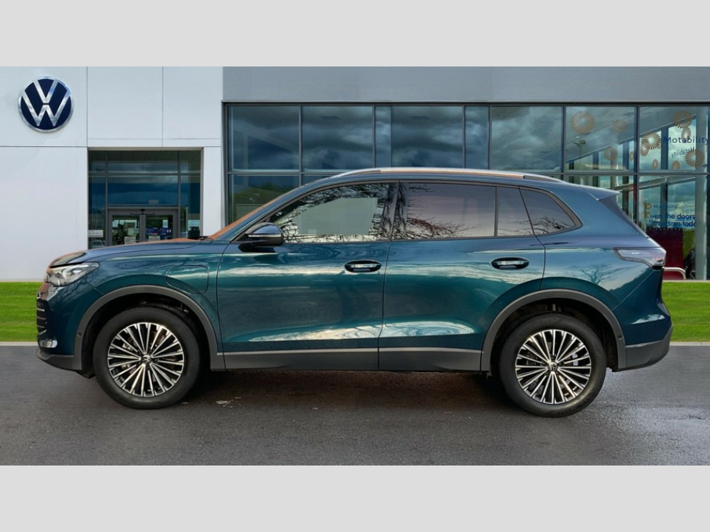 Volkswagen Tiguan 1.5 TSI eHybrid Match 5dr DSG Adaptive cruise control (ACC), Advanced driver attention and drowsiness monitor, Bluetooth mobile phone interface, Car2X technology, Digital Cockpit Pro - 10.25" high resolution dash display screen with customisable menus and information, Dynamic road sign display, E-Sim card for online connectivity, eCall emergency call service, Front Assist - Autonomous emergency braking with pedestrian and cyclist monitoring, Lane change system, Side assist, Rear traffic alert and Exit warning system, Lane keeping system Lane Assist, Multifunction front facing camera, Oncoming vehicle braking when turning including swerve support, Park assistance plus with front and rear parking sensors, Power assisted steering with speed sensitive, Start/stop system with regenerative braking, Warning signal and warning light for front and rear seatbelts not fastened, Wireless App-Connect, Adaptive chassis control DCC pro includes driving mode selection, Charging cable Mode 3 Type 2 / 3 (16A), Front shock absorption, Front wheel drive, Rear shock absorption, Digital radio reception (DAB), Diversity antenna for FM reception, Ambient lighting with logo projection, Auto dimming interior rear view mirror, Automatic headlight control system, Body coloured bumpers and air intake with chrome trim, Body coloured door handles, Body-coloured exterior mirror housings, Coming/leaving home lighting function, Heat insulating glass in side and rear windows, Heat insulating windshield, Heated rear window, High level 3rd brake light, Illuminated door handle recesses, Illuminated lightline between headlamps, Rain sensor windscreen wipers, Rear fog light on one side, reversing light on both sides, Rear side wing doors, Rear wiper, 12V outlet in center console rear and in luggage compartment, 12V socket in centre console, 3 bench rear seats in 2nd row, Air care climatronic 3 zone air conditioning system with rear air conditioning control panel, Carpet mats, front and rear, Ceramique headlining, Door and side trim panel in foam film and woven fabric, Front centre armrest, ISOFIX anchors for child seats on outer rear seats and front passenger seat compatible with i-Size, Mechanical rear seat release, Power adjustable lumbar support in front, Rear bench seat, split folding, longitudinally movable and folding with load-through hatch and centre armrest, Safety optimised front head restraints, Single front passenger seat, Sun visors with illuminated vanity mirrors, Three rear head restraints, Variable luggage compartment floor, Comfort package incl. Memory feature for Park assist and Safelock - Tiguan, Design package - Tiguan, 3 point seat belt for centre rear seats, 3 Point seat belts in front with pretensioners, 3 point seatbelts in outer rear with ECE label, Driver and front passenger airbag with front passenger airbag deactivation, Electronic parking brake with auto hold, Front and rear curtain airbags, Front and rear side airbags, Front centre airbag, Front disc brakes, Hill start assist, Manual child proof rear door locks, Rear disc brakes, Two tone horn, Warning triangle, Anti theft wheel bolts, Soul instrument panel, Tool kit for tyre mobility set, Tyre mobility kit including compressor and sealing foam