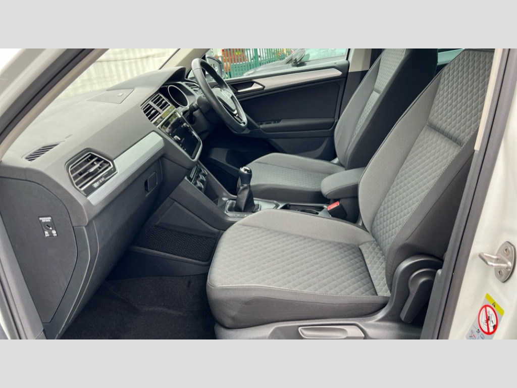 Volkswagen Tiguan 1.5 TSi EVO 130 Match 5dr Adaptive cruise control, App-Connect, Bluetooth phone integration system, Distance control assist, Driver profile selection, Electromechanical power steering, Fatigue detection system, Front assist, radar sensor controlled distance monitor, city emergency braking + predictive pedestrian protection, Instrument cluster, Lane assist, Low washer fluid warning light, Multifunction colour display, Outside temperature display, Park assist with rear view camera, Remote tailgate release, Service interval indicator, Speed limiter, Start/Stop function, Warning lights, XDS electronic differential lock, 2x USB sockets in front, 4 X 20 watt output, DAB Digital radio, MP3 compatible single CD player, SD card slot, Simultaneous pairing of 2 compatible mobile devices, SMS functionality - read, compose and send SMS messages using touch-screen display, Title and cover art display, Auto dimming interior mirror, Automatic activation of hazard warning lights, Black door protector with chrome inserts, Body colour door handles, Body colour door mirrors, Body coloured bumpers, Chrome side window surrounds, Chrome trimmed radiator grille, Coming/leaving home lighting function, Dusk sensor + auto driving lights, Electric folding door mirrors, Electric heated + adjustable door mirrors, Front air intake with chrome strip, Front and rear electric windows, Halogen clear headlights with integrated indicators and range adjustable, Heated rear window, High level 3rd brake light, LED rear number plate lights, Rain sensor windscreen wipers, Rear windscreen washer and wiper with interval delay, Side door sills with chrome inserts, Silver roof rails, Tinted windows (B pillar backwards), Windscreen wipers/ intermittent wipe + 4 position delay, 12V Accessory socket in centre console, 3 rear headrests, 3 zone climate control, 4 load lashing points, 40:20:40 split folding rear seats, Driver + front passenger lumbar support, Drivers underseat storage, Foldable passenger seatback, Front + rear carpet mats, Front centre armrest with 12v socket, Front centre armrest with storage + rear 2 air vents + cupholders, Front seat back storage pockets, Front seatback folding tables, Height/reach adjust steering wheel, Illuminated driver/passenger vanity mirrors, Illuminated scuff plates, Instrument lighting white adjustable panel illumination, Interior light with delay, Isofix Preparation 2 Rear child seats, Leather gear knob, Load through provision with 2 cupholders when folded, Lockable cooled glovebox, Luggage compartment lighting, Luggage compartment side storage, Map pockets on front seats, Passenger seat height adjuster, Passenger underseat drawer, Rear cupholders, Removable luggage cover, Sliding/reclining rear seats, Storage compartment in driver's door, Storage compartment in passenger's door, Storage compartment in rear doors, Storage tray on dashboard, Sunglasses storage, Variable boot floor, 3 rear 3 point seatbelts, ABS+EBD+Brake assist, Active bonnet, Active pedestrian safety system, Curtain airbags, Driver/Front Passenger airbags, Driver/Passenger whiplash optimised head restraints, Drivers knee airbag, DTC - Drag torque control, Electronic parking brake with auto hold, ESP with EDL + ASR, First aid kit, Front side airbags, Front ventilated disc brakes and rear disc brakes, Head airbag system, Height adjustable front 3 point seatbelts + pretensioners, Hill hold control, Passenger airbag deactivate switch, Passenger knee airbag, Proactive preventive occupant protection, Rear side airbags, Rigid safety cell with front and rear crumple zones, Seatbelt warning lamp and buzzer, Two tone horn, Warning triangle, Alarm with interior protection, Electronic engine immobiliser, Remote central locking with 2 remote folding keys, Chrome door trim inserts, Titan silver decorative inserts, Steel space saver spare wheel