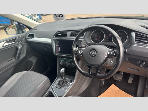 Volkswagen Tiguan 1.5 TSi EVO 150 Match 5dr DSG 2D/3D map view, App-Connect, Bluetooth phone integration system, Car information display, Cruise control + driver alert system, Distance control assist, Driver alert system with fatigue detection, Driver profile selection, Front assist, radar sensor controlled distance monitor, city emergency braking + predictive pedestrian protection, Instrument cluster, Lane assist, Lights on warning, Multifunction computer with visual gear change recommendation for fuel consumption, Outside temperature display, Power assisted speed sensitive steering, Service interval indicator, Speed limiter, Start/Stop function, Warning sound and light for doors and tailgate open, Battery regeneration during braking, XDS electronic differential lock for improved traction and handling, 2 x USB connection + USB charging socket, 4 X 20 watt output, DAB Digital radio, SD card slot, Simultaneous pairing of 2 compatible mobile devices, SMS functionality - read, compose and send SMS messages using touch-screen display, Title and cover art display, Auto dimming interior mirror, Automatic activation of hazard warning lights, Black grained lower door protectors with chrome inserts, Body colour door handles, Body colour door mirrors, Body coloured bumpers, Chrome side window surrounds, Chrome trimmed radiator grille, Coming/leaving home lighting function, Dusk sensor + auto driving lights, Electrically heated and foldable door mirrors, door mirror puddle lights and reverse activated kerb view adjustment on passenger's door mirror, Front and rear electric windows, Heated rear window, High level 3rd brake light, LED rear number plate lights, Piano black front air intake and rear diffuser, Rain sensor windscreen wipers, Rear tinted glass from B-pillar backwards approx 65% tinted, Rear windscreen washer and wiper with interval delay, Side door sills with chrome inserts, Silver roof rails, Windscreen wipers/ intermittent wipe + 4 position delay, 12V socket in centre console storage area, 2 cup holders in front, 3 rear headrests, 3 zone climate control, 4 load lashing points, 40:20:40 split folding rear seats, Foldable front passenger seat backrest, Front + rear carpet mats, Front centre armrest with 12v socket, Front centre armrest with storage + rear 2 air vents, Front seat back storage pockets, Front seatback folding tables, Height/reach adjust steering wheel, Illuminated driver/passenger vanity mirrors, Illuminated scuff plates, Instrument lighting white adjustable panel illumination, Interior light with delay, Isofix Preparation 2 Rear child seats, Leather gear knob, Load through provision with 2 cupholders when folded, Lockable cooled glovebox, Luggage compartment lighting, Map pockets on front seats, Passenger seat height adjuster, Removable luggage cover, Sliding/reclining rear seats, Storage compartment in driver's door, Storage compartment in passenger's door, Storage compartment in rear doors, Storage compartments in luggage area left and right, Storage tray on dashboard, Sunglasses storage, Variable boot floor, height adjustable and removable, 3 rear 3 point seatbelts, ABS+EBD+Brake assist, Active bonnet, Active pedestrian safety system, Curtain airbags, Driver/Front Passenger airbags, Driver/Passenger whiplash optimised head restraints, Drivers knee airbag, DTC - Drag torque control, Electronic parking brake with auto hold, ESC with EDL, ASR, EDTC and trailer stabilisation function, First aid kit, Front seat side impact airbags, Front side airbags, Front ventilated disc brakes and rear disc brakes, Head airbag system, Height adjustable front 3 point seatbelts + pretensioners, Hill hold control, Passenger airbag deactivate switch, Passenger knee airbag, Pre crash preventive occupant protection, Rear side airbags, Rigid safety cell with front and rear crumple zones, Two tone horn, Warning sound and light for front seat belts if unfastened, Warning triangle, Alarm with interior protection, Electronic engine immobiliser, Remote central locking with 2 remote folding keys, Chrome door trim inserts, Titan silver decorative inserts in dash and door panels