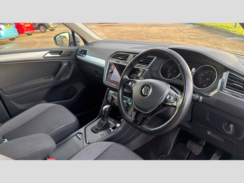 Volkswagen Tiguan 1.5 TSi EVO 150 Match 5dr DSG App-Connect, Bluetooth phone integration system, Cruise control + driver alert system, Distance control assist, Driver profile selection, Fatigue detection system, Front assist, radar sensor controlled distance monitor, city emergency braking + predictive pedestrian protection, Instrument cluster, Lane assist, Low washer fluid warning light, Outside temperature display, Park assist with rear view camera, Service interval indicator, Speed limiter, Start/Stop function, Warning lights, We Connect Go Dongle, XDS electronic differential lock, 2x USB sockets in front, 4 X 20 watt output, DAB Digital radio, SD card slot, Simultaneous pairing of 2 compatible mobile devices, SMS functionality - read, compose and send SMS messages using touch-screen display, Title and cover art display, Auto dimming interior mirror, Automatic activation of hazard warning lights, Black door protector with chrome inserts, Body colour door handles, Body colour door mirrors, Body coloured bumpers, Chrome side window surrounds, Chrome trimmed radiator grille, Coming/leaving home lighting function, Dusk sensor + auto driving lights, Electric folding door mirrors, Electric heated + adjustable door mirrors, Front air intake with chrome strip, Front and rear electric windows, Heated rear window, High level 3rd brake light, LED rear number plate lights, Rain sensor windscreen wipers, Rear tinted glass from B-pillar backwards approx 65% tinted, Rear windscreen washer and wiper with interval delay, Side door sills with chrome inserts, Silver roof rails, Windscreen wipers/ intermittent wipe + 4 position delay, 12V Accessory socket in centre console, 3 rear headrests, 3 zone climate control, 4 load lashing points, 40:20:40 split folding rear seats, Drivers underseat storage, Foldable passenger seatback, Front + rear carpet mats, Front centre armrest with 12v socket, Front centre armrest with storage + rear 2 air vents + cupholders, Front seat back storage pockets, Front seatback folding tables, Height/reach adjust steering wheel, Illuminated driver/passenger vanity mirrors, Illuminated scuff plates, Instrument lighting white adjustable panel illumination, Interior light with delay, Isofix Preparation 2 Rear child seats, Leather gear knob, Load through provision with 2 cupholders when folded, Lockable cooled glovebox, Luggage compartment lighting, Luggage compartment side storage, Map pockets on front seats, Passenger seat height adjuster, Passenger underseat drawer, Rear cupholders, Removable luggage cover, Sliding/reclining rear seats, Storage compartment in driver's door, Storage compartment in passenger's door, Storage compartment in rear doors, Storage tray on dashboard, Sunglasses storage, Variable boot floor, 3 rear 3 point seatbelts, ABS+EBD+Brake assist, Active bonnet, Active pedestrian safety system, Curtain airbags, Driver/Front Passenger airbags, Driver/Passenger whiplash optimised head restraints, Drivers knee airbag, DTC - Drag torque control, Electronic parking brake with auto hold, ESP with EDL + ASR, First aid kit, Front side airbags, Front ventilated disc brakes and rear disc brakes, Head airbag system, Height adjustable front 3 point seatbelts + pretensioners, Hill hold control, Passenger airbag deactivate switch, Passenger knee airbag, Proactive preventive occupant protection, Rear side airbags, Rigid safety cell with front and rear crumple zones, Seatbelt warning lamp and buzzer, Two tone horn, Warning triangle, Alarm with interior protection, Electronic engine immobiliser, Remote central locking with 2 remote folding keys, Chrome door trim inserts, Titan silver decorative inserts