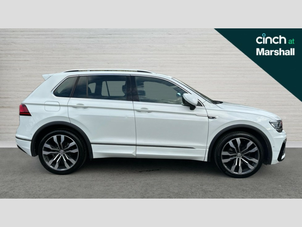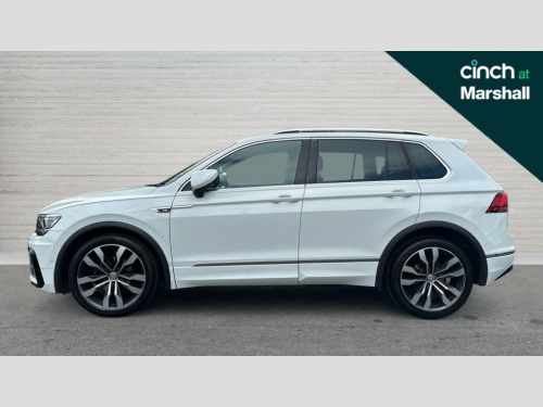 Volkswagen Tiguan 1.5 TSi EVO 150 R-Line 5dr DSG Active information display, Adaptive cruise control, App-Connect, Bluetooth phone integration system, Distance control assist, Driver profile selection, Fatigue detection system, Front assist, radar sensor controlled distance monitor, city emergency braking + predictive pedestrian protection, Instrument cluster, Lane assist, Low washer fluid warning light, Multifunction colour display, Outside temperature display, Progressive power assisted steering, Service interval indicator, Speed limiter, Warning lights, XDS electronic differential lock, 2x USB sockets in front, DAB Digital radio, MP3 compatible single CD player, SD card slot, 3D effect LED rear lights, Auto dimming interior mirror, Automatic activation of hazard warning lights, Body colour door handles, Body colour door mirrors, Body colour rear spoiler, Body colour side skirt, Body coloured bumpers, Chrome side window surrounds, Chrome trimmed radiator grille, Coming/leaving home lighting function, Dusk sensor + auto driving lights, Electric folding door mirrors, Electric heated + adjustable door mirrors, Electric panoramic sunroof with sunblind, Front and rear electric windows, Heated front washer nozzles, Heated rear window, LED headlights with dynamic light assist daytime running lights and cornering front fog lights, LED rear lights, Piano black rear diffuser, R Line body kit, R Line side sills, Rain sensor windscreen wipers, Rear windscreen washer and wiper with interval delay, Side skirts and rear bumper with chrome insert, Silver roof rails, Silver under body guard, Tinted windows (B pillar backwards), Windscreen wipers/ intermittent wipe + 4 position delay, 12V Accessory socket in centre console, 3 rear headrests, 3 zone climate control, 4 load lashing points, 40:20:40 split folding rear seats, Bag hook in luggage compartment, Black headlining, Driver + front passenger lumbar support, Foldable passenger seatback, Front + rear carpet mats, Front centre armrest with 12v socket, Front centre armrest with storage + rear 2 air vents + cupholders, Front seatback folding tables, Height/reach adjust steering wheel, Illuminated driver/passenger vanity mirrors, Illuminated scuff plates, Instrument lighting white adjustable panel illumination, Interior light with delay, Isofix Preparation 2 Rear child seats, Leather gear knob, Leather multifunction steering wheel with tiptronic control, Load through provision with 2 cupholders when folded, Lockable cooled glovebox, Luggage compartment lighting, Luggage compartment side storage, Map pockets on front seats, Passenger seat height adjuster, Rear cupholders, Removable luggage cover, Sliding/reclining rear seats, Stainless steel pedals, Storage compartment in driver's door, Storage compartment in passenger's door, Storage compartment in rear doors, Storage tray on dashboard, Sunglasses storage, Unique R Line door sill protectors, Variable boot floor, Ambient lighting pack - Tiguan, 3 rear 3 point seatbelts, ABS+EBD+Brake assist, Active bonnet, Active pedestrian safety system, Curtain airbags, Driver/Front Passenger airbags, Driver/Passenger whiplash optimised head restraints, Drivers knee airbag, DTC - Drag torque control, Electronic parking brake with auto hold, ESP with EDL + ASR, First aid kit, Front and rear brake disc, Front assist including city emergency braking, Front side airbags, Front ventilated brake discs, Head airbag system, Height adjustable front 3 point seatbelts + pretensioners, Hill hold control, Passenger airbag deactivate switch, Passenger knee airbag, Pre crash system, Rear side airbags, Seatbelt warning lamp and buzzer, Two tone horn, Warning triangle, Alarm with interior protection, Electronic engine immobiliser, Remote central locking with 2 remote folding keys, Aluminium decorative inserts, Chrome door trim inserts, 20" Suzuka alloy wheels + anti theft wheel bolts, Steel space saver spare wheel
