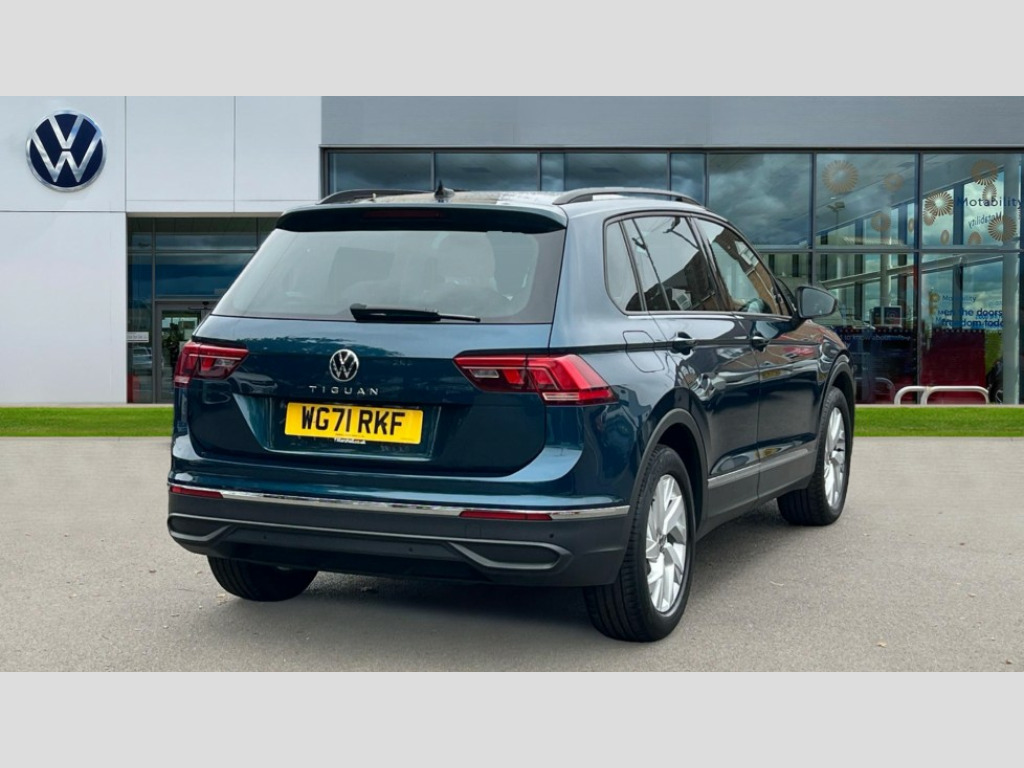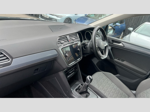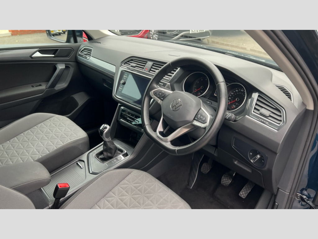 Volkswagen Tiguan 1.5 TSI Life 5dr Adaptive cruise control ACC including speed limiter, App-Connect incl. App-Connect Wireless for Apple CarPlay and Android Auto, Bluetooth phone integration system, Distance control assist, Driver alert system, Dynamic road sign display, eCall emergency call system, Electromechanical speed sensitive power steering, Instrument cluster mph speedometer Great Britain, Lane keeping system Lane Assist, Lights on warning, Multifunction front facing camera, Outside temperature display, Premium multifunction display with multi colour display, Remote control boot opening, Rev counter, Revision / skills operating concept travel assistant, Service interval indicator, Speed limit display, Start/stop system with regenerative braking, Trip computer, Warning sound and light for doors and tailgate open, Battery regeneration during braking, XDS electronic differential lock for improved traction and handling, 2 USB-C ports in the front, 1 USB-C charging socket on the center console in the rear, Diversity antenna for FM reception, Radio, SD card slot, Simultaneous pairing of 2 compatible mobile devices, SMS functionality - read, compose and send SMS messages using touch-screen display, Title and cover art display, Auto dimming interior rear view mirror, Automatic headlight control system, Black roof rails, Body colour door handles, Body coloured bumpers, Body coloured door mirrors with integrated indicators, Coming/leaving home lighting function, Front and rear electric windows, Headlight range control, Heated rear window, High level 3rd brake light, Laminated safety glass windshield, heat and sound insulating, LED headlamps, LED rear combination lamps, LED rear number plate lights, LED separate daytime running light, Light assist with auto high beam, Privacy glass for rear side windows and rear window, Rain sensor windscreen wipers, Rear exhaust tailpipe, Rear fog lamp, Rear side wing doors, Rear windscreen washer and wiper with interval delay, Side and rear windows in heat insulating glass, Trailer Stability Programme, Windscreen wipers/ intermittent wipe + 4 position delay, 12V outlet in center console rear and in luggage compartment, 12V outlet in front and tray, 2 cup holders in front, 2 LED front reading lights, 2 LED rear reading lights, 3 bench rear seats in 2nd row, 3 rear headrests, 4 load lashing points, 40:20:40 split folding rear seats, Air Care Climatronic 3 zone automatic climate control with enhanced air filter and controls in the rear, Backrest release for left front seat, Climate control unit rear with touch function, Door and side trim panel in foam film and woven fabric, Front + rear carpet mats, Front centre armrest, Front comfort seats, Front footwell illumination, Front seats head restraints (x-adjustment), Height adjustable front seats, Height/reach adjust steering wheel, Instrument lighting white adjustable panel illumination, Interior light with delay, Isofix Preparation 2 Rear child seats, Leather gear knob, Lockable cooled glovebox, Luggage compartment lighting, Luggage net, Rear bench seat asymetrically split folding, longitudinally movable and folding with load-through hatch and center armrest, Remote unlocking for rear seat backrest, Removable luggage cover, Removable rear headrests, Safety optimised front head restraints, Single front passenger seat, Sliding/reclining rear seats, Standard rear seat release, Storage compartment in driver's door, Storage compartment in passenger's door, Storage compartment in rear doors, Storage compartments in luggage area left and right, Storage tray on dashboard, Sun visors with illuminated vanity mirrors, Variable boot floor, height adjustable and removable, 3 point seat belt for centre rear seats, 3 point seat belts with seat belt pretensioners for the outer rear seats, Active bonnet, Curtain airbags for front and rear passengers, Driver/Front Passenger airbags, Drivers knee airbag, Electronic parking brake with auto hold, Electronic Stability Control with driver steering recommendation, ABS, ASR, EDL, EDTC and trailer stabilization, Front assist with autonomous emergency braking (for Adaptive Cruise Control ACC up to 130 mph), Front disc brakes, Front passenger airbag deactivation, Front side airbags, Height adjustable front 3 point seatbelts + pretensioners, Hill hold control, Manual child proof rear door locks, Pedestrian monitoring system, Power assisted brakes, Rear disc brakes, Rigid safety cell with front and rear crumple zones, Two tone horn, Warning sound and light for front seat belts if unfastened, Anti theft alarm system with interior monitoring, backup horn and towing protection, Anti theft wheel bolts, Electronic engine immobiliser, Weave decorative inserts in dash and front door trim panels, 18" frankfurt alloy wheels with Airstop rolling resistance tyres, Tool kit