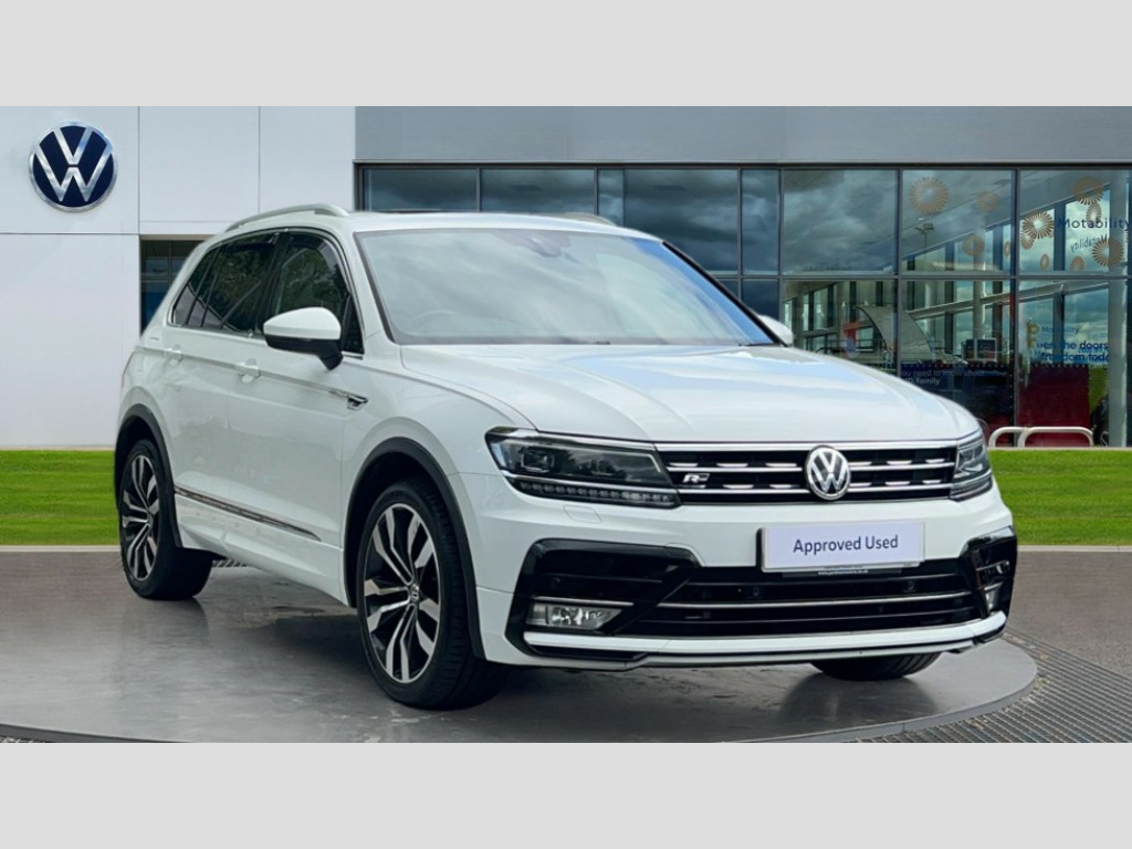 Volkswagen Tiguan 2.0 TDi 150 4Motion R-Line 5dr DSG Active information display, Adaptive cruise control, App-Connect, Bluetooth phone integration system, Instrument cluster, Lane assist, Low washer fluid warning light, Outside temperature display, Service interval indicator, Speed limiter, Warning lights, Diesel particulate filter, Sports suspension, XDS electronic differential lock, Aux-in socket, DAB Digital radio, SD card slot, USB connection, Auto dimming interior mirror, Automatic activation of hazard warning lights, Black roof rails, Body colour door handles, Body colour door mirrors, Body colour rear spoiler, Body coloured bumpers, Chrome side window surrounds, Chrome trimmed radiator grille, Coming/leaving home lighting function, Dual chrome exhaust, Dusk sensor + auto driving lights, Electric folding door mirrors, Electric heated + adjustable door mirrors, Electric panoramic sunroof with sunblind, Front and rear electric windows, Heated rear window, LED headlights with dynamic light assist daytime running lights and cornering front fog lights, LED rear lights, Piano black rear diffuser, R Line body kit, Rain sensor windscreen wipers, Rear windscreen washer and wiper with interval delay, Silver under body guard, Tinted windows (B pillar backwards), Twin trapezoid chrome exhaust pipes, 12V Accessory socket in centre console, 3 rear headrests, 3 zone climate control, 4 load lashing points, 40:20:40 split folding rear seats, Bag hook in luggage compartment, Black headlining, Driver + front passenger lumbar support, Foldable passenger seatback, Front + rear carpet mats, Front centre armrest with 12v socket, Front centre armrest with storage + rear 2 air vents + cupholders, Front seatback folding tables, Height/reach adjust steering wheel, Illuminated driver/passenger vanity mirrors, Illuminated scuff plates, Interior light with delay, Isofix Preparation 2 Rear child seats, Leather gear knob, Lockable cooled glovebox, Luggage compartment lighting, Luggage compartment side storage, Map pockets on front seats, Passenger seat height adjuster, Rear cupholders, Removable luggage cover, Sliding/reclining rear seats, Stainless steel pedals, Storage compartment in driver's door, Storage compartment in passenger's door, Storage tray on dashboard, Sunglasses storage, Variable boot floor, Ambient lighting pack - Tiguan, 3 rear 3 point seatbelts, ABS+EBD+Brake assist, Active bonnet, Active pedestrian safety system, Curtain airbags, Driver/Front Passenger airbags, Driver/Passenger whiplash optimised head restraints, Drivers knee airbag, Electronic parking brake with auto hold, ESP with EDL + ASR, First aid kit, Front assist including city emergency braking, Front side airbags, Head airbag system, Height adjustable front 3 point seatbelts + pretensioners, Hill hold control, Passenger airbag deactivate switch, Passenger knee airbag, Pre crash system, Rear side airbags, Seatbelt warning lamp and buzzer, Two tone horn, Warning triangle, Alarm with interior protection, Electronic engine immobiliser, Remote central locking with 2 remote folding keys, Chrome door trim inserts, Piano black interior trim, 20" Suzuka alloy wheels + anti theft wheel bolts, Steel space saver spare wheel