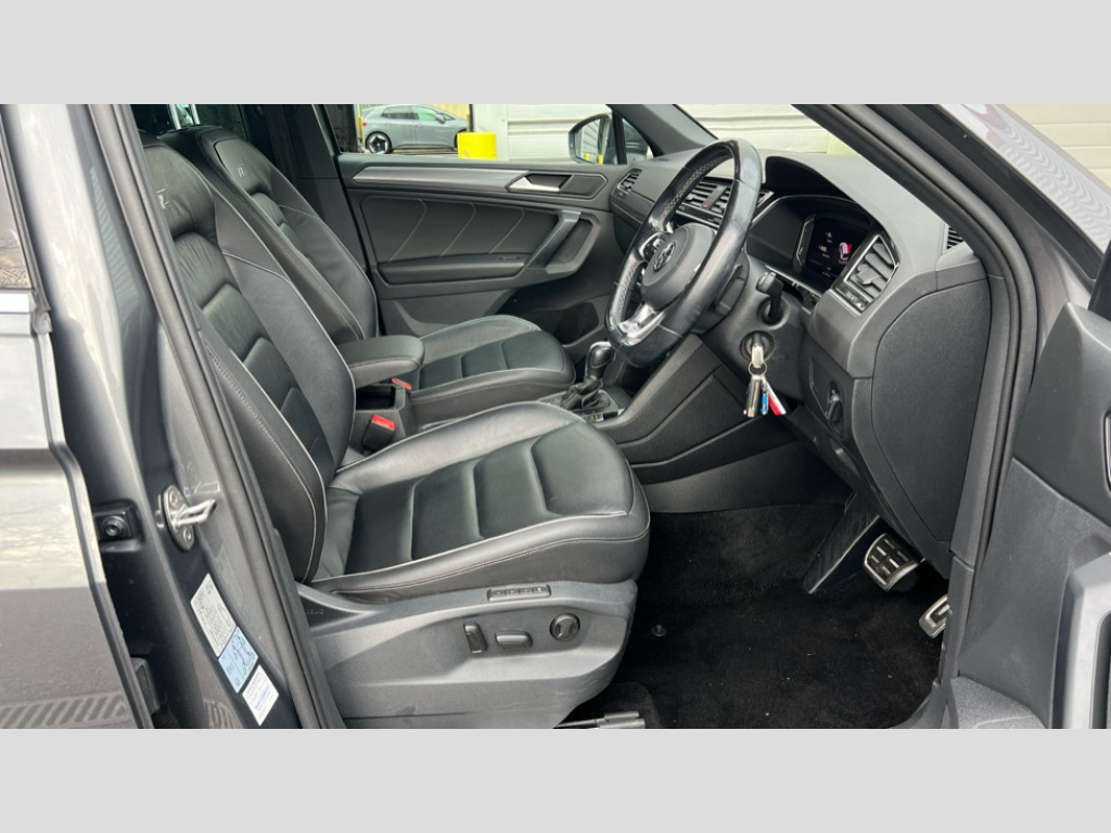 Volkswagen Tiguan 2.0 TDi 150 4Motion R-Line 5dr DSG Active information display, Adaptive cruise control, App-Connect, Bluetooth phone integration system, Distance control assist, Drive mode selector, Driver profile selection, Fatigue detection system, Front assist, radar sensor controlled distance monitor, city emergency braking + predictive pedestrian protection, Instrument cluster, Lane assist, Low washer fluid warning light, Multifunction colour display, Outside temperature display, Progressive power assisted steering, Service interval indicator, Speed limiter, Warning lights, Diesel particulate filter, XDS electronic differential lock, 2x USB sockets in front, DAB Digital radio, MP3 compatible single CD player, SD card slot, 3D effect LED rear lights, Auto dimming interior mirror, Automatic activation of hazard warning lights, Body colour door handles, Body colour door mirrors, Body colour rear spoiler, Body colour side skirt, Body coloured bumpers, Chrome side window surrounds, Chrome trimmed radiator grille, Coming/leaving home lighting function, Dusk sensor + auto driving lights, Electric folding door mirrors, Electric heated + adjustable door mirrors, Electric panoramic sunroof with sunblind, Front and rear electric windows, Heated rear window, LED headlights with dynamic light assist daytime running lights and cornering front fog lights, LED rear lights, Piano black rear diffuser, R Line body kit, R Line side sills, Rain sensor windscreen wipers, Rear windscreen washer and wiper with interval delay, Side skirts and rear bumper with chrome insert, Silver roof rails, Silver under body guard, Tinted windows (B pillar backwards), Windscreen wipers/ intermittent wipe + 4 position delay, 12V Accessory socket in centre console, 3 rear headrests, 3 zone climate control, 4 load lashing points, 40:20:40 split folding rear seats, Bag hook in luggage compartment, Black headlining, Driver + front passenger lumbar support, Foldable passenger seatback, Front + rear carpet mats, Front centre armrest with 12v socket, Front centre armrest with storage + rear 2 air vents + cupholders, Front seatback folding tables, Height/reach adjust steering wheel, Illuminated driver/passenger vanity mirrors, Illuminated scuff plates, Instrument lighting white adjustable panel illumination, Interior light with delay, Isofix Preparation 2 Rear child seats, Leather gear knob, Leather multifunction steering wheel with tiptronic control, Load through provision with 2 cupholders when folded, Lockable cooled glovebox, Luggage compartment lighting, Luggage compartment side storage, Map pockets on front seats, Passenger seat height adjuster, Rear cupholders, Removable luggage cover, Sliding/reclining rear seats, Stainless steel pedals, Storage compartment in driver's door, Storage compartment in passenger's door, Storage compartment in rear doors, Storage tray on dashboard, Sunglasses storage, Unique R Line door sill protectors, Variable boot floor, Ambient lighting pack - Tiguan, 3 rear 3 point seatbelts, ABS+EBD+Brake assist, Active bonnet, Active pedestrian safety system, Curtain airbags, Driver/Front Passenger airbags, Driver/Passenger whiplash optimised head restraints, Drivers knee airbag, DTC - Drag torque control, Electronic parking brake with auto hold, ESP with EDL + ASR, First aid kit, Front and rear brake disc, Front assist including city emergency braking, Front side airbags, Front ventilated brake discs, Head airbag system, Height adjustable front 3 point seatbelts + pretensioners, Hill hold control, Passenger airbag deactivate switch, Passenger knee airbag, Pre crash system, Rear side airbags, Seatbelt warning lamp and buzzer, Two tone horn, Warning triangle, Alarm with interior protection, Electronic engine immobiliser, Remote central locking with 2 remote folding keys, Aluminium decorative inserts, Chrome door trim inserts, 20" Suzuka alloy wheels + anti theft wheel bolts, Steel space saver spare wheel