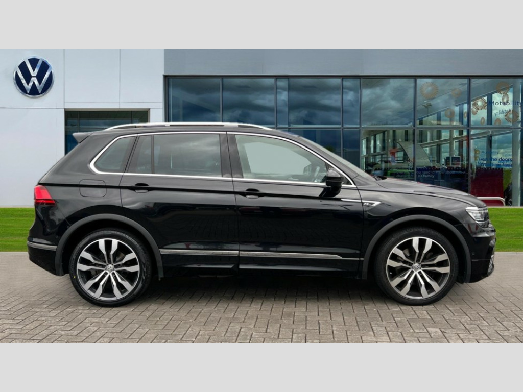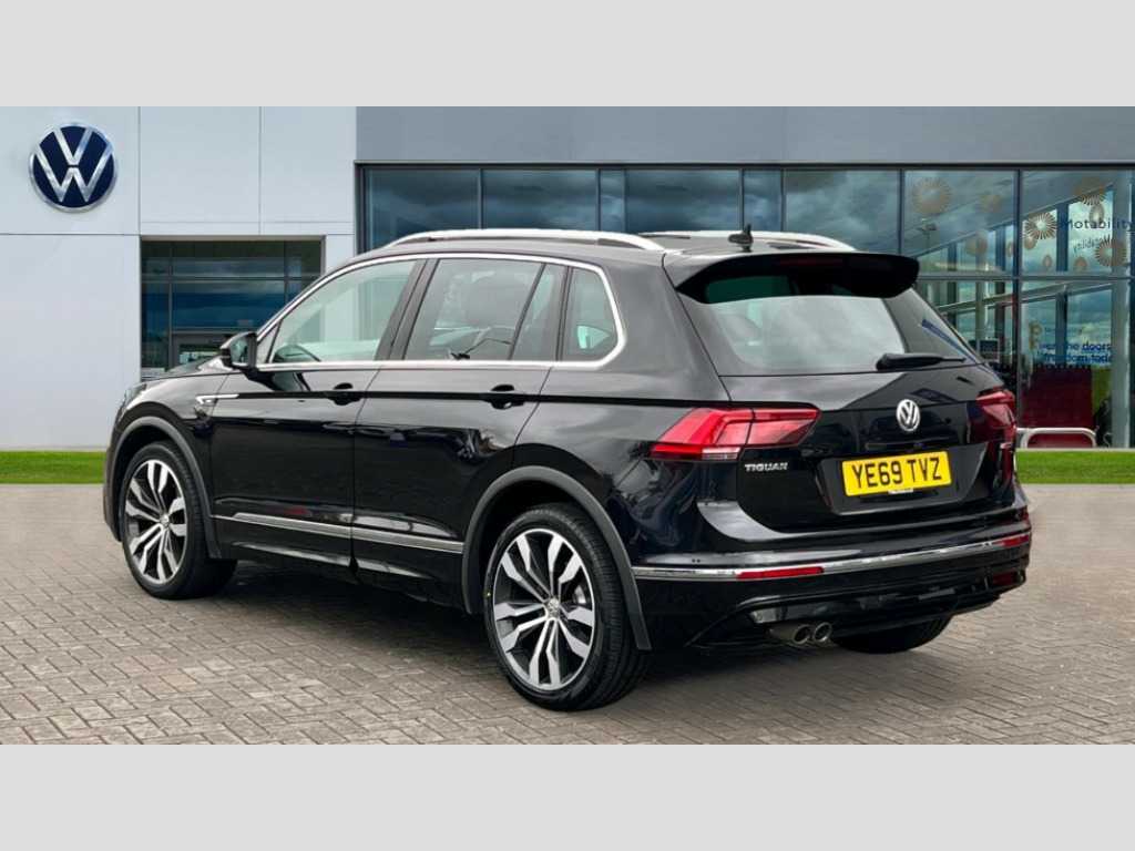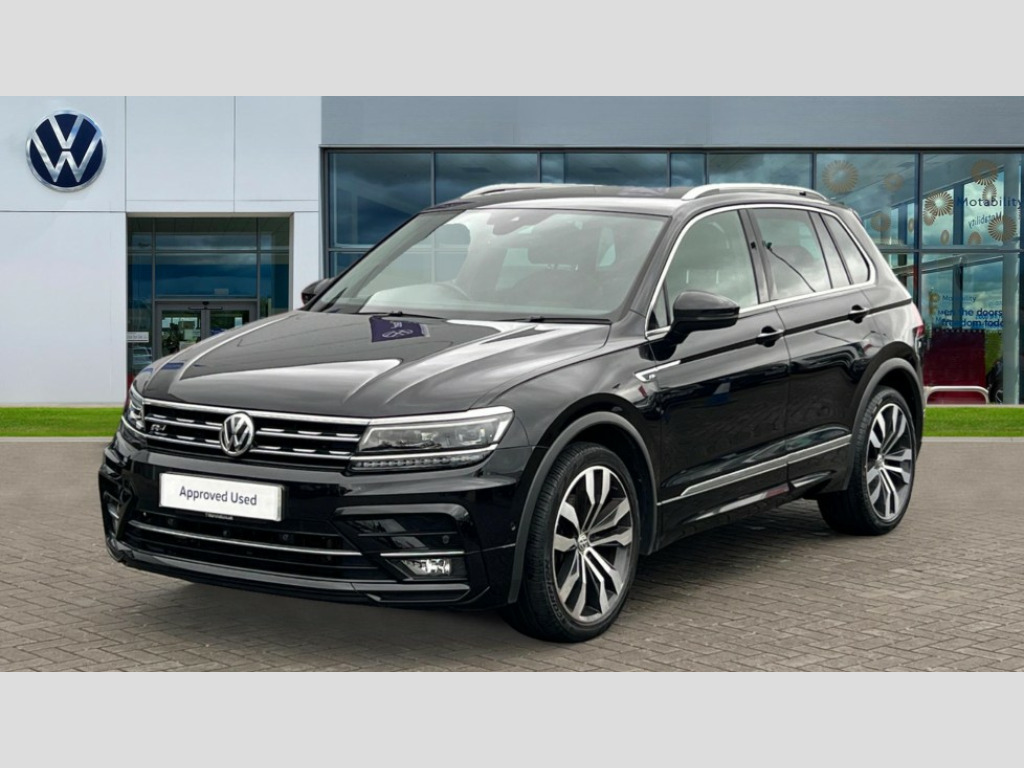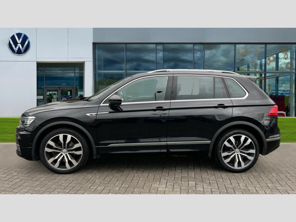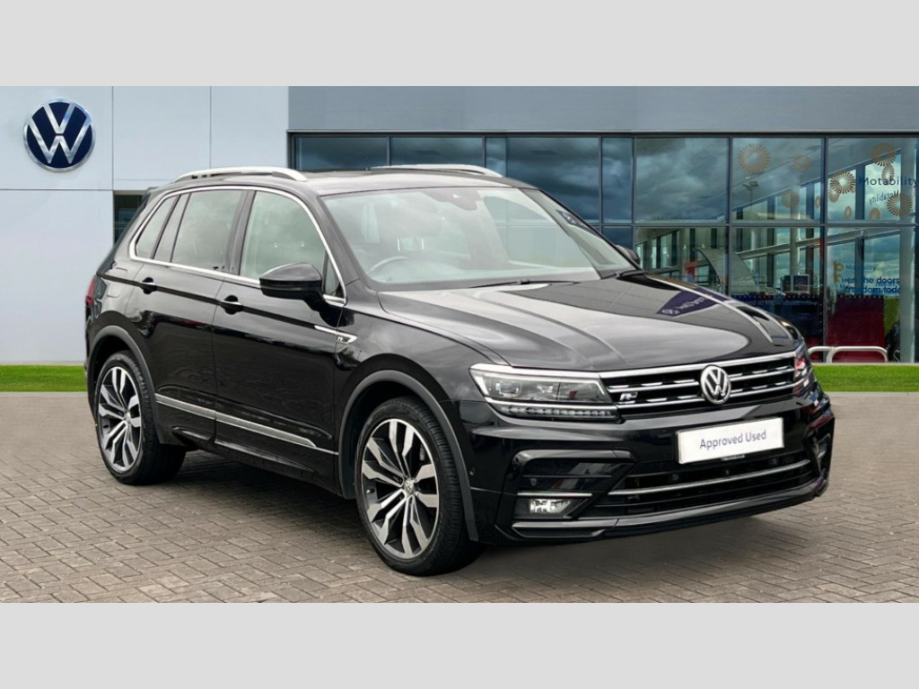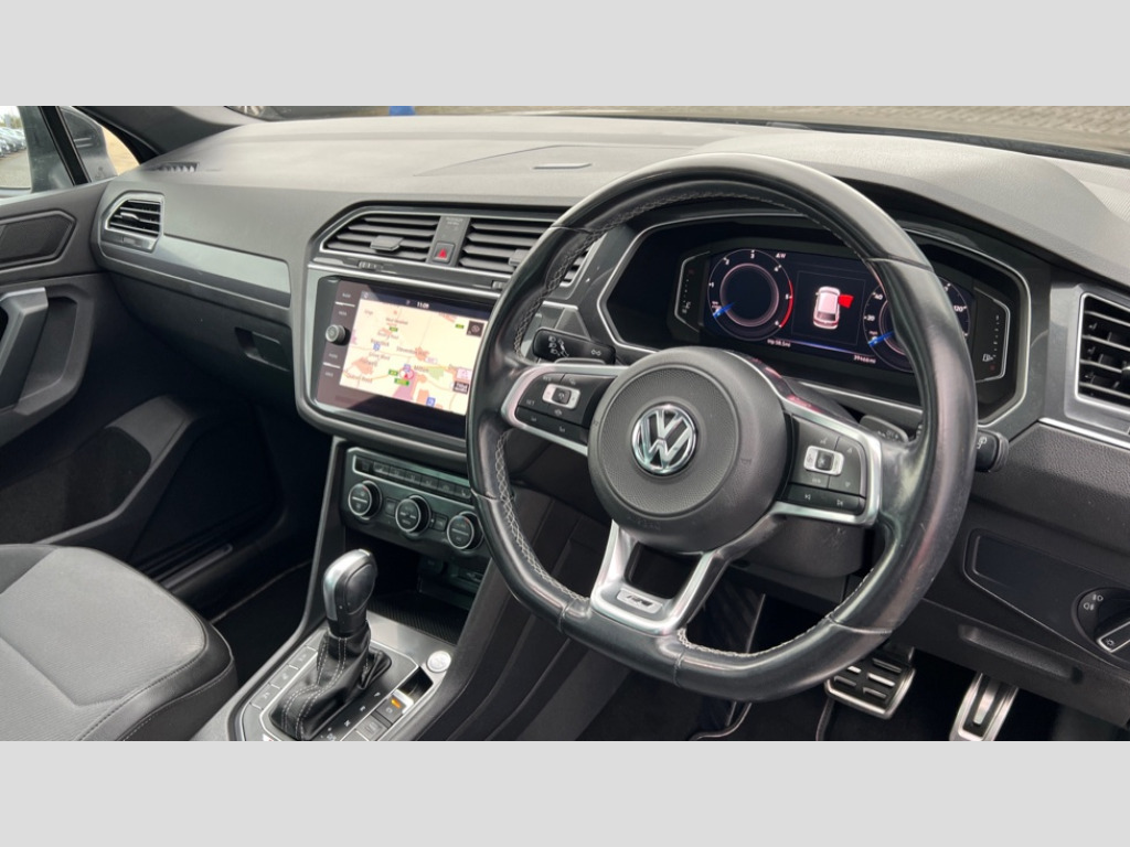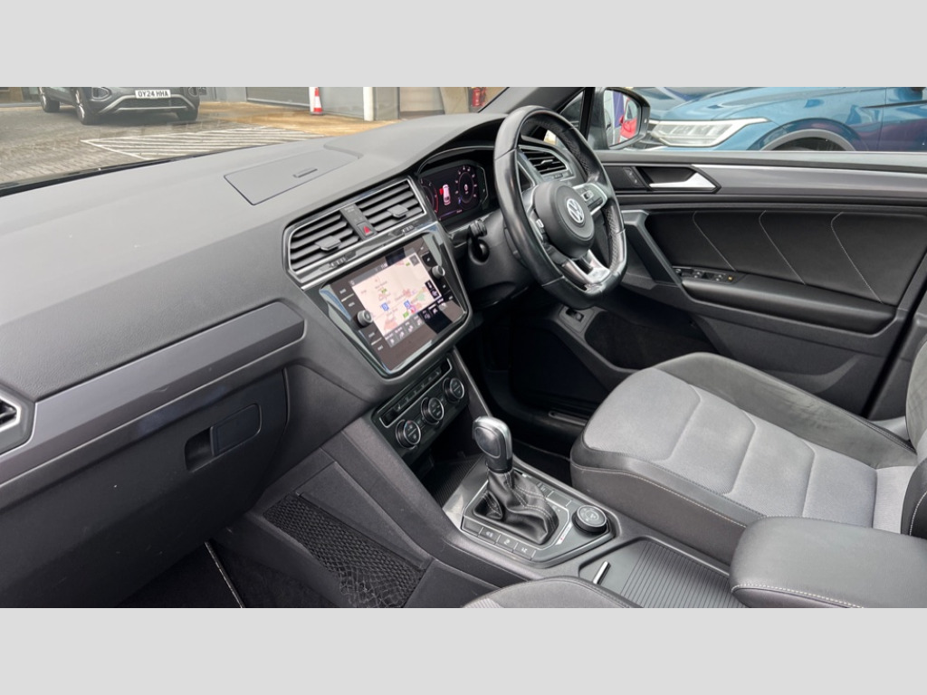Volkswagen Tiguan 2.0 TDi 150 4Motion R-Line Tech 5dr Active information display, Adaptive cruise control, App-Connect, Area view with park assist steering and front and rear parking sensors, Bluetooth phone integration system, Car-Net Security and Service, Coasting function, Distance control assist, Drive mode selector, Driver profile selection, Fatigue detection system, Front assist, radar sensor controlled distance monitor, city emergency braking + predictive pedestrian protection, Fully electric tailgate + keyless entry and start, Instrument cluster, Lane assist, Low washer fluid warning light, Outside temperature display, Progressive power assisted steering, Service interval indicator, Speed limiter, Start/Stop function, Warning lights, Diesel particulate filter, Misfuel prevention device for diesel engine, XDS electronic differential lock, 2x USB sockets in front, 4 X 20 watt output, DAB Digital radio, SD card slot, Simultaneous pairing of 2 compatible mobile devices, SMS functionality - read, compose and send SMS messages using touch-screen display, Title and cover art display, 3D effect cherry red LED rear tail lights, Auto dimming interior mirror, Automatic activation of hazard warning lights, Body colour door handles, Body colour door mirrors, Body colour rear spoiler, Body colour side skirt, Body coloured bumpers, Chrome side window surrounds, Chrome trimmed radiator grille, Coming/leaving home lighting function, Dusk sensor + auto driving lights, Electric folding door mirrors, Electric heated + adjustable door mirrors, Electric panoramic sunroof with sunblind, Front air intake with chrome strip, Front and rear electric windows, Heated rear window, High level 3rd brake light, LED headlights with dynamic light assist daytime running lights and cornering front fog lights, LED rear number plate lights, Piano black rear diffuser, R Line body kit, R Line side sills, Rain sensor windscreen wipers, Rear tinted glass from B-pillar backwards approx 65% tinted, Rear windscreen washer and wiper with interval delay, Side skirts and rear bumper with chrome insert, Silver roof rails, Silver under body guard, Trailer Stability Programme, Windscreen wipers/ intermittent wipe + 4 position delay, 12V Accessory socket in centre console, 3 rear headrests, 3 spoke multi-function leather steering wheel and gearknob, 3 zone climate control, 4 load lashing points, 40:20:40 split folding rear seats, Bag hook in luggage compartment, Black headlining, Foldable passenger seatback, Front + rear carpet mats, Front centre armrest with 12v socket, Front centre armrest with storage + rear 2 air vents + cupholders, Front seat back storage pockets, Front seatback folding tables, Height/reach adjust steering wheel, Illuminated driver/passenger vanity mirrors, Illuminated scuff plates, Instrument lighting white adjustable panel illumination, Interior light with delay, Isofix Preparation 2 Rear child seats, Leather gear knob, Load through provision with 2 cupholders when folded, Lockable cooled glovebox, Luggage compartment lighting, Luggage compartment side storage, Map pockets on front seats, Passenger seat height adjuster, Rear cupholders, Removable luggage cover, Sliding/reclining rear seats, Stainless steel pedals, Storage compartment in driver's door, Storage compartment in passenger's door, Storage compartment in rear doors, Storage tray on dashboard, Sunglasses storage, Unique R Line door sill protectors, Variable boot floor, Ambient lighting pack - Tiguan, Winter pack - Tiguan/Tiguan Allspace, 3 rear 3 point seatbelts, ABS+EBD+Brake assist, Active bonnet, Active pedestrian safety system, Curtain airbags, Driver/Front Passenger airbags, Driver/Passenger whiplash optimised head restraints, Drivers knee airbag, DTC - Drag torque control, Electronic parking brake with auto hold, ESP with EDL + ASR, First aid kit, Front side airbags, Front ventilated disc brakes and rear disc brakes, Head airbag system, Height adjustable front 3 point seatbelts + pretensioners, Hill hold control, Passenger airbag deactivate switch, Passenger knee airbag, Proactive preventive occupant protection, Rear side airbags, Rigid safety cell with front and rear crumple zones, Seatbelt warning lamp and buzzer, Two tone horn, Warning triangle, Alarm with interior protection, Electronic engine immobiliser, Remote central locking with 2 remote folding keys, Aluminium decorative inserts, Chrome door trim inserts, 20" Suzuka alloy wheels + anti theft wheel bolts, Steel space saver spare wheel