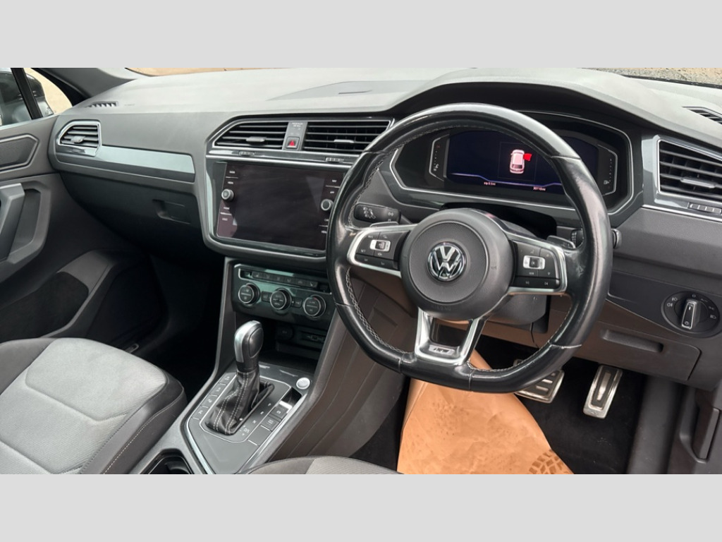 Volkswagen Tiguan 2.0 TDi 150 R-Line Tech 5dr DSG Active information display, Adaptive cruise control, App-Connect, Area view with park assist steering and front and rear parking sensors, Bluetooth phone integration system, Car-Net Security and Service, Distance control assist, Driver profile selection, Fatigue detection system, Front assist, radar sensor controlled distance monitor, city emergency braking + predictive pedestrian protection, Fully electric tailgate + keyless entry and start, Instrument cluster, Lane assist, Low washer fluid warning light, Outside temperature display, Progressive power assisted steering, Service interval indicator, Speed limiter, Start/Stop function, Warning lights, Diesel particulate filter, Misfuel prevention device for diesel engine, XDS electronic differential lock, 2x USB sockets in front, 4 X 20 watt output, DAB Digital radio, SD card slot, Simultaneous pairing of 2 compatible mobile devices, SMS functionality - read, compose and send SMS messages using touch-screen display, Title and cover art display, 3D effect cherry red LED rear tail lights, Auto dimming interior mirror, Automatic activation of hazard warning lights, Body colour door handles, Body colour door mirrors, Body colour rear spoiler, Body colour side skirt, Body coloured bumpers, Chrome side window surrounds, Chrome trimmed radiator grille, Coming/leaving home lighting function, Dusk sensor + auto driving lights, Electric folding door mirrors, Electric heated + adjustable door mirrors, Electric panoramic sunroof with sunblind, Front air intake with chrome strip, Front and rear electric windows, Heated rear window, High level 3rd brake light, LED headlights with dynamic light assist daytime running lights and cornering front fog lights, LED rear number plate lights, Piano black rear diffuser, R Line body kit, R Line side sills, Rain sensor windscreen wipers, Rear tinted glass from B-pillar backwards approx 65% tinted, Rear windscreen washer and wiper with interval delay, Side skirts and rear bumper with chrome insert, Silver roof rails, Silver under body guard, Trailer Stability Programme, Windscreen wipers/ intermittent wipe + 4 position delay, 12V Accessory socket in centre console, 3 rear headrests, 3 spoke leather multifunction steering wheel with paddle shift, 3 zone climate control, 4 load lashing points, 40:20:40 split folding rear seats, Bag hook in luggage compartment, Black headlining, Foldable passenger seatback, Front + rear carpet mats, Front centre armrest with 12v socket, Front centre armrest with storage + rear 2 air vents + cupholders, Front seat back storage pockets, Front seatback folding tables, Height/reach adjust steering wheel, Illuminated driver/passenger vanity mirrors, Illuminated scuff plates, Instrument lighting white adjustable panel illumination, Interior light with delay, Isofix Preparation 2 Rear child seats, Leather gear knob, Load through provision with 2 cupholders when folded, Lockable cooled glovebox, Luggage compartment lighting, Luggage compartment side storage, Map pockets on front seats, Passenger seat height adjuster, Rear cupholders, Removable luggage cover, Sliding/reclining rear seats, Stainless steel pedals, Storage compartment in driver's door, Storage compartment in passenger's door, Storage compartment in rear doors, Storage tray on dashboard, Sunglasses storage, Unique R Line door sill protectors, Variable boot floor, Ambient lighting pack - Tiguan, Winter pack - Tiguan/Tiguan Allspace, 3 rear 3 point seatbelts, ABS+EBD+Brake assist, Active bonnet, Active pedestrian safety system, Curtain airbags, Driver/Front Passenger airbags, Driver/Passenger whiplash optimised head restraints, Drivers knee airbag, DTC - Drag torque control, Electronic parking brake with auto hold, ESP with EDL + ASR, First aid kit, Front side airbags, Front ventilated disc brakes and rear disc brakes, Head airbag system, Height adjustable front 3 point seatbelts + pretensioners, Hill hold control, Passenger airbag deactivate switch, Passenger knee airbag, Proactive preventive occupant protection, Rear side airbags, Rigid safety cell with front and rear crumple zones, Seatbelt warning lamp and buzzer, Two tone horn, Warning triangle, Alarm with interior protection, Electronic engine immobiliser, Remote central locking with 2 remote folding keys, Aluminium decorative inserts, Chrome door trim inserts, 20" Suzuka alloy wheels + anti theft wheel bolts, Steel space saver spare wheel