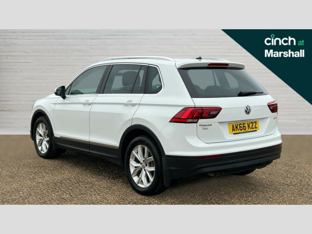 Volkswagen Tiguan 2.0 TDi 150 SE Nav 5dr App-Connect, Bluetooth phone integration system, Instrument cluster, Lane assist, Low washer fluid warning light, Outside temperature display, Service interval indicator, Warning lights, Diesel particulate filter, Aux-in socket, DAB Digital radio, SD card slot, USB connection, Auto dimming interior mirror, Body colour door handles, Body colour door mirrors, Body coloured bumpers, Chrome side window surrounds, Chrome trimmed radiator grille, Coming/leaving home lighting function, Dusk sensor + auto driving lights, Electric folding door mirrors, Electric heated + adjustable door mirrors, Front and rear electric windows, Rain sensor windscreen wipers, Silver roof rails, Tinted windows (B pillar backwards), 3 rear headrests, 3 zone climate control, 4 load lashing points, 40:20:40 split folding rear seats, Front + rear carpet mats, Front centre armrest with 12v socket, Front centre armrest with storage + rear 2 air vents + cupholders, Front seatback folding tables, Height/reach adjust steering wheel, Illuminated driver/passenger vanity mirrors, Illuminated scuff plates, Interior light with delay, Isofix Preparation 2 Rear child seats, Leather gear knob, Lockable cooled glovebox, Luggage compartment lighting, Map pockets on front seats, Rear cupholders, Removable luggage cover, Sliding/reclining rear seats, Storage compartment in driver's door, Storage compartment in passenger's door, Storage drawers under front seats, Storage tray on dashboard, Sunglasses storage, Variable boot floor, 3 rear 3 point seatbelts, ABS+EBD+Brake assist, Active bonnet, Active pedestrian safety system, Curtain airbags, Driver/Front Passenger airbags, Driver/Passenger whiplash optimised head restraints, Drivers knee airbag, Electronic parking brake with auto hold, ESP with EDL + ASR, First aid kit, Front assist including city emergency braking, Front side airbags, Head airbag system, Height adjustable front 3 point seatbelts + pretensioners, Hill hold control, Passenger airbag deactivate switch, Pre crash system, Rear side airbags, Seatbelt warning lamp and buzzer, Warning triangle, Alarm with interior protection, Electronic engine immobiliser, Chrome door trim inserts, Titan silver decorative inserts, 18" Patagonia alloy wheels + anti theft wheel bolts, Steel space saver spare wheel