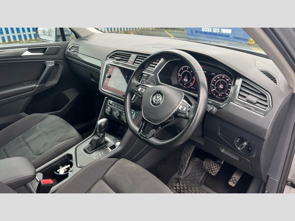 Volkswagen Tiguan 2.0 TDi 150 SEL 5dr DSG Active information display, Adaptive cruise control, App-Connect, Bluetooth phone integration system, Distance control assist, Instrument cluster, Lane assist, Low washer fluid warning light, Outside temperature display, Service interval indicator, Speed limiter, Warning lights, Diesel particulate filter, XDS electronic differential lock, 2x USB sockets in front, Aux-in socket, DAB Digital radio, SD card slot, Auto dimming interior mirror, Automatic activation of hazard warning lights, Black door protector with chrome inserts, Body colour door handles, Body colour door mirrors, Body coloured bumpers, Chrome side body trim, Chrome side window surrounds, Chrome trimmed radiator grille, Coming/leaving home lighting function, Dusk sensor + auto driving lights, Electric folding door mirrors, Electric heated + adjustable door mirrors, Electric panoramic sunroof with sunblind, Front and rear electric windows, Heated rear window, LED headlights with dynamic light assist daytime running lights and cornering front fog lights, LED rear lights, Rain sensor windscreen wipers, Rear windscreen washer and wiper with interval delay, Silver rear diffuser trim, Silver roof rails, Silver under body guard, Tinted windows (B pillar backwards), Windscreen wipers/ intermittent wipe + 4 position delay, 12V Accessory socket in centre console, 3 rear headrests, 3 zone climate control, 4 load lashing points, 40:20:40 split folding rear seats, Bag hook in luggage compartment, Driver + front passenger lumbar support, Foldable passenger seatback, Front + rear carpet mats, Front centre armrest with 12v socket, Front centre armrest with storage + rear 2 air vents + cupholders, Front seatback folding tables, Height/reach adjust steering wheel, Illuminated driver/passenger vanity mirrors, Illuminated scuff plates, Interior light with delay, Isofix Preparation 2 Rear child seats, Leather gear knob, Load through provision with 2 cupholders when folded, Lockable cooled glovebox, Luggage compartment lighting, Luggage compartment side storage, Map pockets on front seats, Passenger seat height adjuster, Passenger underseat drawer, Rear cupholders, Removable luggage cover, Sliding/reclining rear seats, Storage compartment in driver's door, Storage compartment in passenger's door, Storage tray on dashboard, Sunglasses storage, Variable boot floor, Ambient lighting pack - Tiguan, 3 rear 3 point seatbelts, ABS+EBD+Brake assist, Active bonnet, Active pedestrian safety system, Curtain airbags, Driver/Front Passenger airbags, Driver/Passenger whiplash optimised head restraints, Drivers knee airbag, DTC - Drag torque control, Electronic parking brake with auto hold, ESP with EDL + ASR, First aid kit, Front assist including city emergency braking, Front side airbags, Head airbag system, Height adjustable front 3 point seatbelts + pretensioners, Hill hold control, Passenger airbag deactivate switch, Passenger knee airbag, Pre crash system, Rear side airbags, Seatbelt warning lamp and buzzer, Two tone horn, Warning triangle, Alarm with interior protection, Electronic engine immobiliser, Remote central locking with 2 remote folding keys, Chrome door trim inserts, Piano black interior trim, Steel space saver spare wheel