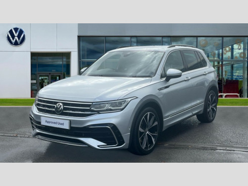 Volkswagen Tiguan 2.0 TDI 200 4Motion R-Line 5dr DSG Adaptive cruise control ACC stop and go including speed limiter, App-Connect incl. App-Connect Wireless for Apple CarPlay and Android Auto, Bluetooth phone integration system, Digital Cockpit Pro - Active info display, Distance control assist, Driver alert system, Driver profile selection, Dynamic road sign display, eCall emergency call system, Electromechanical speed sensitive power steering, Engine start/stop button, Lane keeping system Lane Assist, Lights on warning, Multifunction front facing camera, Outside temperature display, Premium multifunction display with multi colour display, Remote control boot opening, Rev counter, Revision / skills operating concept travel assistant, Service interval indicator, Speed limit display, Start/stop system with regenerative braking, Trip computer, Warning sound and light for doors and tailgate open, All wheel drive - 4Motion, Battery regeneration during braking, Diesel particulate filter, Misfuel prevention device for diesel engine, Selective Catalytic Reduction, XDS electronic differential lock for improved traction and handling, 2 USB-C ports in the front, 1 USB-C charging socket on the center console in the rear, Diversity antenna for FM reception, Radio, SD card slot, Simultaneous pairing of 2 compatible mobile devices, SMS functionality - read, compose and send SMS messages using touch-screen display, Title and cover art display, Auto dimming interior rear view mirror, Automatic headlight control system, Black roof rails, Body colour door handles, Body coloured bumpers in R Line style, Body coloured door mirrors with integrated indicators, Chrome moldings on the side windows, Coming/leaving home lighting function, Dynamic headlight range control, Front and rear electric windows, Heated rear window, High level 3rd brake light, Laminated safety glass windshield, heat and sound insulating, LED rear number plate lights, License plate carrier in front and rear, Poor weather light and cornering light, Privacy glass for rear side windows and rear window, R Line body kit, R Line side sills, Rain sensor windscreen wipers, Rear exhaust tailpipe, Rear fog lamp, Rear spoiler in R style, Rear windscreen washer and wiper with interval delay, Side and rear windows in heat insulating glass, Third brake light, Trailer Stability Programme, Unique R Line badging, Windscreen wipers/ intermittent wipe + 4 position delay, 12V outlet in center console rear and in luggage compartment, 2 cup holders in front, 2 LED front reading lights, 2 LED rear reading lights, 3 rear headrests, 4 load lashing points, 40:20:40 split folding rear seats, Air Care Climatronic 3 zone automatic climate control with enhanced air filter and controls in the rear, Backrest release for left front seat, Black headlining, Brushed stainless steel pedals and footrest, Carpet mats in front and rear with decorative stitching in Gray, Climate control unit rear with touch function, Door and side trim panel in foam film, insert in leatherette, Front centre armrest, Front footwell illumination, Front seats head restraints (x-adjustment), Height adjustable front seats, Height/reach adjust steering wheel, Instrument lighting white adjustable panel illumination, Interior light with delay, Isofix Preparation 2 Rear child seats, Leather gear knob, Lockable cooled glovebox, Luggage compartment lighting, Luggage net, Rear bench seat asymetrically split folding, longitudinally movable and folding with load-through hatch and center armrest, Remote unlocking for rear seat backrest, Removable luggage cover, Safety optimised front head restraints, Sliding/reclining rear seats, Standard rear seat release, Storage compartment in driver's door, Storage compartment in passenger's door, Storage compartment in rear doors, Storage compartments in luggage area left and right, Storage tray on dashboard, Sun visors with illuminated vanity mirrors, Top front comfort seats, Variable boot floor, height adjustable and removable, Ambience pack - Tiguan R Line, Driver assistance pack plus - Tiguan DSG, 3 point seat belt for centre rear seats, 3 point seat belts with seat belt pretensioners for the outer rear seats, Active bonnet, Curtain airbags for front and rear passengers, Driver/Front Passenger airbags, Drivers knee airbag, Electronic parking brake with auto hold, Electronic Stability Control with driver steering recommendation, ABS, ASR, EDL, EDTC and trailer stabilization, Front assist with autonomous emergency braking (for Adaptive Cruise Control ACC up to 130 mph), Front disc brakes, Front passenger airbag deactivation, Front side airbags, Height adjustable front 3 point seatbelts + pretensioners, Hill hold control, Pedestrian monitoring system, Power assisted brakes, Proactive passenger protection system in combination with front assist, Rear disc brakes, Rigid safety cell with front and rear crumple zones, Two tone horn, Warning sound and light for front seat belts if unfastened, Anti theft alarm system with interior monitoring, backup horn and towing protection, Anti theft wheel bolts, Electronic engine immobiliser, 20" Misano black with diamond turned surface alloy wheels with Airstop tyres, Tool kit