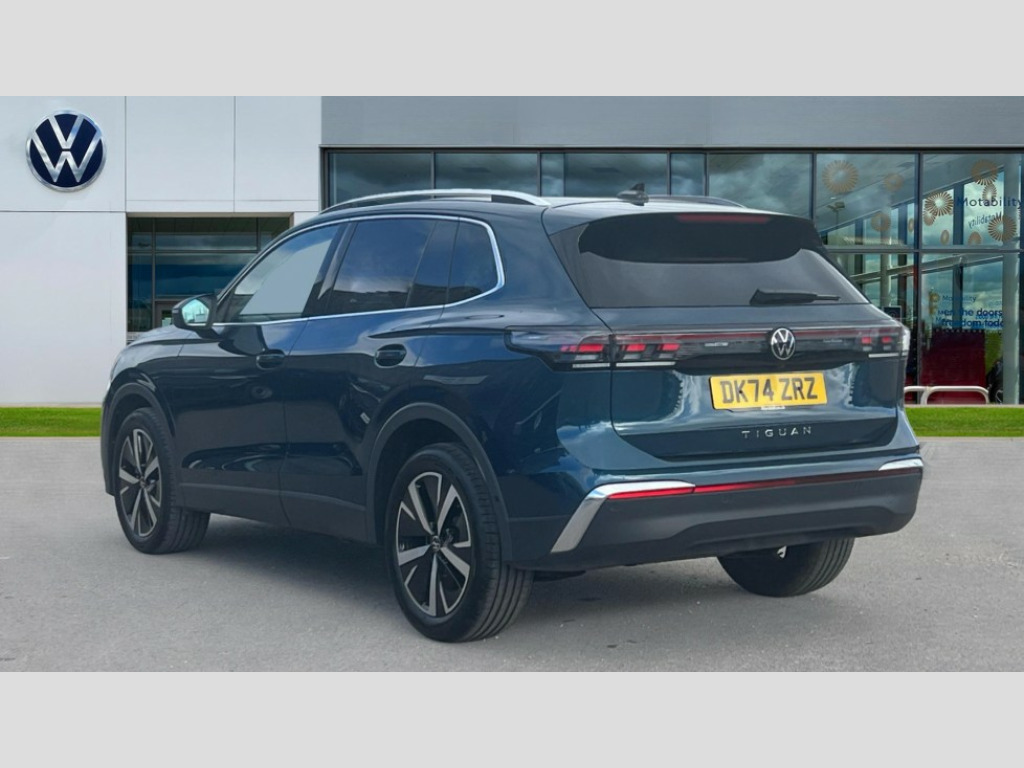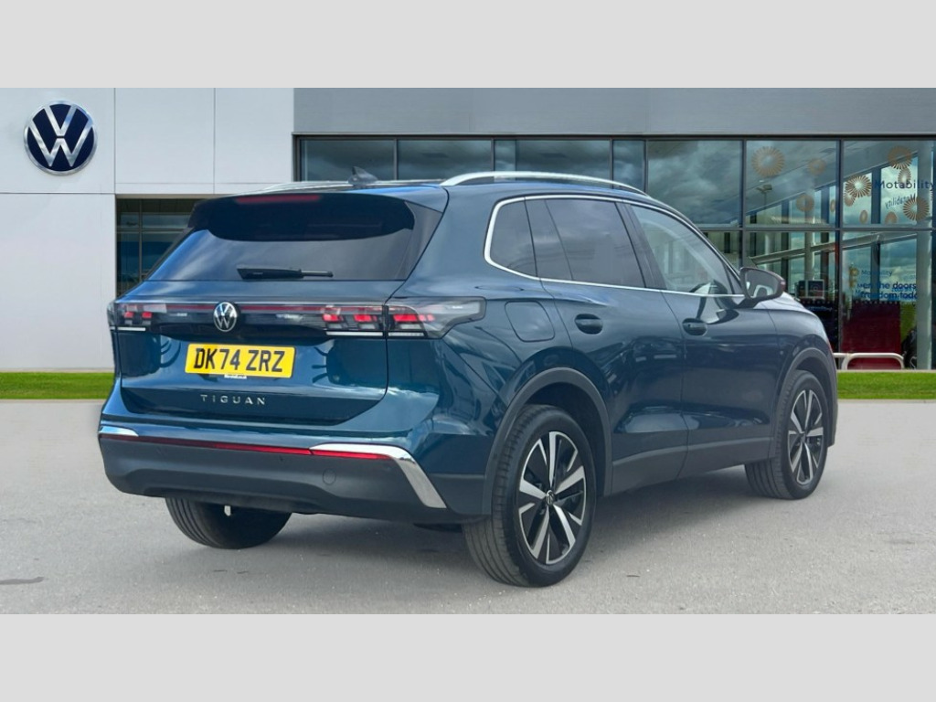 Volkswagen Tiguan 2.0 TDI Elegance 5dr DSG Adaptive cruise control (ACC), Advanced driver attention and drowsiness monitor, Bluetooth mobile phone interface, Car2X technology, Comfort drive travel assist, lane keeping system, lane assist and emergency assist, Digital Cockpit Pro - 10.25" high resolution dash display screen with customisable menus and information, Dynamic road sign display, E-Sim card for online connectivity, eCall emergency call service, Front Assist - Autonomous emergency braking with pedestrian and cyclist monitoring, Lane change system, Side assist, Rear traffic alert and Exit warning system, Multifunction front facing camera, Oncoming vehicle braking when turning including swerve support, Park assist pro with park distance control (Remote park assist), Power assisted steering with speed sensitive, Start/stop system with regenerative braking, Warning signal and warning light for front and rear seatbelts not fastened, Wireless App-Connect, Front wheel drive, Digital radio reception (DAB), Diversity antenna for FM reception, Ambient lighting with logo projection, Auto dimming interior rear view mirror, Automatic headlight control system, Body colored bumpers in R-Line style, Body coloured door handles, Body-coloured exterior mirror housings, Chrome moldings on the side windows, Coming/leaving home lighting function, Heat insulating glass in side and rear windows, Heated rear window, High level 3rd brake light, Illuminated door handle recesses, Illuminated lightline between headlamps, Laminated safety glass from B-pillar backwards 90% tinted, Laminated safety glass windshield, Rain sensor windscreen wipers, Rear fog light on one side, reversing light on both sides, Rear side wing doors, Rear wiper, Silver roof rails, 12V outlet in center console rear and in luggage compartment, 12V socket in centre console, 3 bench rear seats in 2nd row, Air care climatronic 3 zone air conditioning system with rear air conditioning control panel, Carpet mats, front and rear, Centre console with illuminated storage compartment with sliding cover and two drinks holders, Ceramique headlining, Chrome elements on the mirror switch and power window switches and door pulls, Door and side trim panel with leatherette insert, Door sill protectors, Front centre armrest, Interior ambient lighting with 30 colour options, ISOFIX anchors for child seats on outer rear seats and front passenger seat compatible with i-Size, Mechanical rear seat release, Power adjustable lumbar support in front, Rear bench seat, split folding, longitudinally movable and folding with load-through hatch and centre armrest, Safety optimised front head restraints, Single front passenger seat, Sports comfort seats in front, Sun visors with illuminated vanity mirrors, Three rear head restraints, Variable luggage compartment floor, Comfort package with park assist plus and Safelock - Tiguan, Driver assistance package - Tiguan, 3 point seat belt for centre rear seats, 3 Point seat belts in front with pretensioners, 3 point seatbelts in outer rear with ECE label, Driver and front passenger airbag with front passenger airbag deactivation, Electronic parking brake with auto hold, Front and rear curtain airbags, Front and rear side airbags, Front centre airbag, Front disc brakes, Manual child proof rear door locks, Rear disc brakes, Two tone horn, Warning triangle, Anti theft wheel bolts, Decorative inserts Cross in dash and front door panels, Interior door handle in matte chrome, Soul instrument panel