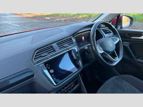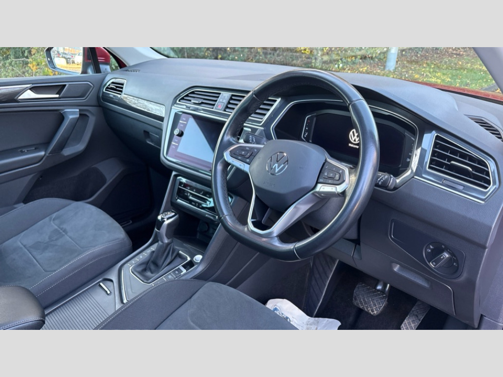 Volkswagen Tiguan 2.0 TDI Elegance 5dr DSG Adaptive cruise control ACC stop and go including speed limiter, App-Connect incl. App-Connect Wireless for Apple CarPlay and Android Auto, Bluetooth phone integration system, Distance control assist, Driver alert system, Driver profile selection, Dynamic road sign display, eCall emergency call system, Electromechanical speed sensitive power steering, Engine start/stop button, Lane keeping system Lane Assist, Lights on warning, Motorised electric tailgate operated via key fob, drivers door and foot movement under tailgate, Multifunction front facing camera, Outside temperature display, Premium multifunction display with multi colour display, Remote control boot opening, Rev counter, Revision / skills operating concept travel assistant, Service interval indicator, Speed limit display, Start/stop system with regenerative braking, Tailgate/trunk lid unlocking from outside, Trip computer, Warning sound and light for doors and tailgate open, Battery regeneration during braking, Diesel particulate filter, Misfuel prevention device for diesel engine, Selective Catalytic Reduction, XDS electronic differential lock for improved traction and handling, 4 X 20 watt output, 8 Speakers, Diversity antenna for FM reception, Radio, SD card slot, Simultaneous pairing of 2 compatible mobile devices, SMS functionality - read, compose and send SMS messages using touch-screen display, Title and cover art display, USB C ports, Aluminium door sill protectors, Auto dimming interior rear view mirror, Automatic headlight control system, Body colour door handles, Body coloured bumpers, Body coloured door mirrors with integrated indicators, Coming/leaving home lighting function, Dynamic headlight range control, Front and rear electric windows, Heated rear window, High level 3rd brake light, IQ light-Adv high beam,Dynamic light assist for LED matrix headlamp+LED separate DRL+DCL, dark red rear LED tech, Poor weather light+ cornering light, Laminated safety glass windshield, heat and sound insulating, LED rear number plate lights, Poor weather light and cornering light, Privacy glass for rear side windows and rear window, Rain sensor windscreen wipers, Rear exhaust tailpipe, Rear fog lamp, Rear side wing doors, Rear windscreen washer and wiper with interval delay, Side and rear windows in heat insulating glass, Tilting and sliding panoramic sunroof with rear panoramic sunroof, Trailer Stability Programme, Windscreen wipers/ intermittent wipe + 4 position delay, 12V outlet in center console rear and in luggage compartment, 12V outlet in front and tray, 2 cup holders in front, 2 LED front reading lights, 2 LED rear reading lights, 3 bench rear seats in 2nd row, 3 rear headrests, 4 load lashing points, 40:20:40 split folding rear seats, Air Care Climatronic 3 zone automatic climate control with enhanced air filter and controls in the rear, Backrest release for left front seat, Climate control unit rear with touch function, Door and side trim panel in foam film and woven fabric, Front centre armrest, Front footwell illumination, Front seats head restraints (x-adjustment), Height adjustable front seats, Height/reach adjust steering wheel, Instrument lighting white adjustable panel illumination, Interior light with delay, Isofix Preparation 2 Rear child seats, Leather gear knob, Lockable cooled glovebox, Luggage compartment lighting, Luggage net, Rear bench seat asymetrically split folding, longitudinally movable and folding with load-through hatch and center armrest, Remote unlocking for rear seat backrest, Removable luggage cover, Removable rear headrests, Safety optimised front head restraints, Single front passenger seat, Sliding/reclining rear seats, Standard rear seat release, Storage compartment in driver's door, Storage compartment in passenger's door, Storage compartment in rear doors, Storage compartments in luggage area left and right, Storage tray on dashboard, Sun visors with illuminated vanity mirrors, Top front comfort seats, Variable boot floor, height adjustable and removable, Easy open and close pack with safelock - Tiguan, 3 point seat belt for centre rear seats, 3 point seat belts with seat belt pretensioners for the outer rear seats, Active bonnet, Curtain airbags for front and rear passengers, Driver/Front Passenger airbags, Drivers knee airbag, Electronic parking brake with auto hold, Electronic Stability Control with driver steering recommendation, ABS, ASR, EDL, EDTC and trailer stabilization, Front assist with autonomous emergency braking (for Adaptive Cruise Control ACC up to 130 mph), Front disc brakes, Front passenger airbag deactivation, Front side airbags, Height adjustable front 3 point seatbelts + pretensioners, Hill hold control, Manual child proof rear door locks, Pedestrian monitoring system, Power assisted brakes, Proactive passenger protection system in combination with front assist, Rear disc brakes, Rigid safety cell with front and rear crumple zones, Two tone horn, Warning sound and light for front seat belts if unfastened, Anti theft alarm system with interior monitoring, backup horn and towing protection, Anti theft wheel bolts, Central locking system with safelock radio remote control and 2 remote control folding keys, Electronic engine immobiliser, Tool kit