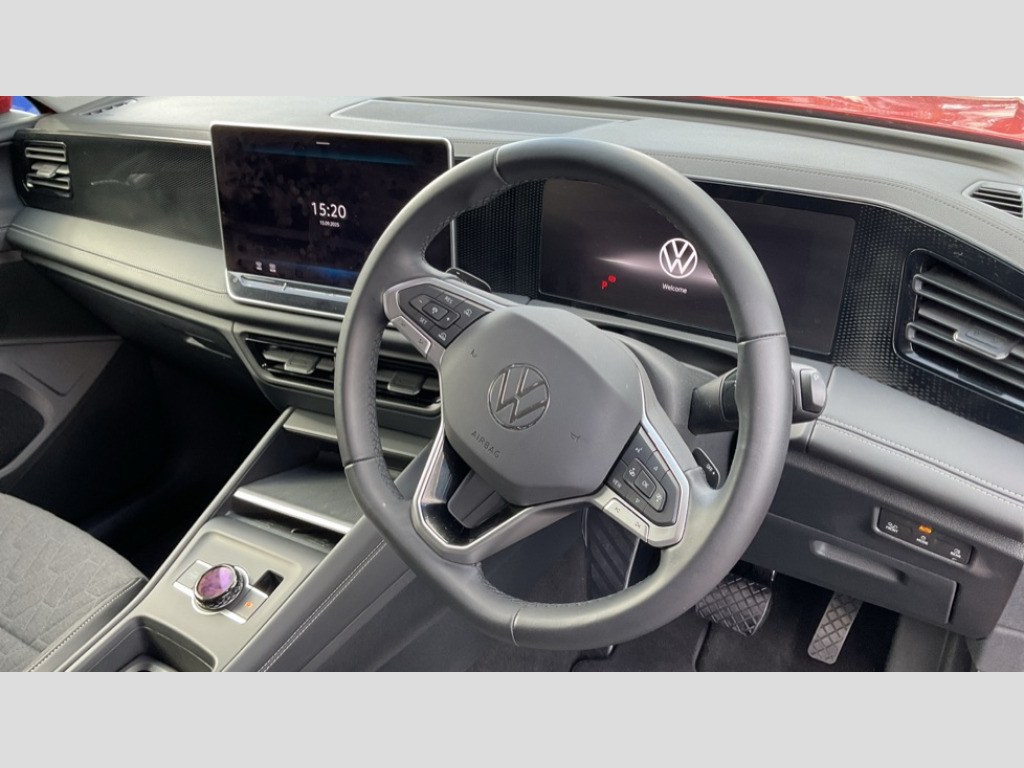 Volkswagen Tiguan 2.0 TDI Match 5dr DSG Adaptive cruise control (ACC), Advanced driver attention and drowsiness monitor, Bluetooth mobile phone interface, Car2X technology, Digital Cockpit Pro - 10.25" high resolution dash display screen with customisable menus and information, Dynamic road sign display, E-Sim card for online connectivity, eCall emergency call service, Front Assist - Autonomous emergency braking with pedestrian and cyclist monitoring, Lane change system, Side assist, Rear traffic alert and Exit warning system, Lane keeping system Lane Assist, Multifunction front facing camera, Oncoming vehicle braking when turning including swerve support, Park assistance plus with front and rear parking sensors, Power assisted steering with speed sensitive, Start/stop system with regenerative braking, Warning signal and warning light for front and rear seatbelts not fastened, Wireless App-Connect, Front wheel drive, Digital radio reception (DAB), Diversity antenna for FM reception, Ambient lighting with logo projection, Auto dimming interior rear view mirror, Automatic headlight control system, Body coloured bumpers and air intake with chrome trim, Body coloured door handles, Body-coloured exterior mirror housings, Coming/leaving home lighting function, Heat insulating glass in side and rear windows, Heat insulating windshield, Heated rear window, High level 3rd brake light, Illuminated door handle recesses, Illuminated lightline between headlamps, Rain sensor windscreen wipers, Rear fog light on one side, reversing light on both sides, Rear side wing doors, Rear wiper, 12V outlet in center console rear and in luggage compartment, 12V socket in centre console, 3 bench rear seats in 2nd row, Air care climatronic 3 zone air conditioning system with rear air conditioning control panel, Carpet mats, front and rear, Centre console with illuminated storage compartment with sliding cover and two drinks holders, Ceramique headlining, Door and side trim panel in foam film and woven fabric, Front centre armrest, ISOFIX anchors for child seats on outer rear seats and front passenger seat compatible with i-Size, Mechanical rear seat release, Power adjustable lumbar support in front, Rear bench seat, split folding, longitudinally movable and folding with load-through hatch and centre armrest, Safety optimised front head restraints, Single front passenger seat, Sun visors with illuminated vanity mirrors, Three rear head restraints, Variable luggage compartment floor, Comfort package with park assist plus and Safelock - Tiguan, Design package - Tiguan, 3 point seat belt for centre rear seats, 3 Point seat belts in front with pretensioners, 3 point seatbelts in outer rear with ECE label, Driver and front passenger airbag with front passenger airbag deactivation, Electronic parking brake with auto hold, Front and rear curtain airbags, Front and rear side airbags, Front centre airbag, Front disc brakes, Manual child proof rear door locks, Rear disc brakes, Two tone horn, Warning triangle, Anti theft wheel bolts, Soul instrument panel