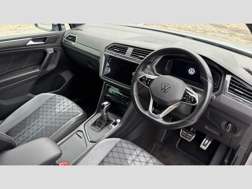 Volkswagen Tiguan 2.0 TDI R-Line Edition 5dr DSG Adaptive cruise control ACC stop and go including speed limiter, App-Connect incl. App-Connect Wireless for Apple CarPlay and Android Auto, Bluetooth phone integration system, Comfort drive travel assist, Digital cockpit pro, Driver alert system, Driver profile selection, Dynamic road sign display, eCall emergency call system, Electromechanical speed sensitive power steering, Emergency assist, Front and rear parking distance sensors, Instrument cluster mph speedometer Great Britain, Lane keeping system Lane Assist, Lights on warning, Multifunction front facing camera, Outside temperature display, Premium multifunction display with multi colour display, Preparation for subsequent activation Navigation feature Discover Media includes Streaming and Internet, Remote control boot opening, Rev counter, Service interval indicator, Speed limit display, Start/stop system with regenerative braking, Tailgate/trunk lid unlocking from outside, Trip computer, Warning sound and light for doors and tailgate open, Battery regeneration during braking, Sports suspension, 8 Speakers, Digital radio reception DAB+, Diversity antenna for FM reception, Radio, Auto dimming interior rear view mirror, Automatic headlight control system, Body colored bumpers in R-Line style, Body colored exterior mirror housings, Body colour door handles, Chrome moldings on the side windows, Coming/leaving home lighting function, Dynamic headlight range control, Front and rear electric windows, Heated rear window, High level 3rd brake light, Laminated safety glass windshield, heat and sound insulating, LED headlamps with LED separate daytime running light and dynamic cornering light, LED rear combination lamps, LED rear number plate lights, License plate carrier in front and rear, Poor weather light and cornering light, Power adjustable, folding and heated door mirrors with surround lighting, front passenger exterior mirror lowering function, Privacy glass for rear side windows and rear window, R Line body kit, R Line side sills, Rain sensor, Rear exhaust tailpipe, Rear fog lamp, Rear side wing doors, Rear spoiler in R style, Rear windscreen washer and wiper with interval delay, Side and rear windows in heat insulating glass, Trailer Stability Programme, Unique R Line badging, Windscreen wipers/ intermittent wipe + 4 position delay, 12V outlet in center console rear and in luggage compartment, 12V outlet in front and tray, 2 LED front reading lights, 2 LED rear reading lights, 3 bench rear seats in 2nd row, 3 rear headrests, Air Care Climatronic 3 zone automatic climate control with enhanced air filter and controls in the rear, Art Velours greyson sports cloth upholstery, Backrest release for left front seat, Black headlining, Brushed stainless steel pedals and footrest, Carpet mats in front and rear with decorative stitching in Gray, Climate control unit rear with touch function, Door and side trim panel in foam film, insert in leatherette, Driver + front passenger lumbar support, Front footwell illumination, Front scuff plates in aluminum with R-Line logo, Front seats head restraints (x-adjustment), Height adjustable front seats, Height/reach adjust steering wheel, Isofix Preparation 2 Rear child seats, Leather gear knob, Rear bench seat asymetrically split folding, longitudinally movable and folding with load-through hatch and center armrest, Remote unlocking for rear seat backrest, Single front passenger seat, Sun visors with illuminated vanity mirrors, Top front comfort seats, Winter pack - Tiguan, 3 point seat belt for centre rear seats, 3 point seat belts with seat belt pretensioners for the outer rear seats, Curtain airbags for front and rear passengers, Driver/Front Passenger airbags, Drivers knee airbag, Electronic parking brake with auto hold, Electronic Stability Control with driver steering recommendation, ABS, ASR, EDL, EDTC and trailer stabilization, Front assist with autonomous emergency braking (for Adaptive Cruise Control ACC up to 130 mph), Front disc brakes, Front passenger airbag deactivation, Front side airbags, Height adjustable front 3 point seatbelts + pretensioners, Manual child proof rear door locks, Pedestrian monitoring system, Proactive passenger protection system in combination with front assist, Rear disc brakes, Two tone horn, Tyre pressure loss indicator, Warning sound and light for front seat belts if unfastened, Warning triangle, Anti theft alarm system with interior monitoring, backup horn and towing protection, Anti theft wheel bolts, Electronic engine immobiliser, Keyless locking and starting system keyless access with safelock, Chrome elements on the mirror switch power window switches and door pulls, Decorative inserts Carbon Gray for dashboard and front door trim panels, Interior door handle in matte chrome, 19" Valencia alloy wheels with AirStop tyres, Tool kit, Tyre mobility kit Includes 12V compressor and tyre sealant