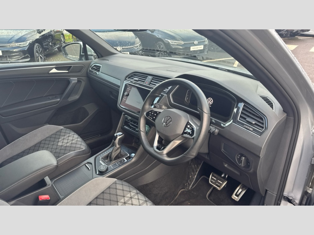 Volkswagen Tiguan 2.0 TSI 4Motion R-Line 5dr DSG Adaptive cruise control ACC stop and go including speed limiter, App-Connect incl. App-Connect Wireless for Apple CarPlay and Android Auto, Bluetooth phone integration system, Distance control assist, Driver alert system, Driver profile selection, Dynamic road sign display, eCall emergency call system, Electromechanical speed sensitive power steering, Engine start/stop button, Lane keeping system Lane Assist, Lights on warning, Multifunction front facing camera, Outside temperature display, Premium multifunction display with multi colour display, Remote control boot opening, Rev counter, Revision / skills operating concept travel assistant, Service interval indicator, Speed limit display, Start/stop system with regenerative braking, Trip computer, Warning sound and light for doors and tailgate open, All wheel drive - 4Motion, Battery regeneration during braking, XDS electronic differential lock for improved traction and handling, 4 X 20 watt output, 8 Speakers, Diversity antenna for FM reception, Radio, SD card slot, Simultaneous pairing of 2 compatible mobile devices, SMS functionality - read, compose and send SMS messages using touch-screen display, Title and cover art display, USB C ports, Auto dimming interior rear view mirror, Automatic headlight control system, Body colour door handles, Chrome moldings on the side windows, Coming/leaving home lighting function, Dynamic headlight range control, Front and rear electric windows, Heated rear window, High level 3rd brake light, Laminated safety glass windshield, heat and sound insulating, LED headlamps with LED separate daytime running light and dynamic cornering light, LED rear combination lamps, LED rear number plate lights, License plate carrier in front and rear, Poor weather light and cornering light, R Line body kit, R Line side sills, Rain sensor windscreen wipers, Rear exhaust tailpipe, Rear fog lamp, Rear side wing doors, Rear spoiler in R style, Rear windscreen washer and wiper with interval delay, Side and rear windows in heat insulating glass, Trailer Stability Programme, Unique R Line badging, Windscreen wipers/ intermittent wipe + 4 position delay, 12V outlet in center console rear and in luggage compartment, 12V outlet in front and tray, 2 cup holders in front, 2 LED front reading lights, 2 LED rear reading lights, 3 bench rear seats in 2nd row, 3 rear headrests, 4 load lashing points, 40:20:40 split folding rear seats, Air Care Climatronic 3 zone automatic climate control with enhanced air filter and controls in the rear, Backrest release for left front seat, Black headlining, Brushed stainless steel pedals and footrest, Carpet mats in front and rear with decorative stitching in Gray, Climate control unit rear with touch function, Door and side trim panel in foam film, insert in leatherette, Front centre armrest, Front footwell illumination, Front seats head restraints (x-adjustment), Height adjustable front seats, Height/reach adjust steering wheel, Instrument lighting white adjustable panel illumination, Interior light with delay, Isofix Preparation 2 Rear child seats, Leather gear knob, Lockable cooled glovebox, Luggage compartment lighting, Luggage net, Rear bench seat asymetrically split folding, longitudinally movable and folding with load-through hatch and center armrest, Remote unlocking for rear seat backrest, Removable luggage cover, Removable rear headrests, Safety optimised front head restraints, Single front passenger seat, Sliding/reclining rear seats, Standard rear seat release, Storage compartment in driver's door, Storage compartment in passenger's door, Storage compartment in rear doors, Storage compartments in luggage area left and right, Storage tray on dashboard, Sun visors with illuminated vanity mirrors, Top front comfort seats, Variable boot floor, height adjustable and removable, Driver assistance pack plus - Tiguan DSG, 3 point seat belt for centre rear seats, 3 point seat belts with seat belt pretensioners for the outer rear seats, Active bonnet, Curtain airbags for front and rear passengers, Driver/Front Passenger airbags, Drivers knee airbag, Electronic parking brake with auto hold, Electronic Stability Control with driver steering recommendation, ABS, ASR, EDL, EDTC and trailer stabilization, Front assist with autonomous emergency braking (for Adaptive Cruise Control ACC up to 130 mph), Front disc brakes, Front passenger airbag deactivation, Front side airbags, Height adjustable front 3 point seatbelts + pretensioners, Hill hold control, Manual child proof rear door locks, Pedestrian monitoring system, Power assisted brakes, Proactive passenger protection system in combination with front assist, Rear disc brakes, Rigid safety cell with front and rear crumple zones, Two tone horn, Warning sound and light for front seat belts if unfastened, Anti theft alarm system with interior monitoring, backup horn and towing protection, Anti theft wheel bolts, Electronic engine immobiliser, Tool kit
