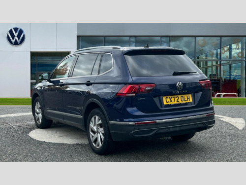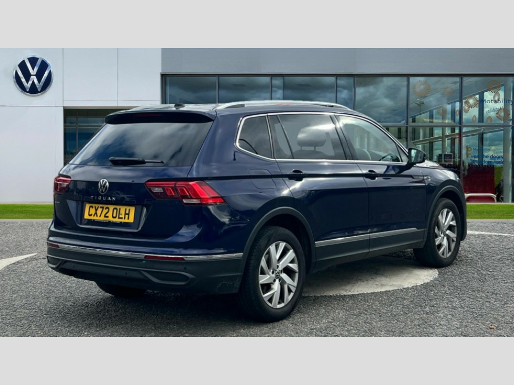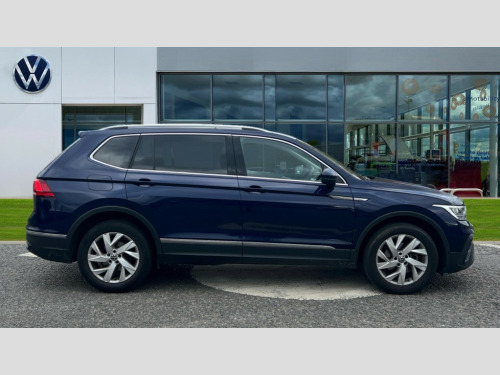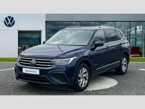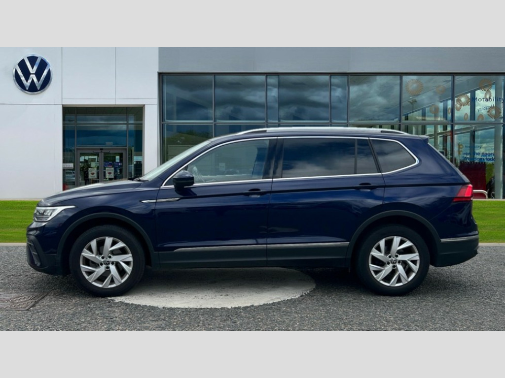 Volkswagen Tiguan Allspace 1.5 TSI Life 5dr Adaptive cruise control radar sensor controlled distance monitoring system, App-Connect, Digital cockpit pro, Driver alert system, Dynamic road sign display, eCall emergency call service, Electric boot lid, Front assist system, Lane keeping system Lane Assist, Mobile phone interface comfort with inductive charging feature, Multifunction front facing camera, Power assisted speed sensitive steering, Speedo and rev counter, electronic odometer, trip, service interval display and exterior temperature gauge, Front wheel drive, Start-stop system with battery regeneration (recuperation - energy recovery during braking), 2 USB-C ports in the front, 1 USB-C charging socket on the center console in the rear, 8 Speakers, DAB Digital radio, Diversity antenna for FM reception, Radio, Auto dimming interior rear view mirror, Automatic headlight control system, Body coloured bumpers, Chrome mouldings on side window, Coming/leaving home lighting function, Exterior badge deletion, Exterior mirror housings painted in silver, Headlight range control, LED headlamps, LED separate daytime running light, Privacy glass, Rain sensor, Rear combination lamps, Rear fog light, Rear side wing doors, Rear wiper, Silver roof rails, Third brake light, 12-volt outlet in centre console rear and luggage compartment, 12V socket in centre console, 3 head restraints in rear, 3 individual folding 2nd row seats, 3rd row 2 individual seats, Air Care Climatronic 3 zone automatic climate control with enhanced air filter and controls in the rear, Driver and front passenger seat height adjustment, Foldable front passenger seat backrest, Front + rear carpet mats, Front centre armrest, Front footwell illumination, ISOFIX anchorage points for mounting 2 child seats on rear seats and i-Size child seats, Leather gearshift handle, LED interior light with switch off delay/dimmer and 2 front/rear LED reading lights, Multifunction steering wheel, Sun visors with illuminated vanity mirrors, 3 point seat belt for centre rear seat, 3 rear three point seatbelts, ABS+EBD+Brake assist, Driver and front passenger safety-optimised head restraints, Driver's and front passenger's airbag with front passenger's airbag deactivation switch, Electronic parking brake, Electronic Stability Control (ESC) inc EDL (Electronic Differential Lock) and ASR (Traction Control), Height adjustable front 3 point seatbelts + pretensioners, Manual rear child locks, Pedestrian monitoring, Rear disc brakes, Two tone horn, Warning buzzer for seatbelts if unfastened, Anti theft alarm system with interior monitoring, backup horn and towing protection, Anti-theft wheel bolts, Remote central locking with 2 remote folding keys, Chequered flag tinanium decorative inserts