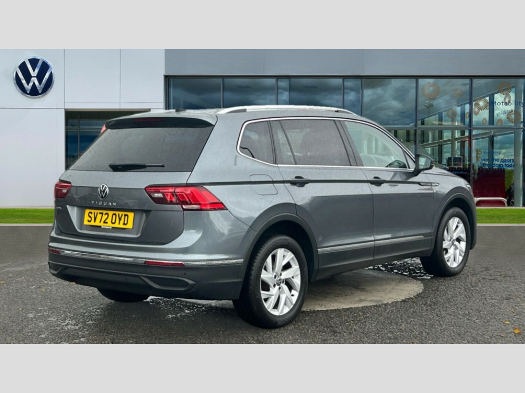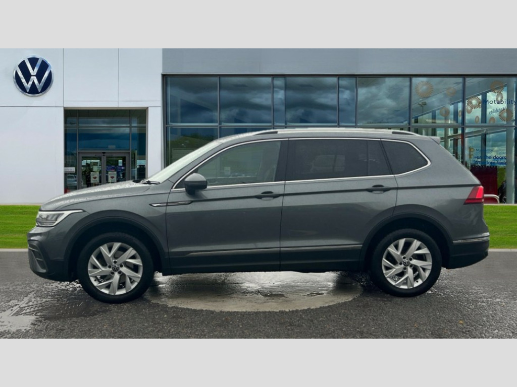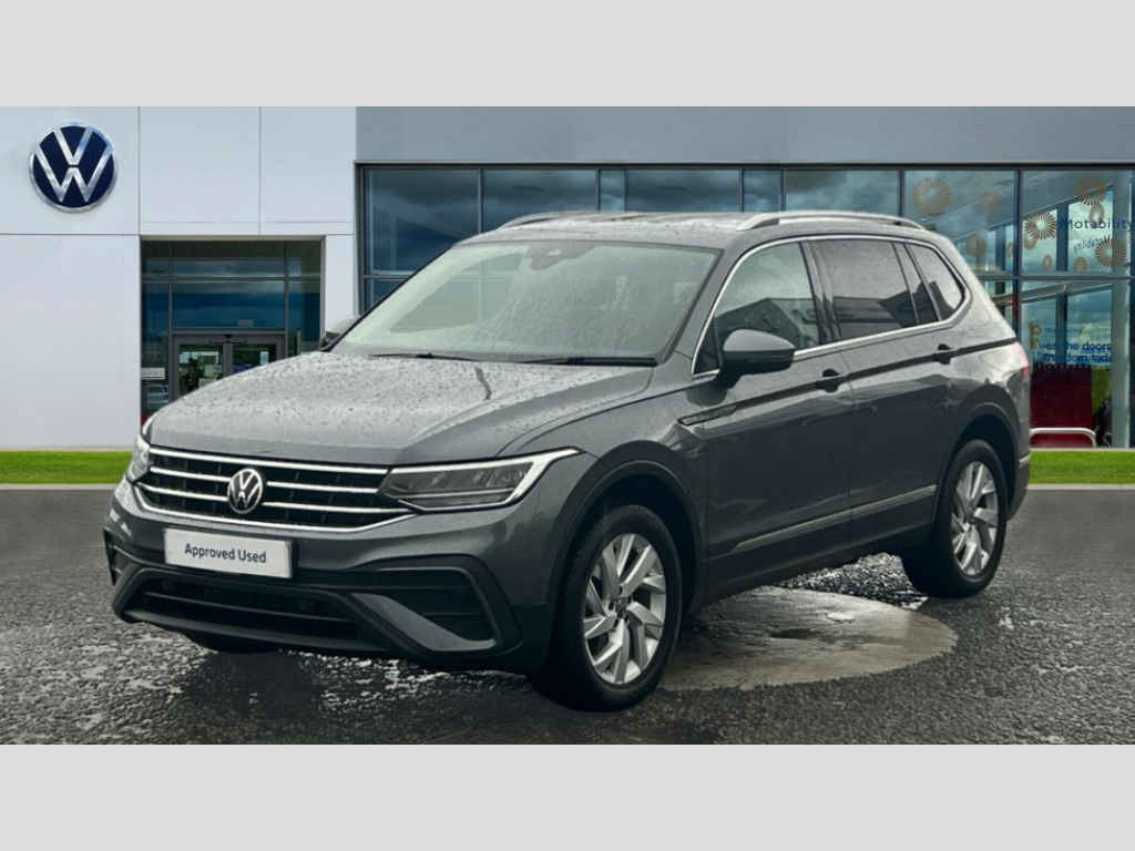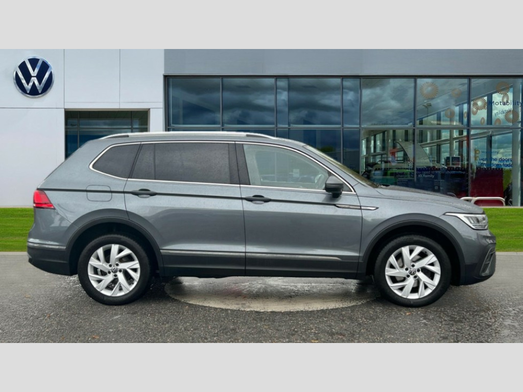 Volkswagen Tiguan Allspace 1.5 TSI Life 5dr DSG Adaptive cruise control radar sensor controlled distance monitoring system, App-Connect, Digital cockpit pro, Driver alert system, Dynamic road sign display, eCall emergency call service, Electric boot lid, Front assist system, Lane keeping system Lane Assist, Mobile phone interface comfort with inductive charging feature, Multifunction front facing camera, Power assisted speed sensitive steering, Speedo and rev counter, electronic odometer, trip, service interval display and exterior temperature gauge, Front wheel drive, Start-stop system with battery regeneration (recuperation - energy recovery during braking), 2 USB-C ports in the front, 1 USB-C charging socket on the center console in the rear, 8 Speakers, DAB Digital radio, Diversity antenna for FM reception, Radio, Auto dimming interior rear view mirror, Automatic headlight control system, Body coloured bumpers, Chrome mouldings on side window, Coming/leaving home lighting function, Exterior badge deletion, Exterior mirror housings painted in silver, Headlight range control, LED headlamps, LED separate daytime running light, Privacy glass, Rain sensor, Rear combination lamps, Rear fog light, Rear side wing doors, Rear wiper, Silver roof rails, Third brake light, 12-volt outlet in centre console rear and luggage compartment, 12V socket in centre console, 3 head restraints in rear, 3 individual folding 2nd row seats, 3rd row 2 individual seats, Air Care Climatronic 3 zone automatic climate control with enhanced air filter and controls in the rear, Driver and front passenger seat height adjustment, Foldable front passenger seat backrest, Front + rear carpet mats, Front centre armrest, Front footwell illumination, ISOFIX anchorage points for mounting 2 child seats on rear seats and i-Size child seats, Leather gearshift handle, LED interior light with switch off delay/dimmer and 2 front/rear LED reading lights, Multifunction steering wheel, Sun visors with illuminated vanity mirrors, 3 point seat belt for centre rear seat, 3 rear three point seatbelts, ABS+EBD+Brake assist, Driver and front passenger safety-optimised head restraints, Driver's and front passenger's airbag with front passenger's airbag deactivation switch, Electronic parking brake, Electronic Stability Control (ESC) inc EDL (Electronic Differential Lock) and ASR (Traction Control), Height adjustable front 3 point seatbelts + pretensioners, Manual rear child locks, Pedestrian monitoring, Rear disc brakes, Two tone horn, Warning buzzer for seatbelts if unfastened, Anti theft alarm system with interior monitoring, backup horn and towing protection, Anti-theft wheel bolts, Remote central locking with 2 remote folding keys, Chequered flag tinanium decorative inserts
