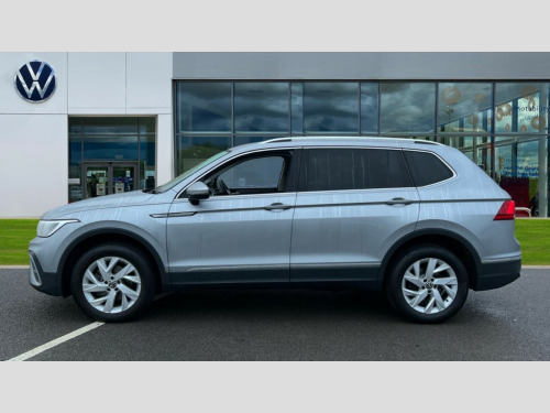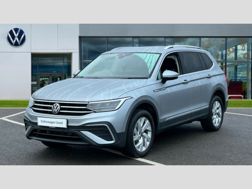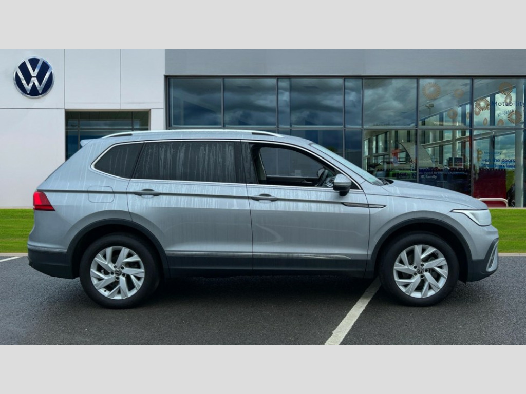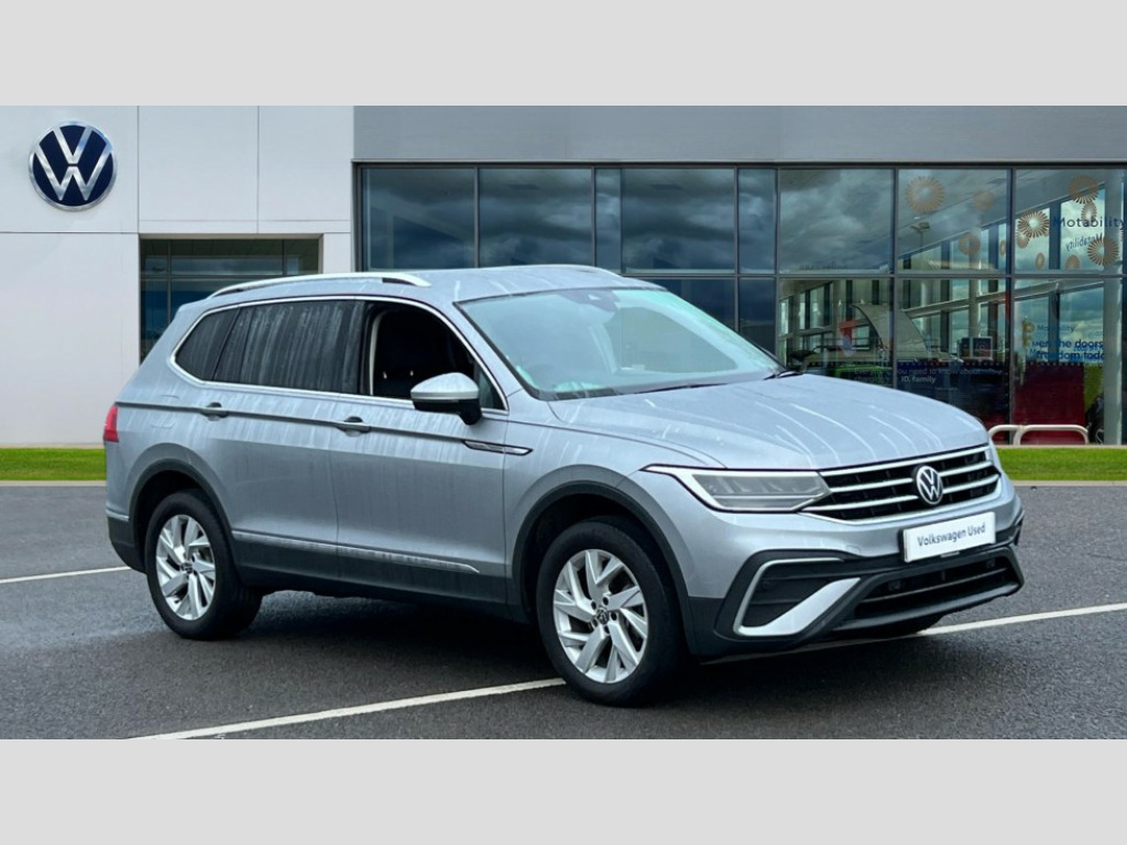 Volkswagen Tiguan Allspace 1.5 TSI Life 5dr DSG Adaptive cruise control radar sensor controlled distance monitoring system, App-Connect, Digital cockpit pro, Driver alert system, Dynamic road sign display, eCall emergency call service, Electric boot lid, Front assist system, Lane keeping system Lane Assist, Mobile phone interface comfort with inductive charging feature, Multifunction front facing camera, Power assisted speed sensitive steering, Speedo and rev counter, electronic odometer, trip, service interval display and exterior temperature gauge, Front wheel drive, Start-stop system with battery regeneration (recuperation - energy recovery during braking), 2 USB-C ports in the front, 1 USB-C charging socket on the center console in the rear, DAB Digital radio, Diversity antenna for FM reception, Auto dimming interior rear view mirror, Automatic headlight control system, Body coloured bumpers, Chrome mouldings on side window, Coming/leaving home lighting function, Exterior badge deletion, Exterior mirror housings painted in silver, Headlight range control, LED headlamps, LED separate daytime running light, Privacy glass, Rain sensor, Rear combination lamps, Rear fog light, Rear side wing doors, Rear wiper, Silver roof rails, Third brake light, 12-volt outlet in centre console rear and luggage compartment, 12V socket in centre console, 3 head restraints in rear, 3 individual folding 2nd row seats, 3rd row 2 individual seats, Air Care Climatronic 3 zone automatic climate control with enhanced air filter and controls in the rear, Driver and front passenger seat height adjustment, Foldable front passenger seat backrest, Front + rear carpet mats, Front centre armrest, Front footwell illumination, ISOFIX anchorage points for mounting 2 child seats on rear seats and i-Size child seats, Leather gearshift handle, LED interior light with switch off delay/dimmer and 2 front/rear LED reading lights, Multifunction steering wheel, Sun visors with illuminated vanity mirrors, 3 point seat belt for centre rear seat, 3 rear three point seatbelts, ABS+EBD+Brake assist, Driver and front passenger safety-optimised head restraints, Driver's and front passenger's airbag with front passenger's airbag deactivation switch, Electronic parking brake, Electronic Stability Control (ESC) inc EDL (Electronic Differential Lock) and ASR (Traction Control), Height adjustable front 3 point seatbelts + pretensioners, Manual rear child locks, Pedestrian monitoring, Rear disc brakes, Two tone horn, Warning buzzer for seatbelts if unfastened, Anti theft alarm system with interior monitoring, backup horn and towing protection, Anti-theft wheel bolts, Remote central locking with 2 remote folding keys, Chequered flag tinanium decorative inserts