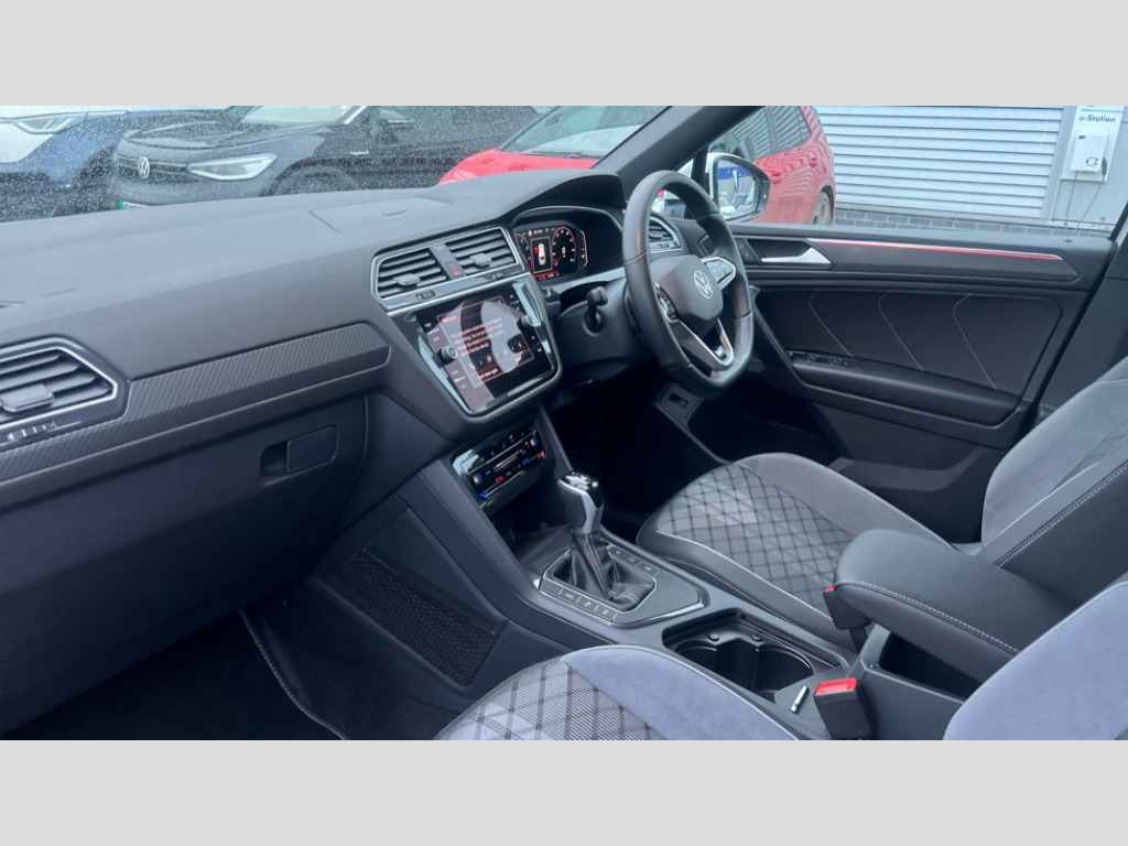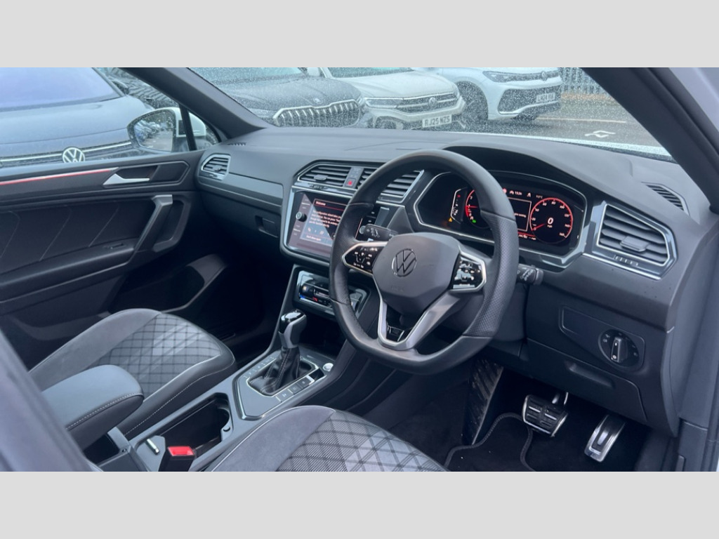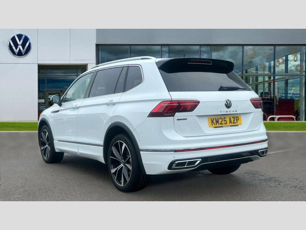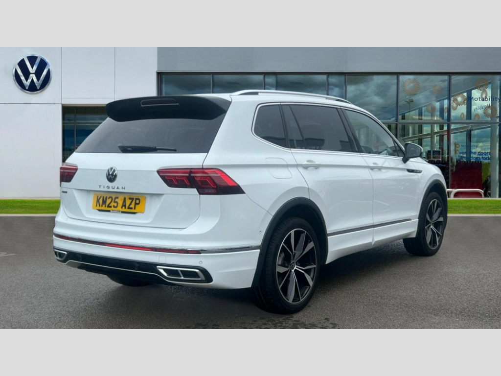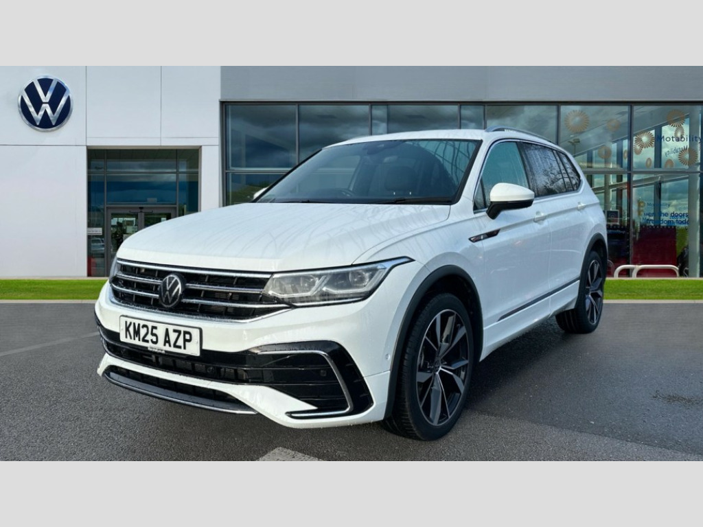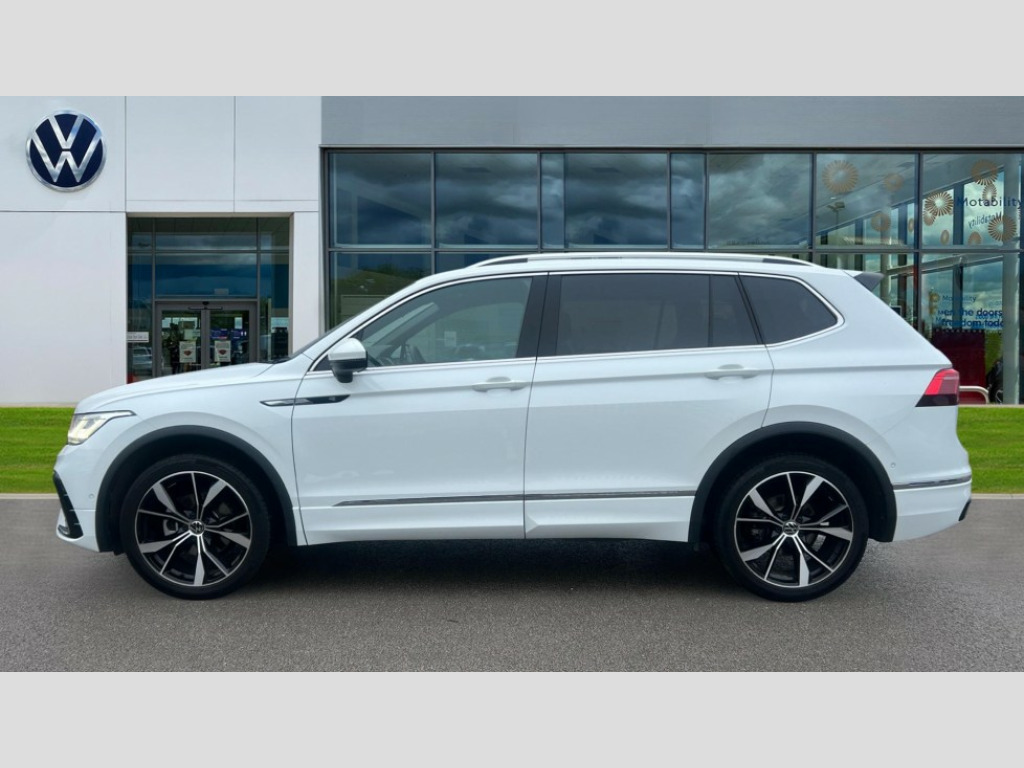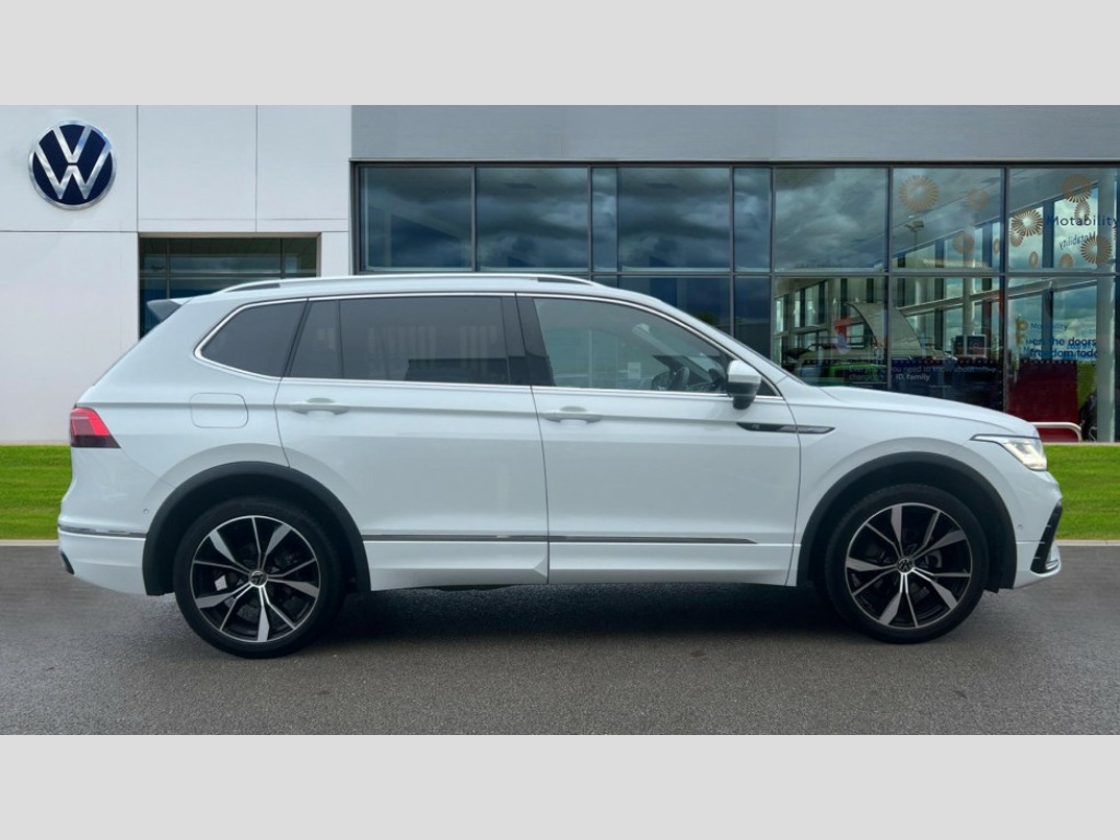 Volkswagen Tiguan Allspace 1.5 TSI R-Line 5dr DSG Adaptive cruise control, Advanced driver attention and drowsiness monitor, App-Connect, Digital cockpit pro, Driver profile selection, eCall emergency call service, Electric boot lid, Lane change assist, Lane keeping system Lane Assist, Mobile phone interface comfort with inductive charging feature, Multifunction front facing camera, Progressive steering, Speedo and rev counter, electronic odometer, trip, service interval display and exterior temperature gauge, Front wheel drive, Start-stop system with battery regeneration (recuperation - energy recovery during braking), 2 USB-C ports in the front, 1 USB-C charging socket on the center console in the rear, DAB Digital radio, Diversity antenna for FM reception, Auto dimming interior rear view mirror, Automatic headlight control system, Chrome mouldings on side window, Coming/leaving home lighting function, Exterior badge deletion, Rain sensor, Rear fog light, Rear side wing doors, Rear spoiler in R style, Rear wiper, Silver roof rails, Third brake light, 12-volt outlet in centre console rear and luggage compartment, 12V socket in centre console, 3 head restraints in rear, 3 individual folding 2nd row seats, 3rd row 2 individual seats, Air Care Climatronic 3 zone automatic climate control with enhanced air filter and controls in the rear, Black roof lining, Door and side trim panel with leatherette insert, Drawers under front seats, Driver + front passenger lumbar support, Driver and front passenger seat height adjustment, Foldable front passenger seat backrest, Front + rear carpet mats, Front centre armrest, Front footwell illumination, Illuminated scuff plates, ISOFIX anchorage points for mounting 2 child seats on rear seats and i-Size child seats, Leather gearshift handle, Leather wrapped multi function sports steering wheel with touch control and shifting paddles, LED interior light with switch off delay/dimmer and 2 front/rear LED reading lights, Stainless steel pedals, Sun visors with illuminated vanity mirrors, Top comfort sports seats in front with 'R' Logo, Ambience pack - Tiguan Allspace R Line, Driver assistance plus package - Tiguan Allspace, Park assist pack - Tiguan Allspace, 3 point seat belt for centre rear seat, 3 rear three point seatbelts, ABS+EBD+Brake assist, Driver and front passenger safety-optimised head restraints, Driver's and front passenger's airbag with front passenger's airbag deactivation switch, Electronic parking brake, Electronic Stability Control (ESC) inc EDL (Electronic Differential Lock) and ASR (Traction Control), Height adjustable front 3 point seatbelts + pretensioners, Manual rear child locks, Pedestrian monitoring, Rear disc brakes, Side airbag in front and rear with curtain airbag, Two tone horn, Warning buzzer for seatbelts if unfastened, Anti theft alarm system with interior monitoring, backup horn and towing protection, Anti-theft wheel bolts, Remote central locking with 2 remote folding keys