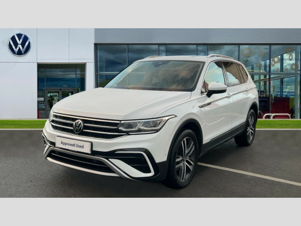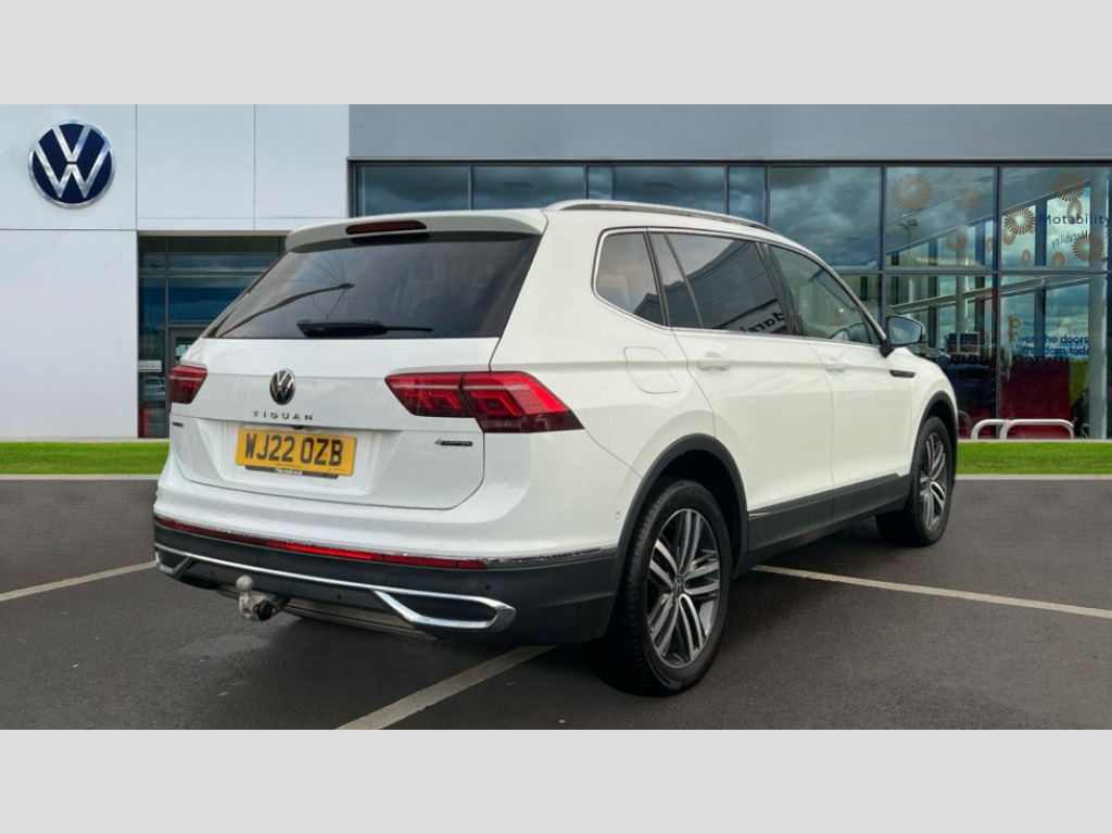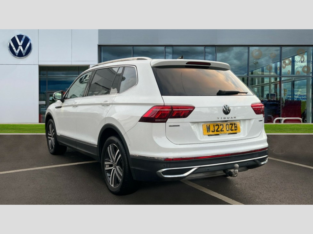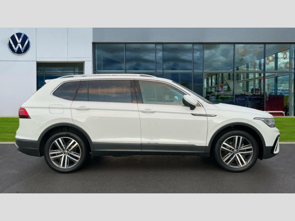 Volkswagen Tiguan Allspace 2.0 TDI 4Motion Elegance 5dr DSG Adaptive cruise control, App-Connect, Digital cockpit pro, Driver alert system, Dynamic road sign display, eCall emergency call service, Electric boot lid, Lane change system side assist and rear traffic alert, Lane keeping system Lane Assist, Mobile phone interface comfort with inductive charging feature, Multifunction front facing camera, Power assisted speed sensitive steering, Speedo and rev counter, electronic odometer, trip, service interval display and exterior temperature gauge, Diesel particulate filter, Start-stop system with battery regeneration (recuperation - energy recovery during braking), 2 USB-C ports in the front, 1 USB-C charging socket on the center console in the rear, DAB Digital radio, Diversity antenna for FM reception, Radio, Auto dimming interior rear view mirror, Automatic headlight control system, Body coloured comfort bumpers, Chrome mouldings on side window, Coming/leaving home lighting function, Exterior badge deletion, Exterior mirror housings painted in silver, Heated windscreen washer jets, IQ light adv HBC, dyn light assist LED matrix headlamps,DH range,dark red LED rear combo light,poor weather,CL,LED headlamp with LED DRL and DCL - PXC, Privacy glass, Rain sensor, Rear fog light, Rear side wing doors, Rear wiper, Silver roof rails, Third brake light, Tilting and sliding panoramic sunroof, 12-volt outlet in centre console rear and luggage compartment, 12V socket in centre console, 3 head restraints in rear, 3 individual folding 2nd row seats, 3rd row 2 individual seats, Air Care Climatronic 3 zone automatic climate control with enhanced air filter and controls in the rear, Door and side trim panel, Drawers under front seats, Driver and front passenger seat height adjustment, Foldable front passenger seat backrest, Front + rear carpet mats, Front centre armrest, Front footwell illumination, Heated front seats, Illuminated scuff plates, ISOFIX anchorage points for mounting 2 child seats on rear seats and i-Size child seats, Leather gearshift handle, Leather-wrapped heated multi-function steering wheel with paddle shift, LED interior light with switch off delay/dimmer and 2 front/rear LED reading lights, Sun visors with illuminated vanity mirrors, Ambience pack - Tiguan Allspace, Easy open and close pack with safelock - Tiguan Allspace, Park assist pack - Tiguan Allspace, 3 point seat belt for centre rear seat, 3 rear three point seatbelts, ABS+EBD+Brake assist, Driver and front passenger safety-optimised head restraints, Driver's and front passenger's airbag with front passenger's airbag deactivation switch, Electronic parking brake, Electronic Stability Control (ESC) inc EDL (Electronic Differential Lock) and ASR (Traction Control), Height adjustable front 3 point seatbelts + pretensioners, Manual rear child locks, Pedestrian monitoring, PreCrash preventive occupant protection Front and rear, Rear disc brakes, Side airbag in front and rear with curtain airbag, Two tone horn, Warning buzzer for seatbelts if unfastened, Anti theft alarm system with interior monitoring, backup horn and towing protection, Anti-theft wheel bolts, Electronic steering lock, Remote central locking with 2 remote folding keys, Chequered flag tinanium decorative inserts