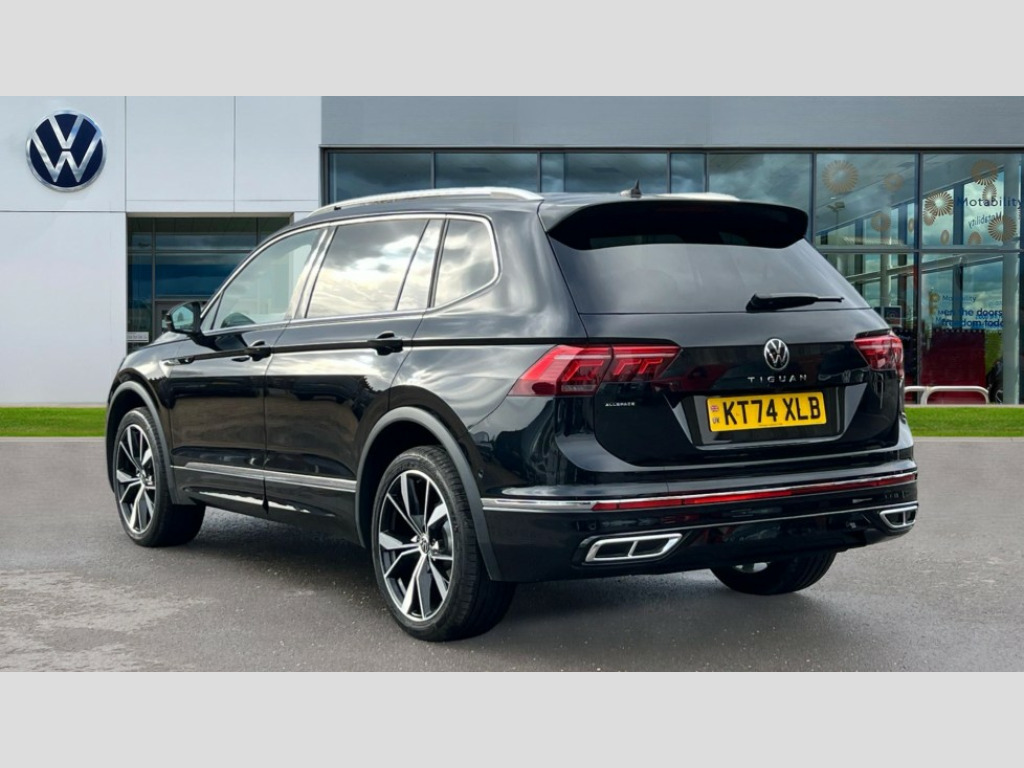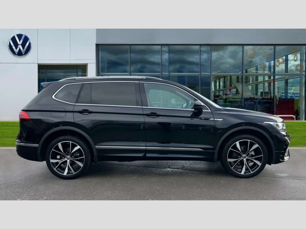 Volkswagen Tiguan Allspace 2.0 TDI R-Line 5dr DSG Adaptive cruise control, Advanced driver attention and drowsiness monitor, App-Connect, Digital cockpit pro, Driver profile selection, eCall emergency call service, Electric boot lid, Lane change assist, Lane keeping system Lane Assist, Mobile phone interface comfort with inductive charging feature, Multifunction front facing camera, Progressive steering, Speedo and rev counter, electronic odometer, trip, service interval display and exterior temperature gauge, Diesel particulate filter, Front wheel drive, Start-stop system with battery regeneration (recuperation - energy recovery during braking), 2 USB-C ports in the front, 1 USB-C charging socket on the center console in the rear, DAB Digital radio, Diversity antenna for FM reception, Auto dimming interior rear view mirror, Automatic headlight control system, Chrome mouldings on side window, Coming/leaving home lighting function, Exterior badge deletion, Rain sensor, Rear fog light, Rear side wing doors, Rear spoiler in R style, Rear wiper, Silver roof rails, Third brake light, 12-volt outlet in centre console rear and luggage compartment, 12V socket in centre console, 3 head restraints in rear, 3 individual folding 2nd row seats, 3rd row 2 individual seats, Air Care Climatronic 3 zone automatic climate control with enhanced air filter and controls in the rear, Black roof lining, Door and side trim panel with leatherette insert, Drawers under front seats, Driver + front passenger lumbar support, Driver and front passenger seat height adjustment, Foldable front passenger seat backrest, Front + rear carpet mats, Front centre armrest, Front footwell illumination, Illuminated scuff plates, ISOFIX anchorage points for mounting 2 child seats on rear seats and i-Size child seats, Leather gearshift handle, Leather wrapped multi function sports steering wheel with touch control and shifting paddles, LED interior light with switch off delay/dimmer and 2 front/rear LED reading lights, Stainless steel pedals, Sun visors with illuminated vanity mirrors, Top comfort sports seats in front with 'R' Logo, Ambience pack - Tiguan Allspace R Line, Driver assistance plus package - Tiguan Allspace, Park assist pack - Tiguan Allspace, 3 point seat belt for centre rear seat, 3 rear three point seatbelts, ABS+EBD+Brake assist, Driver and front passenger safety-optimised head restraints, Driver's and front passenger's airbag with front passenger's airbag deactivation switch, Electronic parking brake, Electronic Stability Control (ESC) inc EDL (Electronic Differential Lock) and ASR (Traction Control), Height adjustable front 3 point seatbelts + pretensioners, Manual rear child locks, Pedestrian monitoring, Rear disc brakes, Side airbag in front and rear with curtain airbag, Two tone horn, Warning buzzer for seatbelts if unfastened, Anti theft alarm system with interior monitoring, backup horn and towing protection, Anti-theft wheel bolts, Remote central locking with 2 remote folding keys