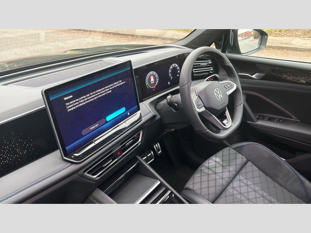Volkswagen Tiguan 1.5 TSI eHybrid R-Line 5dr DSG Adaptive cruise control (ACC), Advanced driver attention and drowsiness monitor, Bluetooth mobile phone interface, Car2X technology, Digital Cockpit Pro - 10.25" high resolution dash display screen with customisable menus and information, Dynamic road sign display, E-Sim card for online connectivity, eCall emergency call service, Front Assist - Autonomous emergency braking with pedestrian and cyclist monitoring, Lane change system, Side assist, Rear traffic alert and Exit warning system, Lane keeping system Lane Assist, Oncoming vehicle braking when turning including swerve support, Park assistance plus with front and rear parking sensors, Power assisted steering with speed sensitive, Start/stop system with regenerative braking, Warning signal and warning light for front and rear seatbelts not fastened, Wireless App-Connect, Adaptive chassis control DCC pro includes driving mode selection, Charging cable Mode 3 Type 2 / 3 (16A), Front shock absorption, Front wheel drive, Rear shock absorption, Digital radio reception (DAB), Diversity antenna for FM reception, Air intake with Chrome trim, Ambient lighting with logo projection, Auto dimming interior rear view mirror, Automatic headlight control system, Body coloured door handles, Chrome moldings on the side windows, Coming/leaving home lighting function, Heat insulating glass in side and rear windows, Heated rear window, Heated windscreen washer jets, High level 3rd brake light, Illuminated door handle recesses, Illuminated lightline between headlamps, Laminated safety glass windshield, LED Day time running light, Puddle lights and reverse activated passengers door mirror, Rain sensor windscreen wipers, Rear fog light on one side, reversing light on both sides, Rear side wing doors, Rear wiper, 12V outlet in center console rear and in luggage compartment, 12V socket in centre console, 3 bench rear seats in 2nd row, Air care climatronic 3 zone air conditioning system with rear air conditioning control panel, Black roof lining, Brushed stainless steel pedals, Carpet mats, front and rear, Centre console with illuminated storage compartment with sliding cover and two drinks holders, Chrome elements on the mirror switch and power window switches and door pulls, Door and side trim panel with leatherette insert, Door sill protectors, Front centre armrest, Interior ambient lighting with 30 colour options, ISOFIX anchors for child seats on outer rear seats and front passenger seat compatible with i-Size, Mechanical rear seat release, Power adjustable lumbar support in front, Rear bench seat, split folding, longitudinally movable and folding with load-through hatch and centre armrest, Single front passenger seat, Soul headlining, Sports comfort seats in front, Sun visors with illuminated vanity mirrors, Three rear head restraints, Variable luggage compartment floor, 3 point seat belt for centre rear seats, 3 Point seat belts in front with pretensioners, 3 point seatbelts in outer rear with ECE label, Driver and front passenger airbag with front passenger airbag deactivation, Electronic parking brake with auto hold, Front and rear curtain airbags, Front and rear side airbags, Front centre airbag, Front disc brakes, Manual child proof rear door locks, Rear disc brakes, Two tone horn, Warning triangle, Decorative inserts, Interior door handle in matte chrome, Soul instrument panel, Tyre mobility kit including compressor and sealing foam