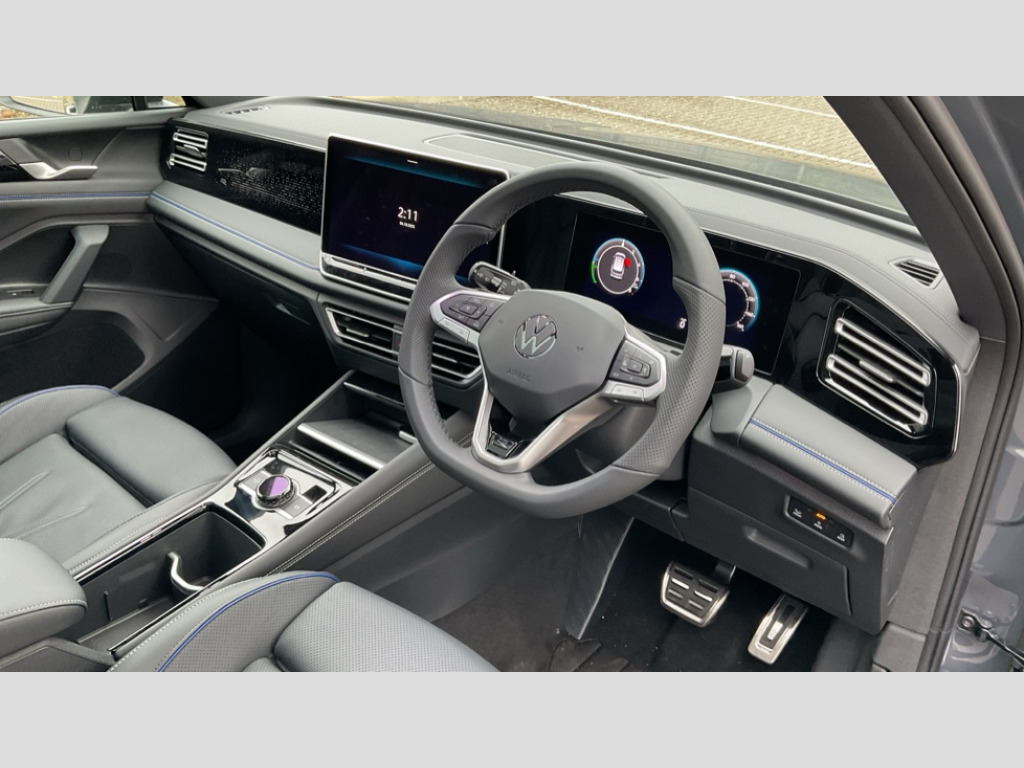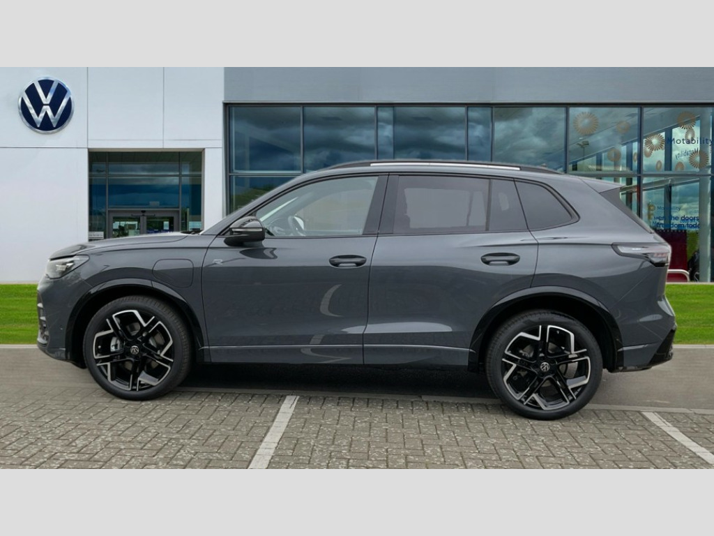 Volkswagen Tiguan 1.5 TSI eHybrid R-Line 5dr DSG Adaptive cruise control (ACC), Advanced driver attention and drowsiness monitor, Bluetooth mobile phone interface, Car2X technology, Digital Cockpit Pro - 10.25" high resolution dash display screen with customisable menus and information, Dynamic road sign display, E-Sim card for online connectivity, eCall emergency call service, Front Assist - Autonomous emergency braking with pedestrian and cyclist monitoring, Lane change system, Side assist, Rear traffic alert and Exit warning system, Lane keeping system Lane Assist, Oncoming vehicle braking when turning including swerve support, Park assistance plus with front and rear parking sensors, Power assisted steering with speed sensitive, Start/stop system with regenerative braking, Warning signal and warning light for front and rear seatbelts not fastened, Wireless App-Connect, Adaptive chassis control DCC pro includes driving mode selection, Charging cable Mode 3 Type 2 / 3 (16A), Front shock absorption, Front wheel drive, Rear shock absorption, Digital radio reception (DAB), Diversity antenna for FM reception, Air intake with Chrome trim, Ambient lighting with logo projection, Auto dimming interior rear view mirror, Automatic headlight control system, Body coloured door handles, Chrome moldings on the side windows, Coming/leaving home lighting function, Heat insulating glass in side and rear windows, Heated rear window, Heated windscreen washer jets, High level 3rd brake light, Illuminated door handle recesses, Illuminated lightline between headlamps, Laminated safety glass windshield, LED Day time running light, Puddle lights and reverse activated passengers door mirror, Rain sensor windscreen wipers, Rear fog light on one side, reversing light on both sides, Rear side wing doors, Rear wiper, 12V outlet in center console rear and in luggage compartment, 12V socket in centre console, 3 bench rear seats in 2nd row, Air care climatronic 3 zone air conditioning system with rear air conditioning control panel, Black roof lining, Brushed stainless steel pedals, Carpet mats, front and rear, Centre console with illuminated storage compartment with sliding cover and two drinks holders, Chrome elements on the mirror switch and power window switches and door pulls, Door and side trim panel with leatherette insert, Door sill protectors, Front centre armrest, Interior ambient lighting with 30 colour options, ISOFIX anchors for child seats on outer rear seats and front passenger seat compatible with i-Size, Mechanical rear seat release, Power adjustable lumbar support in front, Rear bench seat, split folding, longitudinally movable and folding with load-through hatch and centre armrest, Single front passenger seat, Soul headlining, Sports comfort seats in front, Sun visors with illuminated vanity mirrors, Three rear head restraints, Variable luggage compartment floor, 3 point seat belt for centre rear seats, 3 Point seat belts in front with pretensioners, 3 point seatbelts in outer rear with ECE label, Driver and front passenger airbag with front passenger airbag deactivation, Electronic parking brake with auto hold, Front and rear curtain airbags, Front and rear side airbags, Front centre airbag, Front disc brakes, Manual child proof rear door locks, Rear disc brakes, Two tone horn, Warning triangle, Decorative inserts, Interior door handle in matte chrome, Soul instrument panel, Tyre mobility kit including compressor and sealing foam