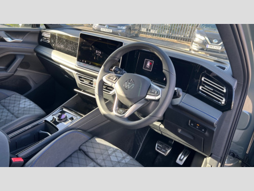 Volkswagen Tiguan 2.0 TDI R-Line 5dr DSG Adaptive cruise control (ACC), Advanced driver attention and drowsiness monitor, Bluetooth mobile phone interface, Car2X technology, Digital Cockpit Pro - 10.25" high resolution dash display screen with customisable menus and information, Dynamic road sign display, E-Sim card for online connectivity, eCall emergency call service, Front Assist - Autonomous emergency braking with pedestrian and cyclist monitoring, Lane change system, Side assist, Rear traffic alert and Exit warning system, Lane keeping system Lane Assist, Oncoming vehicle braking when turning including swerve support, Park assistance plus with front and rear parking sensors, Power assisted steering with speed sensitive, Start/stop system with regenerative braking, Warning signal and warning light for front and rear seatbelts not fastened, Wireless App-Connect, Front wheel drive, Digital radio reception (DAB), Diversity antenna for FM reception, Air intake with Chrome trim, Ambient lighting with logo projection, Auto dimming interior rear view mirror, Automatic headlight control system, Body coloured door handles, Chrome moldings on the side windows, Coming/leaving home lighting function, Heat insulating glass in side and rear windows, Heated rear window, Heated windscreen washer jets, High level 3rd brake light, Illuminated door handle recesses, Illuminated lightline between headlamps, Laminated safety glass windshield, LED Day time running light, Puddle lights and reverse activated passengers door mirror, Rain sensor windscreen wipers, Rear fog light on one side, reversing light on both sides, Rear side wing doors, Rear wiper, 12V outlet in center console rear and in luggage compartment, 12V socket in centre console, 3 bench rear seats in 2nd row, Air care climatronic 3 zone air conditioning system with rear air conditioning control panel, Black roof lining, Brushed stainless steel pedals, Carpet mats, front and rear, Centre console with illuminated storage compartment with sliding cover and two drinks holders, Chrome elements on the mirror switch and power window switches and door pulls, Door and side trim panel with leatherette insert, Door sill protectors, Front centre armrest, Interior ambient lighting with 30 colour options, ISOFIX anchors for child seats on outer rear seats and front passenger seat compatible with i-Size, Mechanical rear seat release, Power adjustable lumbar support in front, Rear bench seat, split folding, longitudinally movable and folding with load-through hatch and centre armrest, Single front passenger seat, Soul headlining, Sports comfort seats in front, Sun visors with illuminated vanity mirrors, Three rear head restraints, Variable luggage compartment floor, 3 point seat belt for centre rear seats, 3 Point seat belts in front with pretensioners, 3 point seatbelts in outer rear with ECE label, Driver and front passenger airbag with front passenger airbag deactivation, Electronic parking brake with auto hold, Front and rear curtain airbags, Front and rear side airbags, Front centre airbag, Front disc brakes, Manual child proof rear door locks, Rear disc brakes, Two tone horn, Warning triangle, Decorative inserts, Interior door handle in matte chrome, Soul instrument panel