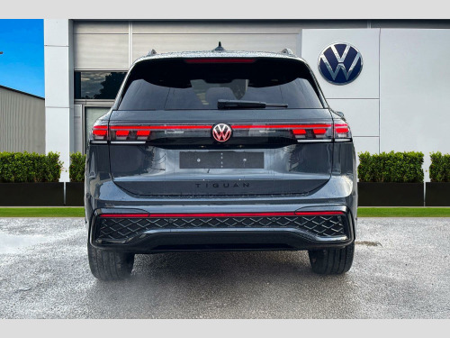 Presenting this brand new Volkswagen Tiguan R-Line that is available to purchase at Wrexham Volkswagen. This Tiguan is powered by a 2.0 TDI 150PS engine with automatic transmission. The exterior is finished in the 'Urano Grey' paintwork, which is complimented by the 20in York alloy wheels to the side. This Tiguan comes with a range of features on offer such as the LED headlights that provide exceptional visibility, the rear tinted windows which provide passenger privacy, folding towbar with trailer assist, and parking sensors that assist with maneuvering alongside the rear view camera. The optionally-fitted Comfort Package provides keyless entry and electric tailgate for convenient accessibility.
