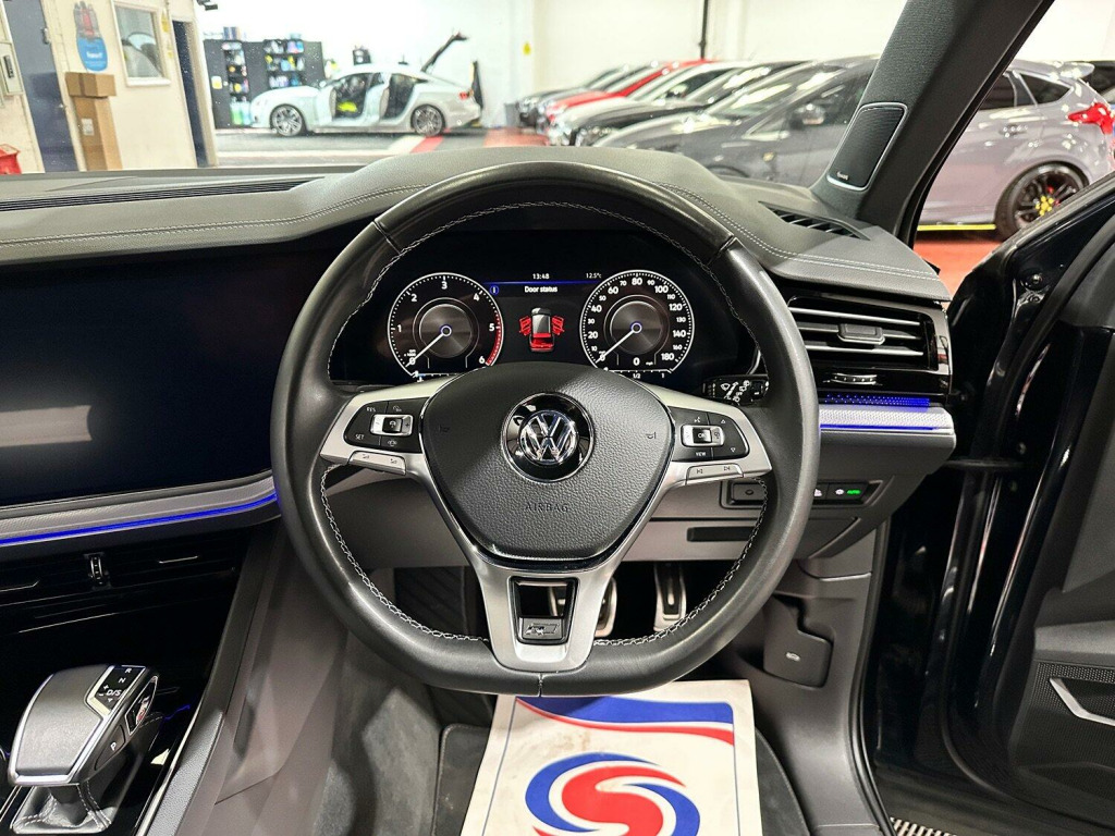 2020 20 VOLKSWAGEN TOUREG 3.0 TDI V6 BLACK EDITION 5DR. , This Vehicle Comes With Warranty As Standard, Please Call Us For More Details!, , Stunning Example With Only 2 Previous Keepers From New Presented In Volkswagen Moonlight Blue Pearl Paintwork With Contrasting Black And Grey Leather Seats Complete With 21 Inch Gloss Black Alloy Wheels Wrapped In Four Premium Tyres. , Covering 81,000 Miles From New, Backed Up With Full Service History With The Digital Service Record To Show. Very Clean Throughout With Excellent Bodywork, Unmarked Interior And Outstanding Wheels, New Owner Wont Be Disappointed. This Vehicle Comes With Two Keys. , Its 3.0 Litre Turbo Diesel Engine Produces 282Bhp And 601Nm Of Torque. This Is Matched With Its 8 Speed Automatic Gearbox With The Option Of Changing Gear With F1 Style Paddle Shifters Partnered With Its 4 Motion All Wheel Drive System Which Makes For A Superb Drive!, , Outstanding Spec Includes. *Volkswagen Moonlight Blue Pearl Paintwork. *Electric Adjustable Black And Grey Heated Leather Seats. *21 Inch Gloss Black Alloy Wheels. *Electronic Tilt And Slide Panoramic Sunroof. *Electronic Retractable Roof Blind. *Air Suspension Modes. (Load, Street, Off Road, Off Road+), *Drive Select. (Efficiency, Comfort, Normal, Sport, Individual, Off Road, Snow), *Piano Black Interior Inlays. *Multi Function Steering Wheel. *Electric Adjustable Steering Wheel. *Adaptive Cruise Control. *Assist Systems. *Lane Assist. *Park Assist, *Virtual Dash. *Keyless Entry. *Keyless Start. *Heads Up Display. *Parking Sensors. *Reverse Camera With 360 View. *Electric Folding Wing Mirrors. *Heated Wing Mirrors. *Automatic Xenon Headlights. *Automatic Windscreen Wipers. *Upgraded Dynaudio Sound System. *Volkswagen Touch Multi Media Interface. *Satellite Navigation System. *App Connect With Apple Car Play. *DAB Radio. *Bluetooth Connectivity. *Wireless Charge. *USB Input. *Tail Gate Convenience Loading System. *Electronic Parking Brake. *Auto Hold. *Ambient Interior Lighting. *Illuminated Door Sills. *Split Folding Rear Seats. , Excellent Spec Includes, Electric Windows, Central Locking System, Fog Lights, Trip Computer, Height Adjustable Steering Wheel, Rear View interior Mirror, Front And Rear Interior Lights, Rear Heated Screen, Cup Holders, Rear Arm Rest, Isofix And Much More. , Genuine Miles Backed Up With Full Service History and Previous MOT Certificates To Verify Miles, Part Exchange Welcome Contact Us For A Fair And No Obligation Valuation. , All Our Vehicles Have Been Road Tested With Multi Point Checks And We Welcome RAC Or AA Inspections, For Your Added Peace Of Mind All Of Our Vehicles Are HPI Clear. , We Can Provide A Decision Within 30 Minutes Please Call Us To Discuss Your Requirements, Our Finance Partners Include Close Brothers | CF247 | Motonovo | Evolution And Others. , We Offer Full Dealer Facilities Including A Comfortable Customer Office An Indoor Viewing Area And We Accept All Methods Of Payment, We Are Open 7 Days A Week Please Call Ahead To Ensure The Vehicle Of Interest Is Still Available, Sales 0161 336 2007 Or General Enquiries 0161 335 0008. , Every effort has been made to ensure the vehicle has been described accurately in accordance with its age and mileage, The data above details the usual specification of the most recent model of this vehicle and may vary for the actual vehicle for sale. , Please always check the vehicle specification prior to purchase. If You Have Any Questions Please Get In Touch And We Will Be Happy To Help. , All Our Vehicles Come With Warranty Included, Extended Warranty Options Available, We Offer Finance With Competitive HP And PCP Deals Available, Visit Our Website To Use Our Online Calculator And Apply Online Today!
