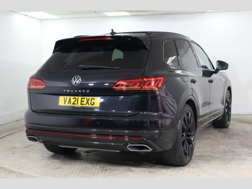 Discover this exceptional 2021 Volkswagen Touareg TDI V6 Black Edition, boasting remarkably low mileage for its age at just 34,181 miles. This Four Wheel Drive model, powered by a robust 3.0L Diesel Euro 6 engine, offers a compelling blend of performance and practicality. Its Black Edition trim ensures a striking presence, complemented by Full LED Headlights for superior visibility. Inside, experience supreme comfort with Front ErgoComfort Seats featuring electric 14-way adjustment and memory settings, part of the comprehensive Memory Pack. The convenience of Keyless Entry, including Hands Free Tailgate Opening, makes accessing the generous boot space effortless. This Touareg stands out with its impressive acceleration, reaching 0-62mph in a swift 6.3 seconds, demonstrating its dynamic capabilities. The Adaptive Cruise Control, complete with Front Assist and radar sensor controlled distance monitoring, enhances driving ease and safety. Furthermore, its low insurance group rating indicates potential cost savings for owners. With a substantial towing weight of 3500 kg, this vehicle is exceptionally well equipped for a variety of needs, offering more versatility than many comparable models. 12V Socket x3, 21in Alloy Wheels - Suzuka Glossy Black, 2x Type C USB Interfaces in Dashboard - , 4MOTION Active Control, ABS Plus - Anti-Lock Braking System with, Active Bonnet, Adaptive Cruise Control - Including Fron, Advanced High-Beam Control Dynamic Light, Air Suspension, Air Vents in B-Pillar, Alarm with Interior Protection - Back up, Ambient Lighting - White, Automatic Coming Home Lighting Function, Automatic Dimming Interior Rear View Mir, Automatic Headlight Control, Automatic Headlight Height Adjustment, Automatic Post-Collision Braking System, Autonomous Emergency Braking, Black Decorative Trims on the Side Windo, Black Exterior Mirror Housings, Body Coloured Door Handles, Body C