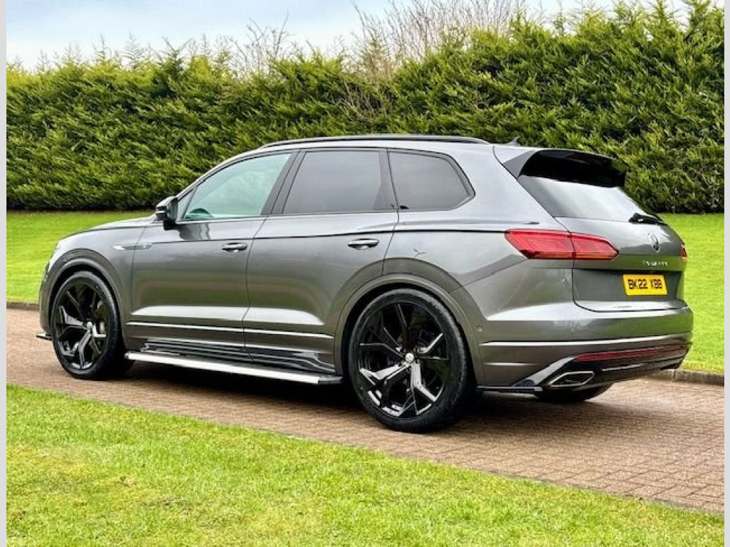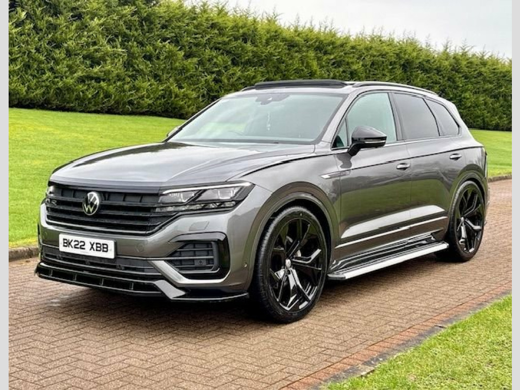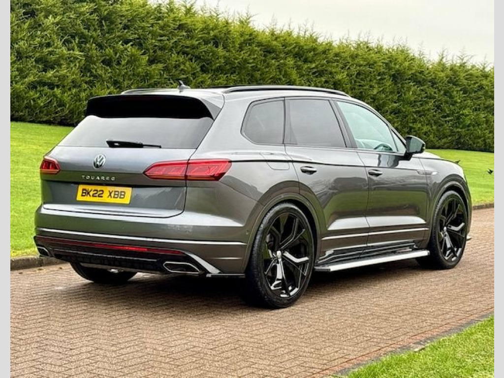 March 2022 VW Touareg 3.0 TDI V6 4Motion Black Edition Auto in Silicon Grey. 1 Owner with Full Service History. MOT'd to July 2026. Loaded with spec including Tilt & Slide Panoramic Roof, Innovision Cockpit, LED Daytime Running Lights, Aero Styling Kit, Side Steps, Full R Embroidered Leather Interior, Heated Seats, Navigation System, Bluetooth, DAB Radio, Cruise Control, Central Armrests, Electric Boot, Black Pack etc. Fitted with Brand New 23" Alloys & Tyres (Optional Extra £1495) FINANCE AVAILABLE AT KEEN RATES!! Viewing by Appointment Only Please. 12V Socket x3, 21in Alloy Wheels - Suzuka Glossy Black, 2x Type C USB Interfaces in Dashboard - , 4MOTION Active Control, ABS Plus - Anti-Lock Braking System with, Active Bonnet, Adaptive Cruise Control - Including Fron, Advanced High-Beam Control Dynamic Light, Air Suspension, Air Vents in B-Pillar, Alarm with Interior Protection - Back up, Ambient Lighting - White, Automatic Coming Home Lighting Function, Automatic Dimming Interior Rear View Mir, Automatic Headlight Control, Automatic Headlight Height Adjustment, Automatic Post-Collision Braking System, Autonomous Emergency Braking, Black Decorative Trims on the Side Windo, Black Exterior Mirror Housings, Body Coloured Door Handles, Body C