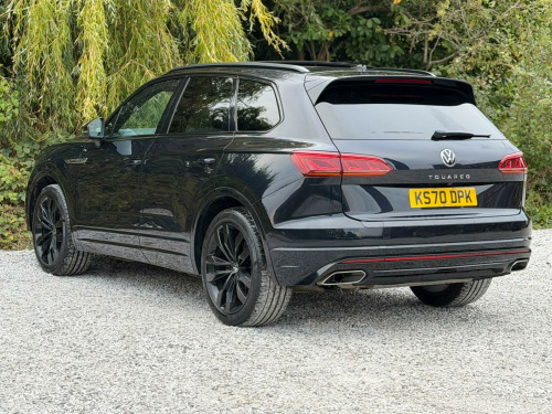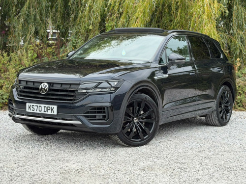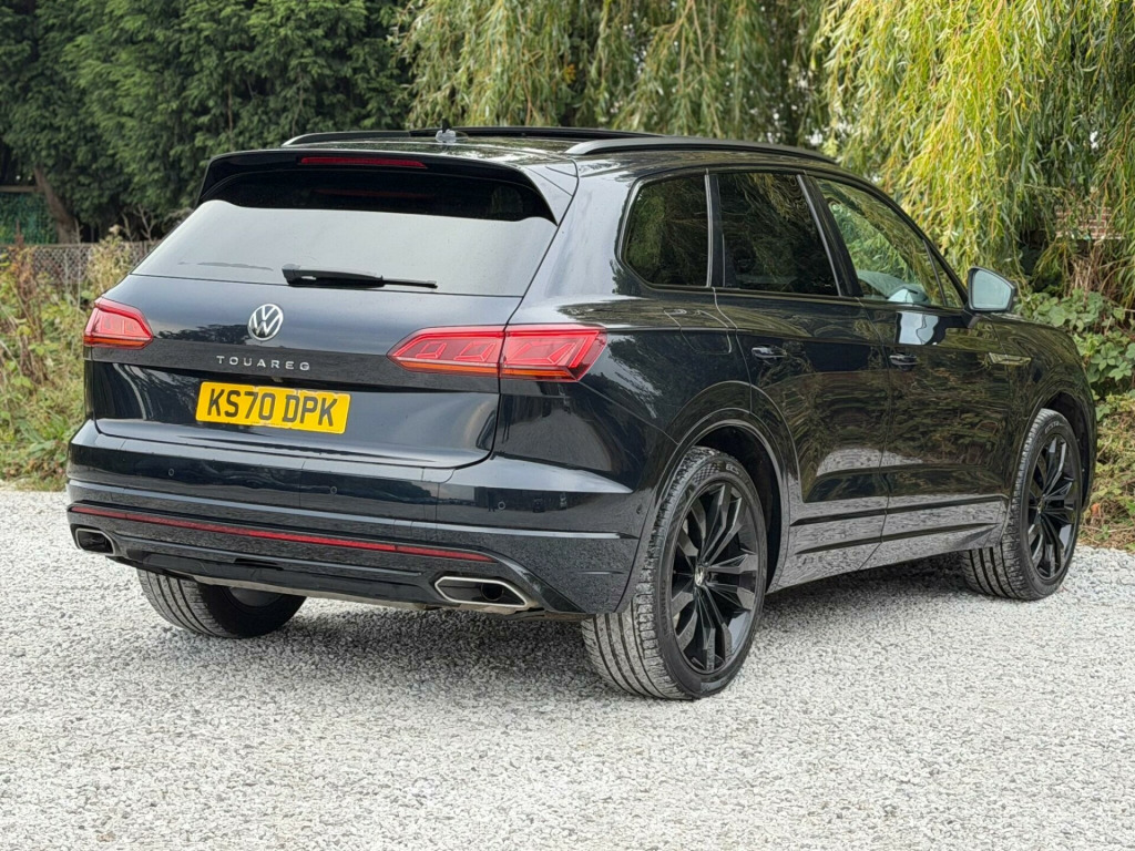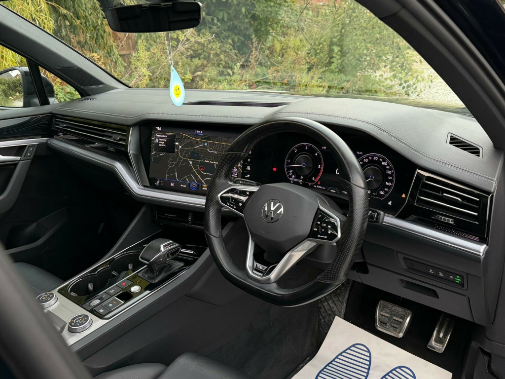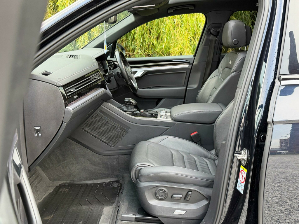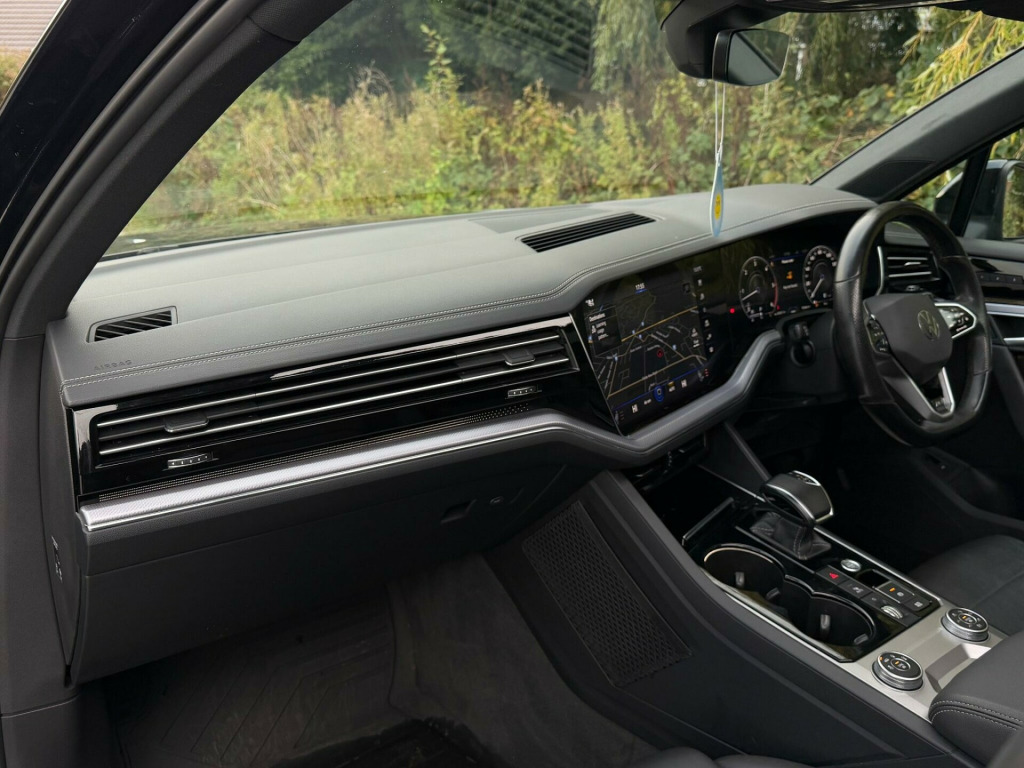 2 FORMER KEEPERS2 KEYSSERVICE HISTORYLOGBOOKEURO 6ULEZ COMPLIANTAmbient Light Pack - ColouredVery rareMemory Pack PlusVery rareSavona R-Line Ergo Comfort Leather - Soul-Burnt Grey-CarbonVery rareLaminated Safety Privacy Glass21in Alloy Wheels - Suzuka Dark GraphiteEquipment:- Auto Climate Control- Automatic Lights- Bluetooth- Cruise Control- Electric Sun Roof- Full Leather Trim- Heated Seats- Rear Parking Sensors- Reversing camera- Sat Nav FunctioningThis 2021 Volkswagen Touareg TDI V6 Black Edition boasts a clear vehicle history, offering peace of mind for its next owner. This Four Wheel Drive model, powered by a 3.0L Diesel Euro 6 engine, combines robust performance with sophisticated features. Inside, you'll find a luxurious 4Zone Climate Control system and a Memory Pack for the seats, ensuring personalised comfort for every journey. The Black Edition trim adds a distinctive touch, while the advanced Parking Assistance suite, including front and rear ultrasonic sensors and a 360 degree Area View camera, makes manoeuvring effortless. Adaptive Cruise Control with Front Assist further enhances the driving experience by monitoring distance to the vehicle ahead.The Touareg excels in practicality and performance, making it a standout choice. Its impressive 3500 kg towing weight capability means it's ready for any adventure or heavy duty task. The generous boot space provides ample room for luggage or equipment, catering to families and those with active lifestyles. Furthermore, its acceleration from 0-62mph in just 6.1 seconds demonstrates its dynamic power, while its position in a low insurance group highlights its cost effectiveness compared to similar vehicles. bient light pack - coloured, memory pack plus, savona r-line ergo comfort leather - soul-burnt grey-carbon, laminated safety privacy glass, 21in alloy wheels - suzuka dark graphite, 12v socket x3, 21in alloy wheels - suzuka glossy black, 4 usb ports located in front storage compartment - centre armrest compartment and 2 in the rear centre console, 4motion active control, abs plus - anti-lock braking system with ebd - electronic brake-pressure distribution and hba-hydraulic brake assist, active bonnet, adaptive cruise control - including front assist - radar sensor controlled distance monitoring system, advanced high-beam control dynamic light assist for led matrix headlights, air suspension, air vents in b-pillar, alarm with interior protection - back up horn and towing protection, ambient lighting - white, automatic coming home lighting function, automatic dimming interior rear view mirror, automatic headlight control, automatic headlight height adjustment, automatic post-collision braking system, autonomous emergency braking, black decorative trims on the side windows, black exterior mirror housings, body coloured door handles, body coloured door mirrors with integrated indicators, body coloured front and rear bumpers, body coloured wheel arch protection, c signature gloss black front air intake, car net - guide and inform (3 year subscription from new), car-net app connect, car-net security and service including ecall, carpet mats - front and rear, central locking with remote control, centre console in high gloss black finish, child security locks for front and rear doors - activated from drivers and front passengers door, chrome trimmed upper and lower grille louvres, climate control - 4zone, coat hook on b pillar x2, cup holders front x2 centre console - illuminated, curtain airbag system for front and rear seats with side impact airbags for front seats, discover premium infotainment system, driver alert system - audible and visual, drivers and front passengers airbags with front passenger airbag deactivation switch, drivers and front passengers double sun visors with illuminated vanity mirrors, drivers and passengers safety optimised head restraints - 4 way adjustable, driving profile selection, esc - electronic stability control including edl - electronic differential lock - asr - traction control and trailer stabilisation function, electric windows - front and rear, electrically heated - adjustable and foldable door mirrors with auto dimming with puddle lighting, electronic engine immobiliser, electronic parking brake with auto hold function, first aid kit and warning triangle, front centre armrest with storage compartment - led lights, front ergocomfort seats with electric 14-way adjustment, front three-point seat belts with height adjustment and seat belt tensioners, full led headlights, galvanised body, gloss black b pillar, gloss black decorative inserts in centre console and doors, glovebox - illuminated and cooled, headlight washer system, heat insulating - tinted glass from b-pillar backwards 80%, heat insulating glass in side and rear windows, heated windscreen washer jets, height and reach adjustable steering column, hill descent assist, hill start assist, iq light - led premium matrix beam headlights with intelligent light modes - dynamic light assist - dynamic indicators and dynamic rear tail lights, isofix child seat preparation for two rear child seats, innovision cockpit with volkswagen digital cockpit, keyless entry, keyless entry - with hands free tailgate opening, keyless start, led luggage compartment lights x2 - left and right, led rear fog light, led rear number plate lights, led white interior lighting, lane assist, leather trimmed gear knob with gloss black inlays and aluminium trim, load lashing points x4 in luggage compartment, load through provisions, luggage compartment cover - electrically operated, luggage compartment cover with retractable convenience opening, memory pack, modular rear seat system with sliding and reclining function - 40-20-40 split, multifunction camera, multifunction computer with 7in colour screen in instrument cluster, multifunction heated r-line steering wheel with paddle shift - leather trimmed, notification of an emergency, one touch indicator, panoramic sunroof, park as