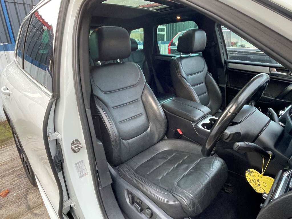 NICE EXAMPLE 3.0 TDI TOUAREG ALTITUDE IN GLACIER WHITE, TAKEN IN PX SOLD AS TRADE SALE REQUIRES CRANK SEAL (DRIPS OIL), STARTS AND DRIVES FLAWLESSLY, PANORAMIC SUNROOF, BLACK WHEELS, GOOD TYRES, ROOF RAILS, BI XENON HEADLIGHTS, DRL'S, FRONT FOG LIGHTS, PRIVACY GLASS, FULL LEATHER INTERIOR, ELECTRIC HEATED FRONT SEATS, DRIVERS MEMORY FUNCTION, HEATED STEERING WHEEL, FRONT AND REAR PARKING SENSORS, SURROUND VIEW CAMERAS, TOUCH SCREEN, INFOTAINMENT SYSTEM, SAT NAV, MEDIA CONNECTIVITY, AUX, BLUETOOTH, DAB RADIO, DUAL ZONE CLIMATE CONTROL, AIR CON, CRUISE CONTROL, MULTI FUNCTION STEERING WHEEL, PLUS USUAL REFINEMENTS, LOOKS AND DRIVES GREAT A MUST SEE, HPI CLEAR, WORLDWIDE SHIPPING, NATIONWIDE DELIVERY, ANY CAR TAKEN IN PX AT TOP PRICES GUARANTEED, WARRANTIES, TEST DRIVES, DRIVEAWAY COVER, ALL SUBJECT TO TERMS, FULL DEALER FACILITIES, EXTREMELY COMPETITIVELY PRICED MOTORS GUARANTEED, BUY WITH CONFIDENCE ESTABLISHED SINCE 2010 WITH THOUSANDS OF MOTORS SOLD TO HAPPY CUSTOMERS.