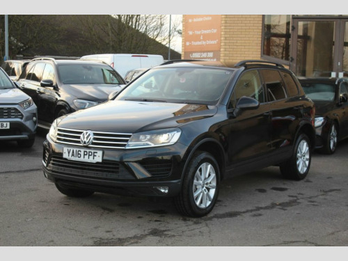 IM car supermarket is pleased to offer this very well Volkswagen Touareg 3.0 TDI V6 BlueMotion Tech Escape Tiptronic 4WD Euro 6 (s/s) 5dr in black colour with only 135,000 on the clock. MOT valid until 6 June 2026. A high specification includes 12V Socket x4, 18in Alloy Wheels - Karakum, 2 Zone Electronic Climate Control with A, ABS Plus - Anti-Lock Braking System with, Air Vent Surrounds - Matt Chrome, Airbags, Alarm with Interior Protection, Automatic Coming-Leaving Home Lighting F, Automatic Dimming Rear View Mirror, Automatic Headlight Height Adjustment, Automatic Post-Collision Braking System, Bag Hooks in the Luggage Compartment, Bi-Xenon 25W Headlights for Dipped and M, Black Round Tailpipes, Bluetooth Telephone Preparation for Hand, Body Coloured Door Handles, Body Coloured Front and Rear Bumpers wit, Body-Coloured Door Mirrors with Integrat, Central Locking with Remote Control, Centre Differential Lock, Child Security Lock