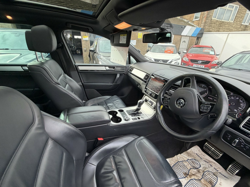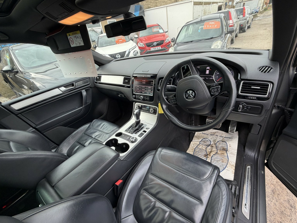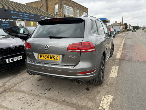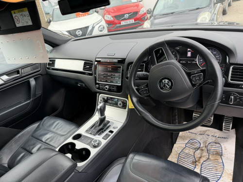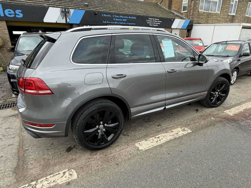 Volkswagen Touareg 3.0 TDI V6 BlueMotion Tech R-Line finished in Grey (Auto), 101,000 miles, 1 previous owner. , Welcome to the sale of this rare opportunity to own a superb example of the Volkswagen Touareg R-Line. , This vehicle has had the same owner since 2018 and comes with complete end-to-end Volkswagen Main Dealer Service History, having been maintained exclusively by just two Volkswagen main agents throughout its life. , ✔ 11 Volkswagen Main Dealer services, ✔ 1 service carried out by our workshop team, ✔ 101,000 miles from new, , This level of documented main dealer history is exceptionally rare and makes this example stand head and shoulders above the rest. , The car has recently benefitted from:, , • 4 brand new tyres, • Recent discs and pads replacement, • Will be fully serviced again prior to sale, • Supplied with a fresh 12 months MOT, , It drives absolutely fantastic with no unwanted noises or issues. Tight, smooth and exactly how a properly maintained Touareg should feel. , With caravan season approaching caravan season, these 3.0 V6 TDI engines are excellent news — strong, refined and more than capable. , Being the R-Line model, this Touareg comes with an exceptionally strong specification. , Exterior specification includes:, , ???? Front & rear parking sensors, ???? Electric tailgate, ???? R-Line styling package, ???? Diamond cut alloy wheels (all with new tyres), ???? LED headlights with washer jets, ???? Electric folding mirrors, ???? 2 keys, , Interior specification includes:, , ???? Fully opening panoramic glass sunroof, ???? 12-way adjustable black leather seats, ???? Heated front seats, ???? Automatic lights, ???? Cruise control, ???? Satellite navigation, ???? DAB radio, ???? Bluetooth phone preparation, ???? Ice cold air conditioning, , A very hard car to find with this ownership profile, specification and complete Volkswagen history. , Only £12,695, , Because we are a RAC-approved dealer, all our vehicles come with free RAC breakdown cover, a free RAC history check, 12 months MOT, and a full service. , Nationwide delivery is available. , Call 01406 373474 for more information (even out of hours). , Please also feel free to contact us outside of hours to discuss this vehicle further.