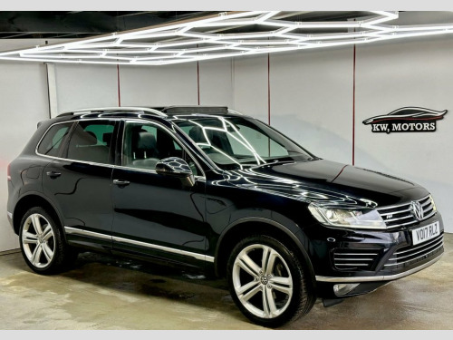 Volkswagen Touareg 215 3.0 V6 TDI BlueMotion Tech 262 R-Line Plus SUV 5dr Tip Auto – a high-performance luxury SUV that combines style, comfort, and advanced technology. This Touareg is equipped with a powerful 3.0 V6 TDI engine and the renowned 4Motion 4-wheel drive system, providing both excellent performance and capability, whether on the road or off. With only 95k miles and a full service history, it's in fantastic condition for its age. Key Features: Full leather interior for ultimate comfort Heated front seats and a heated steering wheel to keep you warm in any weather Multi-function steering wheel for easy control of your media, calls, and cruise settings Automatic lights and wipers for convenience in changing weather conditions Cruise control for smooth long-distance drives Navigation system to keep you on track, plus DAB radio and Bluetooth for entertainment and hands-free calls Front and rear parking sensors for easy parking Electric tailgate and retractable towbar for added convenience Auto Hold Assist and Keyless Start for effortless driving and parking MOT until October 2026 for peace of mind, and only 2 previous owner Free 90 Day Warranty Extendable Warranty Up To 3 Years Available EURO 6 ULEZ COMPLIANT FULLY HPI CLEAR FINANCE AVAILABLE SAME DAY ACCEPTANCE NO DEPOSIT REQUIRED This is a versatile, well-maintained luxury SUV that's ready to take on any adventure, while offering a premium driving experience. Whether you're commuting, taking Nappa Leather - Titan Black, Deep Black, Airbag Pack, Seats - Climate Front, Climate Control - 4Zone Including Electr, Cargo Net & Boot Space Mat, Ambient Lighting Pack, Tinted Glass - Heat Insulating Rear 90% , Parking Heater with Heated Windscreen, 12V Socket x4, 21in Alloy Wheels - Mallory, ABS Plus - Anti-Lock Braking System with, Air Vent Surrounds - Matt Chrome, Airbags, Alarm with Interior Protection, Aluminium Look Pedals, Traffic Sign Recognition, Area View, Automatic Coming-Leaving Home Lighting F, Automatic Dimming Rear View Mirror, Automatic Electric Opening and Closing o, Automatic Headlight Height Adjustment, Automatic Post-Collision Braking System, Bag Hooks in the Luggage