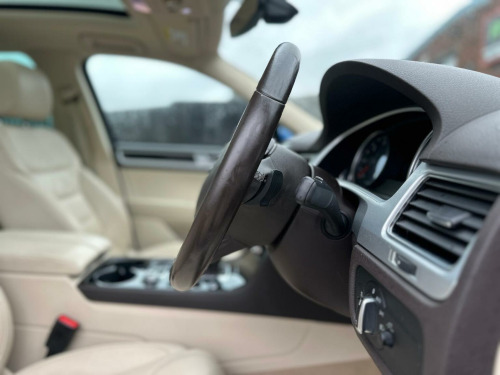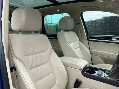 ????WHATSAPP OUR BUSINESS ON 07393833415 ????, ???? Finance available , ????Part Exchange welcome , ????Customer satisfaction is our priority, ⚙️ Extended warranty starting from £399 (subject to car ), ???????? Service history for this vehicle is as follows, 2017 @ 9919, 2018 @ 18403, 2019 @ 33236, 2021 @ 45053, 2022 @ 53970, 2023 @ 63323, 2024 @ 72153, 2025 @ 81963, 2025 @ 84100. This 2016 Volkswagen Touareg TDI V6 R-Line Plus presents a compelling proposition with its remarkably low mileage for its age, having covered just 84,897 miles. As a Euro 6 compliant model, it features a powerful 3.0 litre diesel engine paired with a smooth four wheel drive system, ensuring capable performance in all conditions. The R-Line Plus trim level signifies a premium specification, enhanced by the luxurious Nappa Leather interior in Corn Silk Beige. Driving is made more comfortable and convenient with Bi-Xenon headlights that activate automatically thanks to the dusk sensor, and keyless entry for effortless access. Further elevating the driving experience is the multifunction heated R-Line steering wheel, trimmed in leather and equipped with paddle shifts for manual gear selection, along with controls for the multifunction computer and stereo. This Touareg offers impressive practicality, boasting a large boot space perfect for luggage or shopping. Its performance is also noteworthy, achieving 0-62mph in a swift 7.3 seconds, demonstrating its strong acceleration. The vehicle also benefits from a low insurance group, indicating potentially lower running costs compared to similar vehicles. With a substantial towing weight of 3500 kg, this Touareg is also well suited for those needing to tow. SJ Cars are FCA regulated therefore can act as a credit broker and supply finance through various lenders to get you the best deal, we can also accommodate poor credit applications depending on customer profile. Please visit www.sjapprovedusedcars.co.uk to see a full range of stock, what we offer and our customer 5 star reviews. , Please dont hesitate to get in touch with our friendly staff if you are interes