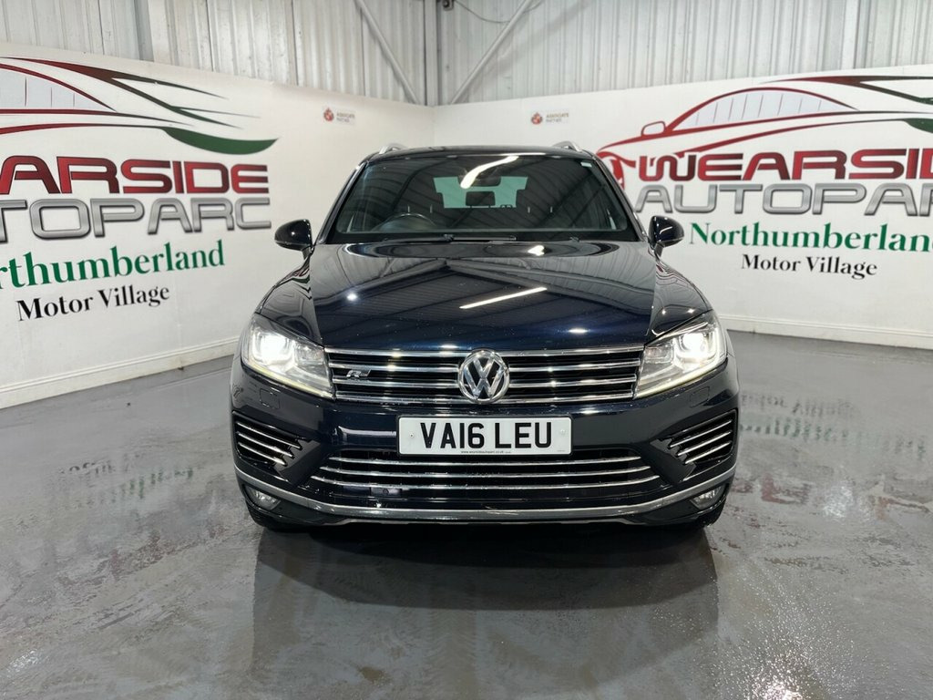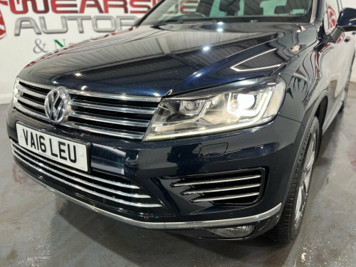 Volkswagen Touareg 3.0 TDI V6 BlueMotion Tech R-Line SUV 5dr Diesel Tiptronic 4WD Euro 6 (s/s) (262 PS). Supplied with two keys and a full main dealer service history recorded at 7, 12, 16, 35 and 58 thousand miles. This R-Line model combines performance, luxury and practicality, offering a superb example of Volkswagen's flagship SUV. Features include alloy wheels, Bluetooth connectivity, panoramic sunroof, privacy glass, keyless start, climate control, electric power tailgate, heated steering wheel, front and rear parking sensors, heated windscreen, heated folding mirrors, automatic headlights, cruise control, full leather upholstery, heated front seats, satellite navigation and DAB digital radio. Powered by the refined 3.0-litre V6 TDI engine producing 262 PS, paired with a smooth Tiptronic automatic gearbox and 4MOTION all-wheel drive, this Touareg delivers strong performance and comfort with premium build quality throughout. 12V Socket x4, 2 Zone Electronic Climate Control with A, 20in Alloy Wheels - Tarragona, ABS Plus - Anti-Lock Braking System with, Air Vent Surrounds - Matt Chrome, Airbags, Alarm with Interior Protection, Automatic Coming-Leaving Home Lighting F, Automatic Dimming Rear View Mirror, Automatic Electric Opening and Closing o, Automatic Headlight Height Adjustment, Automatic Post-Collision Braking System, Bag Hooks in the Luggage Compartment, Bi-Xenon 35W Dipped and Main Beam Headli, Black Rooflining, Bluetooth Telephone Preparation for Hand, Body Coloured Door Handles, Body Styling Kit - R-Line, Body-Coloured Door Mirrors with Integrat, Central Locking with Remote Control, Child Security Locks
