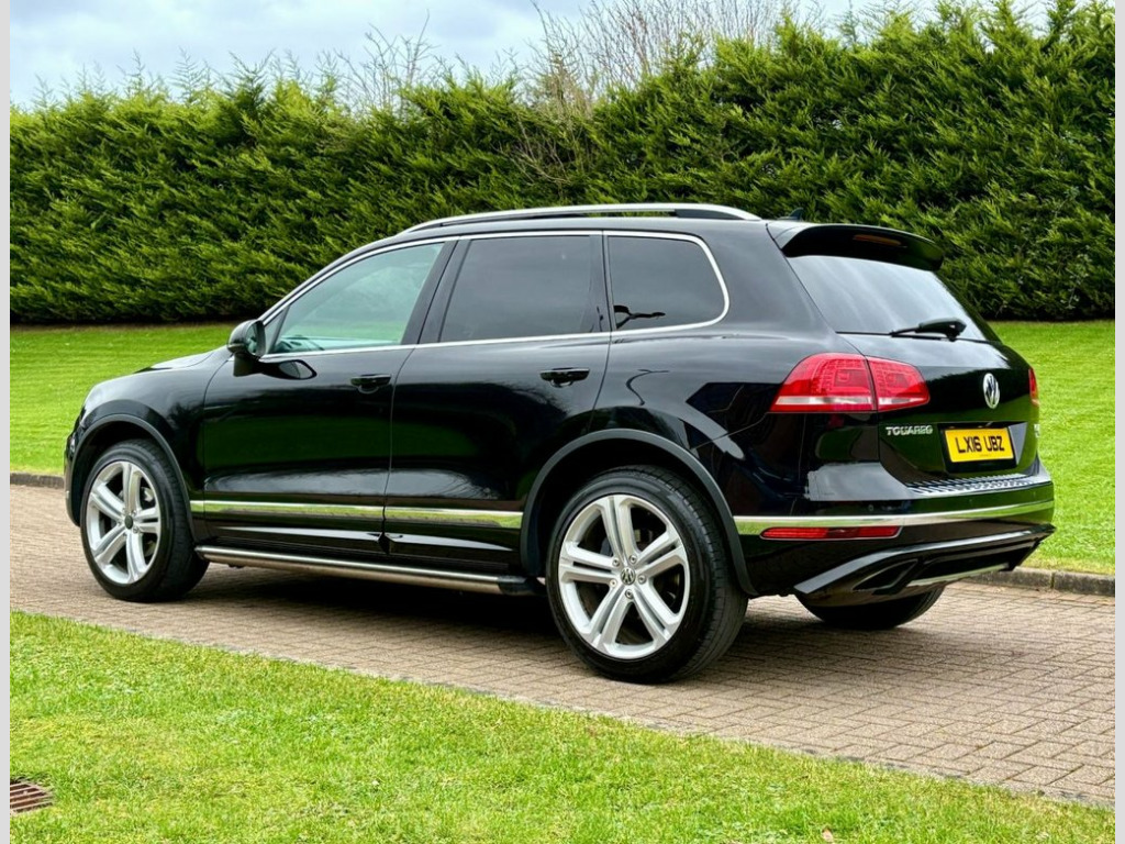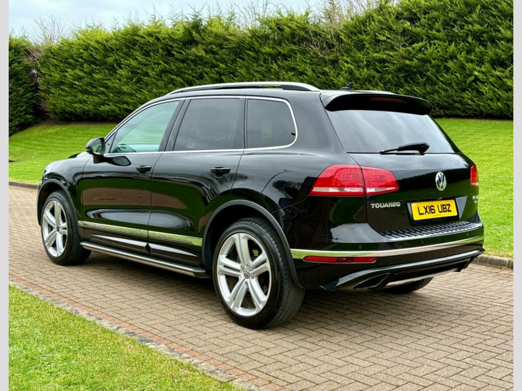 March 2016 VW Touareg 3.0 V6 TDI Bluemotion Tech R-Line Auto in Black. Full Service History & MOT'd to June 2026. Loaded with spec including Tilt & Slide Panoramic Glass, Full Black Leather Interior, Heated Seats, Multifunctional Steering Wheel, Touch Screen Media Steering Wheel, Upgraded Alloys, Bluetooth, Central Armrest, LED Daytime Running Lights, Privacy Glass etc. FINANCE AVAILABLE AT KEEN RATES!! Viewing by Appointment Only Please. 12V Socket - 2nd Row Seats, 12V Socket - Centre Console, 12V Socket - Front Centre Armrest, 12V Socket - Luggage Compartment, 2 Zone Electronic Climate Control with A, 20in Alloy Wheels - Tarragona, ABS - Anti-Lock Braking System, Active Rollover Protection System, Air Vent Surrounds - Chrome Trimmed, Airbags - Curtain, Airbags - Driver, Airbags - Front Passenger, Airbags - Front Passenger with Deactivat, Airbags - Front Seat Side Impact, Alarm with Interior Protection, Aluminium Look Pedals, Anti-Theft Wheel Bolts, Armrest - Front Centre with Storage Comp, ASR - Anti Slip Regulation, Automatic Dimming Rear View Mirror, Automatic Headlight Height Adjustment, Automatic Post-Collision Braking