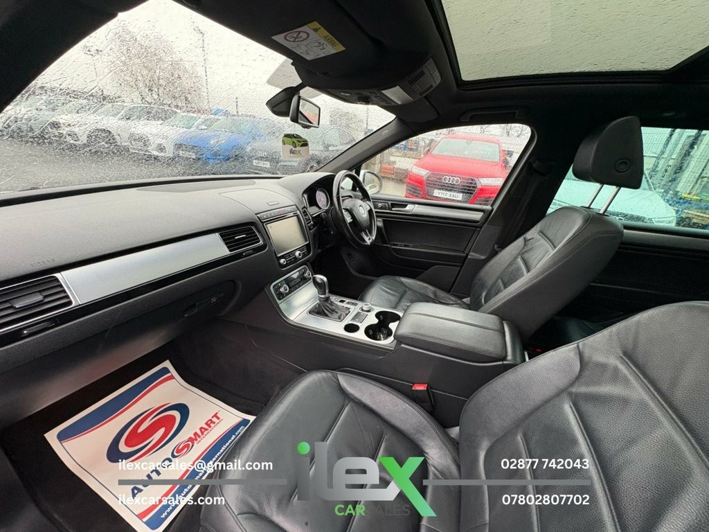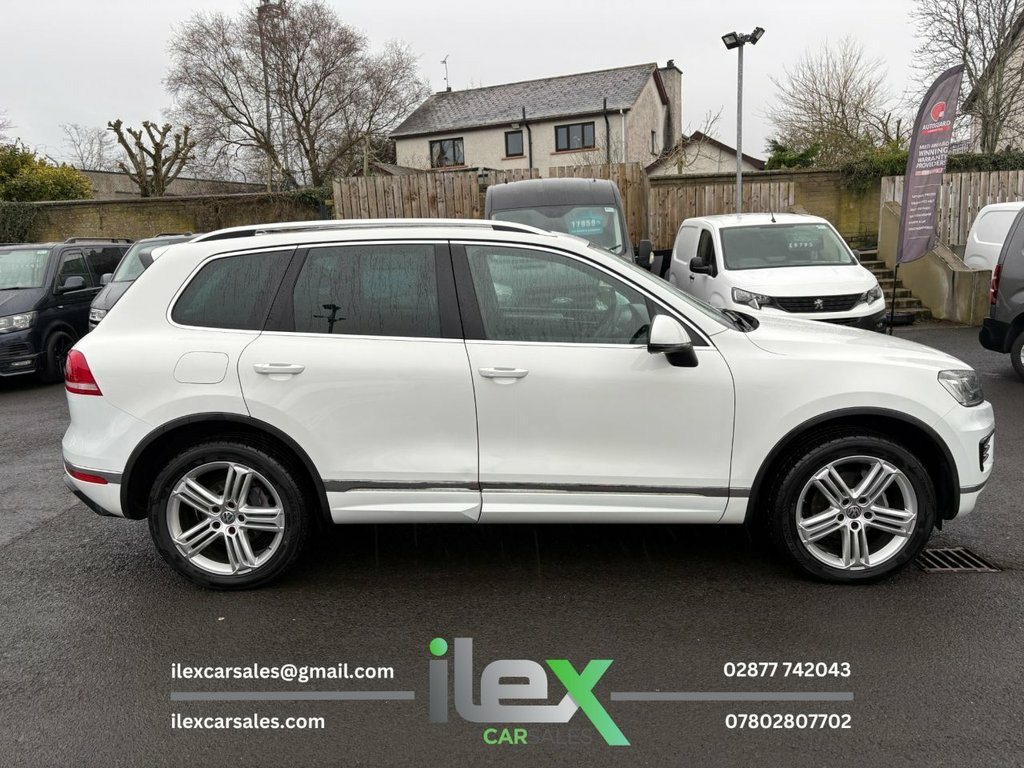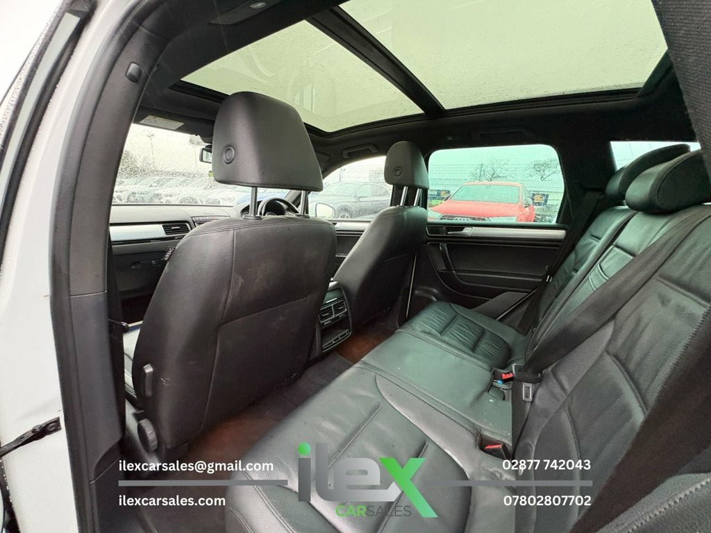 2015 Volkswagen Touareg 3.0 TDI V6 R-Line 4Motion Big power, big presence and serious comfort — this R-Line Touareg delivers effortless V6 performance with luxury SUV refinement. Finished in White, packed with spec and built to tow, tour and cruise in total comfort. Highlights: 3.0 V6 TDI Diesel | Tiptronic Auto | 4Motion AWD 262PS | 104,160 Miles | Euro 6 R-Line Exterior & Interior Styling Pack Panoramic Glass Sunroof Heated Front Seats + Heated Steering Wheel RNS 850 Touchscreen Navigation | DAB | Bluetooth Electric Tailgate | Keyless Entry Paddle Shift | Cruise Control Bi-Xenon Headlights with LED DRLs Front & Rear Parking Sensors Modular Sliding & Reclining Rear Seats 20" Tarragona Alloy Wheels Sports Suspension | Trailer Stability Control Price: £13,750 Ilex Car Sales 416 Ballyquin Road, Dungiven, Derry, BT47 4NQ 02877 742043 - 07802807702 www.ilexcarsales.co.uk – View all available stock 12V Socket - 2nd Row Seats, 12V Socket - Centre Console, 12V Socket - Front Centre Armrest, 12V Socket - Luggage Compartment, 2 Zone Electronic Climate Control with A, 20in Alloy Wheels - Tarragona, ABS - Anti-Lock Braking System, Active Rollover Protection System, Air Vent Surrounds - Chrome Trimmed, Airbags - Curtain, Airbags - Driver, Airbags - Front Passenger, Airbags - Front Passenger with Deactivat, Airbags - Front Seat Side Impact, Alarm with Interior Protection, Aluminium Look Pedals, Anti-Theft Wheel Bolts, Armrest - Front Centre with Storage Comp, ASR - Anti Slip Regulation, Automatic Dimming Rear View Mirror, Automatic Headlight Height Adjustment, Automatic Post-Collision Braking