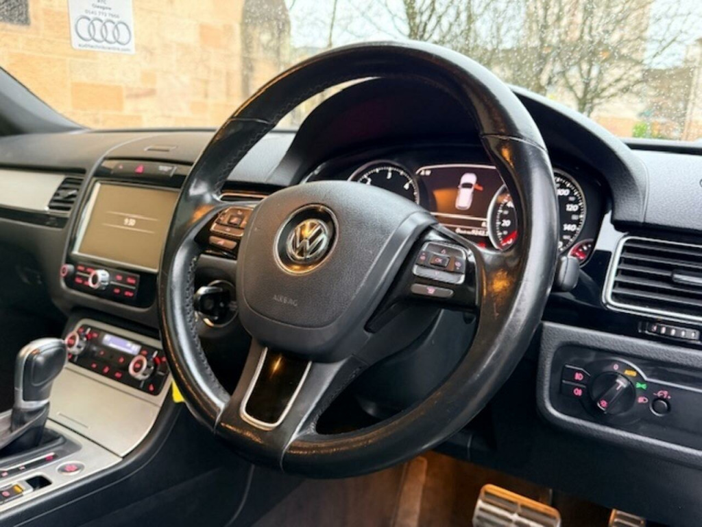 This 2014 Volkswagen Touareg 3.0 TDI V6 BlueMotion Tech R-Line SUV 5dr Diesel Tiptronic 4WD Euro 5 (s/s) SUV is currently available for £12,999 in Glasgow with Diesel engine and Automatic gearbox. For more information or to arrange a viewing, click here to send us an email using form below.
