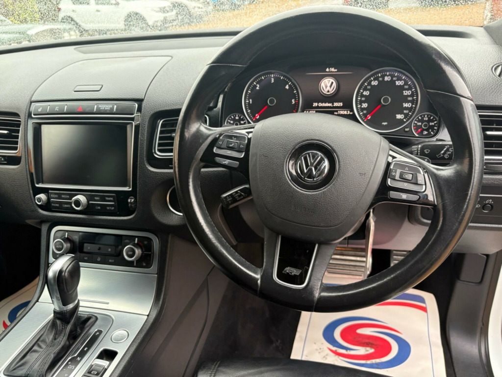 This 2015 Volkswagen Touareg TDI V6 R Line presents with exceptionally low mileage for its age, having covered just 64,405 miles. This impressive example of the R Line trim boasts a powerful 3.0 litre diesel engine paired with Four Wheel Drive, ensuring capable performance in all conditions. It meets Euro 6 emissions standards and offers a substantial towing weight of 3500 kg. Provenance is further supported by an MOT valid until June 2026 and a partial service history, with the last service completed at 62,575 miles on 20th May 2025. Notable features include front parking sensors with parking assistance, a heated steering wheel for added comfort, and dusk sensing headlights with a coming and leaving home function. You'll also appreciate the electric and sliding glass panoramic sunroof and the convenience of keyless entry.The Touareg R Line stands out with its remarkable acceleration, achieving 0-62mph in a swift 7.3 seconds, a performance that indicates its dynamic capabilities compared to many similar vehicles. Its low insurance group rating is another advantage, suggesting more affordable ownership. Furthermore, the generous boot space makes it an exceptionally practical choice for families or those needing ample storage. This vehicle is offered with a 3 month warranty, providing peace of mind for its next owner.. 12V Socket - 2nd Row Seats, 12V Socket - Centre Console, 12V Socket - Front Centre Armrest, 12V Socket - Luggage Compartment, 2 Zone Electronic Climate Control with Automatic Air Recirculation, 20in Alloy Wheels - Tarragona, ABS - Anti-Lock Braking System, ASR - Anti Slip Regulation, Active Rollover Protection System, Air Vent Surrounds - Chrome Trimmed, Airbags - Curtain, Airbags - Driver, Airbags - Front Passenger, Airbags - Front Passenger with Deactivation Switch, Airbags - Front Seat Side Impact, Alarm with Interior Protection, Aluminium Look Pedals, Anti-Theft Wheel Bolts, Armrest - Front Centre with Storage Compartment, Automatic Dimming Rear View Mirror, Automatic Headlight Height Adjustment, Automatic Post-Collision Braking System, Bluetooth Telephone Preparation for Hands Free Profile Enabled Telephones, Body Coloured Bumpers, Body Coloured Door Handles, Body Styling Kit - R-Line, Body-Coloured Door Mirrors with Integrated Indicators, CD Radio, Carpet Mats - Front and Rear, Child Security Locks in the Rear Doors Electric, Coat Hook on B Pillar, Colour Screen - 8in, Cruise Control, Cup Holders - Front x2, Cup Holders - Rear x2, DAB+ - Digital Radio Reception, Darkened Rear Light Clusters and Indicators, Dashboard - Gloss Black Panel, Daytime Running Lights - LED, Differential Lock - Electronic, Door Mirrors - Electrically Adjustable-Heated and Folding, Driver Alert System, EBD - Electronic Brake Pressure Distribution, ESP - Electronic Stability Programme, Electric Windows - Front and Rear, Electronic Engine Immobiliser, Electronic Parking Brake with Auto Hold Function, Exhaust Tailpipes - Chrome Angular, First Aid Kit and Warning Triangle, Footwell Illumination - Front and Rear, Front Fog Lights with Cornering Lights, Gloss Black B Pillar, Glovebox - Illuminated - Cooled - Lockable, HBA - Hydraulic Brake Assist, Hard Drive - 60GB, Head Restraints - Front 4-Way Adjustment, Headlight Washer System, Headlights - Bi-Xenon - Gas Discharged, Headlights - Dusk Sensor with Coming-Leaving Home Function, Heated Front Seats, Heated Windscreen Washer Jets, Height and Reach Adjustable Steering Column, Hill Descent Assist, Hill Start Assist, ISOFIX Child Seat Preparation, Inlays - Silver Lane, Interior Light including Two Reading Lights, Keyless Entry, Leather Trimmed Gear Knob, Load Lashing Points x4 in Luggage Compartment, Load Sill Protector, Luggage Compartment - Hooks, Luggage Compartment Cover, MDI - Multi Device Interface, Modular Rear Seat System with Sliding and Reclining Function, Multifunction Computer with 7in Colour Screen in Instrument Cluster, One Touch Indicator, Panoramic Sunroof - Electric and Sliding Glass, Parking Sensors - Front, Parking Sensors - Rear, Power Assisted Steering - Speed Sensitive, R-Line Exterior Badge, R-Line Styling Pack - Front and Rear Bumpers - Radiator Grille and Side Skirts, RNS 850 Touch Screen Satellite Navigation Radio System with Integrated Voice Control, Radiator Grille - Chrome Trimmed Louvre Inserts, Rain Sensor, Rear Centre Armrest, Rear Roof Spoiler, Rear Tail Lights and Rear Number Plate Lights - LED, Remote Unlocking for Tailgate on Drivers Side, Roof Lining - Black, Roof Rails - Matt Chrome Finish, SD Card Reader, Seatbelt Reminder, Seats - Front 6-Way Manual Adjustment, Seats - Front Lumbar Support, Side Window Surrounds - Chrome, Spare Wheel - Space Saver, Sports Suspension, Steering Wheel - Heated, Steering Wheel - Leather Trimmed & Electrically Heated, Steering Wheel - Multifunction, Steering Wheel - Paddle Shift, Storage Compartment in Dashboard Centre with Cover, Storage Compartment in Drivers Door for 1.5 Litre Bottle, Storage Compartment in Passengers Door for 1.0 Litre Bottle, Sun Visors - Illuminated Mirrors, TCS - Traction Control System, Tailgate - Electric, Tinted Glass - Heat Insulating Rear 65 Percent Light Absorbing from B Pillar Backwards, Trailer Stability Control, Tyre Mobility Kit, Tyre Pressure Monitoring System - Electronic. Part service history