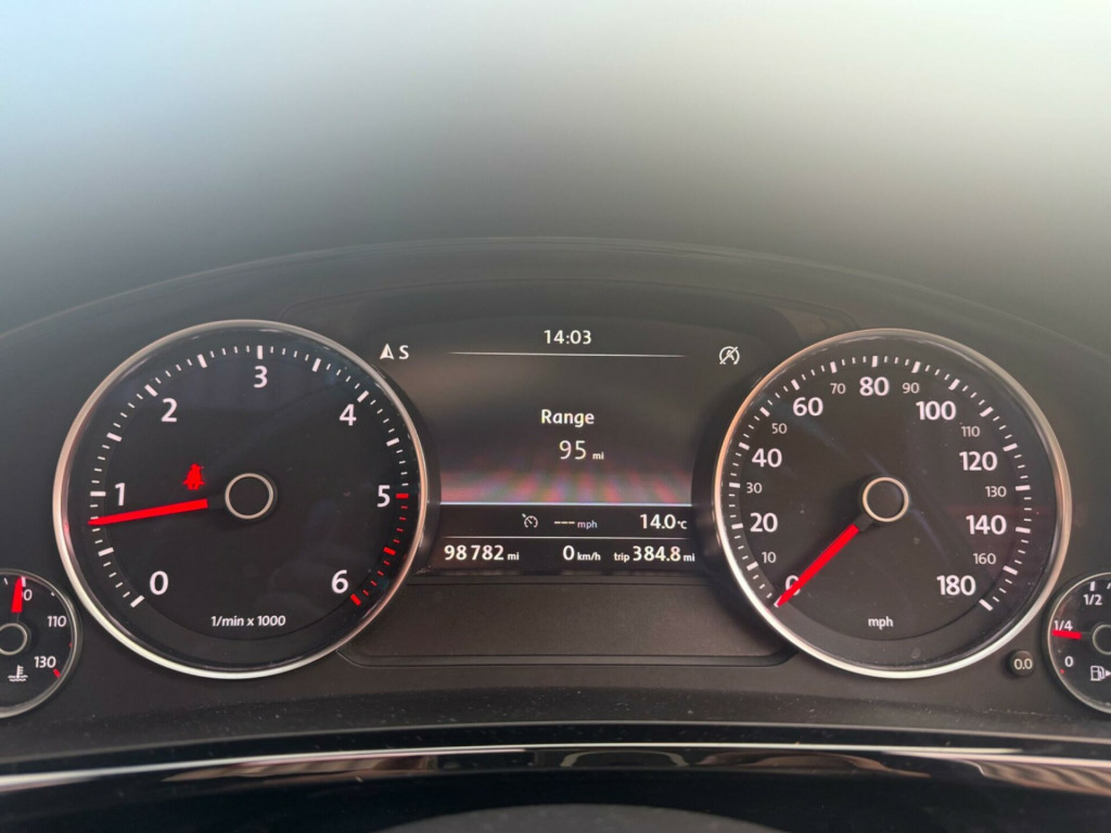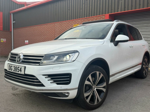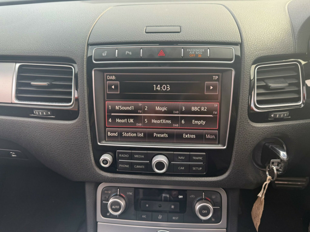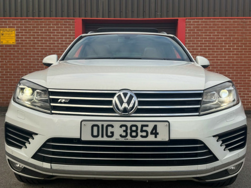 This 2015 Volkswagen Touareg TDI V6 R-Line presents a compelling proposition with its remarkably low mileage of just 98,000 miles for its age and a history of only two owners. As a Euro 6 compliant model, this Four Wheel Drive SUV is powered by a robust 3.0 litre diesel engine, offering a blend of performance and efficiency. The R-Line trim ensures a premium experience, featuring desirable additions such as heated front seats for comfort in any weather, front and rear parking sensors to aid manoeuvrability, and advanced Bi-Xenon headlights for superior visibility. Inside, you'll also appreciate the convenience of 2 Zone Electronic Climate Control with automatic air recirculation, ensuring a pleasant cabin environment for all occupants.The Touareg TDI V6 R-Line stands out with several key advantages. Its impressive acceleration, achieving 0-62mph in just 7.3 seconds, demonstrates its dynamic capability, a performance that surpasses many vehicles in its class. Furthermore, its substantial towing weight of 3500 kg makes it an exceptionally capable choice for those needing to tow caravans, trailers, or boats. The generous boot space offers ample room for luggage, shopping, or equipment, highlighting its practicality for everyday use and adventures alike. Coupled with its low insurance group, this Touareg offers a well rounded package of performance, utility, and value., v socket - 2nd row seats, 12v socket - centre console, 12v socket - front centre armrest, 12v socket - luggage compartment, 2 zone electronic climate control with automatic air recirculation, 20in alloy wheels - tarragona, abs - anti-lock braking system, asr - anti slip regulation, active rollover protection system, air vent surrounds - chrome trimmed, airbags - curtain, airbags - driver, airbags - front passenger, airbags - front passenger with deactivation switch, airbags - front seat side impact, alarm with interior protection, aluminium look pedals, anti-theft wheel bolts, armrest - front centre with storage compartment, automatic dimming rear view mirror, automatic headlight height adjustment, automatic post-collision braking system, bluetooth telephone preparation for hands free profile enabled telephones, body coloured bumpers, body coloured door handles, body styling kit - r-line, body-coloured door mirrors with integrated indicators, cd radio, carpet mats - front and rear, child security locks in the rear doors electric, coat hook on b pillar, colour screen - 8in, cruise control, cup holders - front x2, cup holders - rear x2, dab+ - digital radio reception, darkened rear light clusters and indicators, dashboard - gloss black panel, daytime running lights - led, differential lock - electronic, door mirrors - electrically adjustable-heated and folding, driver alert system, ebd - electronic brake pressure distribution, esp - electronic stability programme, electric windows - front and rear, electronic engine immobiliser, electronic parking brake with auto hold function, exhaust tailpipes - chrome angular, first aid kit and warning triangle, footwell illumination - front and rear, front fog lights with cornering lights, gloss black b pillar, glovebox - illuminated - cooled - lockable, hba - hydraulic brake assist, hard drive - 60gb, head restraints - front 4-way adjustment, headlight washer system, headlights - bi-xenon - gas discharged, headlights - dusk sensor with coming-leaving home function, heated front seats, heated windscreen washer jets, height and reach adjustable steering column, hill descent assist, hill start assist, isofix child seat preparation, inlays - silver lane, interior light including two reading lights, keyless entry, leather trimmed gear knob, load lashing points x4 in luggage compartment, load sill protector, luggage compartment - hooks, luggage compartment cover, mdi - multi device interface, modular rear seat system with sliding and reclining function, multifunction computer with 7in colour screen in instrument cluster, one touch indicator, panoramic sunroof - electric and sliding glass, parking sensors - front, parking sensors - rear, power assisted steering - speed sensitive, r-line exterior badge, r-line styling pack - front and rear bumpers - radiator grille and side skirts, rns 850 touch screen satellite navigation radio system with integrated voice control, radiator grille - chrome trimmed louvre inserts, rain sensor, rear centre armrest, rear roof spoiler, rear tail lights and rear number plate lights - led, remote unlocking for tailgate on drivers side, roof lining - black, roof rails - matt chrome finish, sd card reader, seatbelt reminder, seats - front 6-way manual adjustment, seats - front lumbar support, side window surrounds - chrome, spare wheel - space saver, sports suspension, steering wheel - heated, steering wheel - leather trimmed & electrically heated, steering wheel - multifunction, steering wheel - paddle shift, storage compartment in dashboard centre with cover, storage compartment in drivers door for 1.5 litre bottle, storage compartment in passengers door for 1.0 litre bottle, sun visors - illuminated mirrors, tcs - traction control system, tailgate - electric, tinted glass - heat insulating rear 65 percent light absorbing from b pillar backwards, trailer stability control, tyre mobility kit, tyre pressure monitoring system - electronic