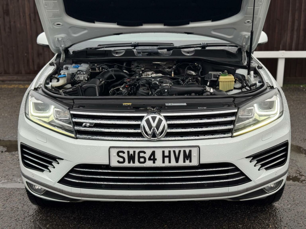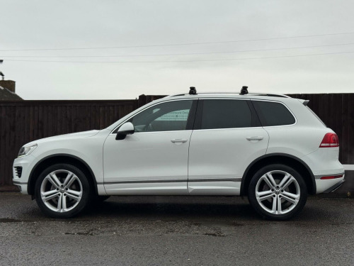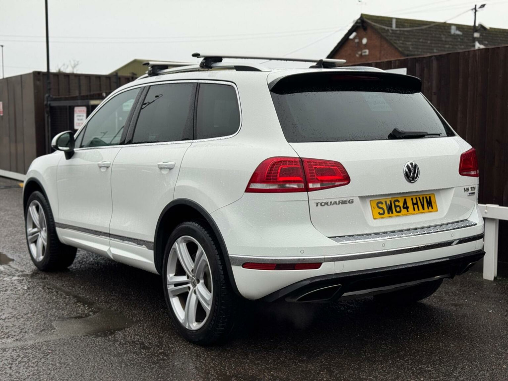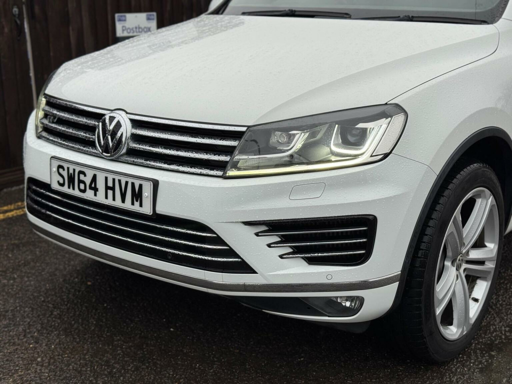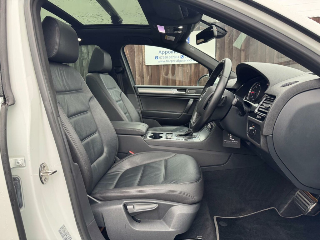 Please call Ryan on 01296 435568 for more details. Here we have a luxurious, high spec & very well cared for 2014 (64) Volkswagen Touareg 3.0 TDI V6 BlueMotion Tech R-Line Tiptronic 4WD in stock. This car comes with road tax that costs just £395 per year & averages 39.2 MPG, offering reasonable running costs. Recently serviced & will be supplied with 12 months MOT & a FREE 6 month nationwide warranty. DETAILS- Finished in Pure White with Full Black Leather & Silver Mallory 21 Alloy Wheels. A lovely example with only 4 owners from new, 2 remote keys & drives superbly with its 8 speed automatic gearbox & silky smooth 242 BHP diesel engine. SPEC- The R-Line model comes with a Touch Screen Interface, Sat Nav, Glass Pan Roof, Heated Front Seats, Heated Steering Wheel, DAB Radio, Front & Rear Parking Sensors, Cruise Control, Bluetooth Handsfree, AUX & USB Connection, Air Conditioning - 4 Zone Electronic Climate Control, Electric Door Mirrors, Privacy Glass, Auto Lights Wipers, & ISOFIX. HISTORY– Last serviced at 68,979 miles in July 2025, with a total of 7 services carried out. SERVICES: 9K (2016), 16K (2016), 23K (2017), 39K (2019), 61K (2022), 61K (2023), 68K (2025). The MOT expires in July 2026 & passed with no advisories. MILES- This VW has covered 69,754 miles from new. It was first registered on 19th December 2014. CONDITION- The car is in very good condition inside and out overall, with some minor stone chips on the bodywork consistent with age and mileage. A detailed walk around video can be found on our TMR Prestige Services Youtube channel highlighting these. ABOUT US – TMR Prestige Services Ltd are a father & son family run business based in Stoke Mandeville, Aylesbury. 2026 is our 12th year of trading in low mileage, high specification cars. We operate by appointment only & are open 7 days a week. We pride ourselves on giving a five star service. Please take a moment to view our reviews on Auto Trader and Google – we are very proud of them. Part Exchange, Extended Warranties & Nationwide Delivery Available (fees apply).