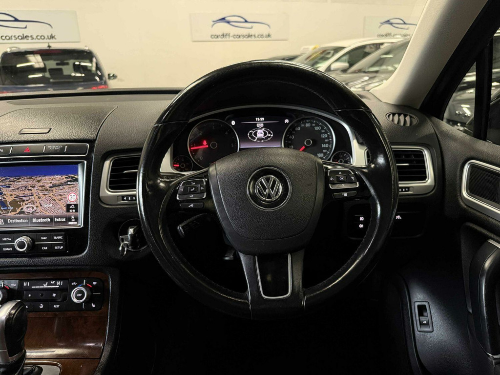This 2017 Volkswagen Touareg 3.0 TDI V6 BlueMotion Tech SE SUV is currently available for £16,495 in Cardiff Mid Glamorgan with Diesel engine and Auto Clutch Manual gearbox. For more information or to arrange a viewing, click here to send us an email using form below.