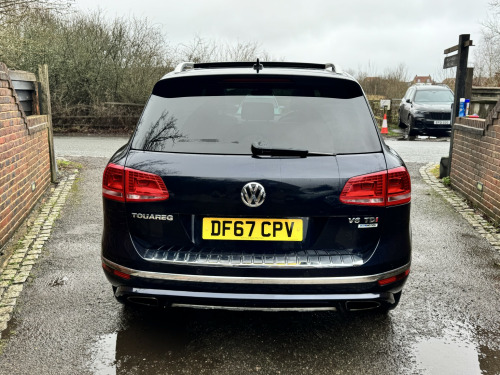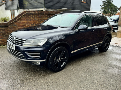 Direct Car Sales are excited to offer a 2017 VOLKSWAGEN TOUAREG, a highly sought-after model that is ideal for large families. This blue diesel vehicle boasts a 2967cc engine, providing a reliable and efficient driving experience. With its impressive service history, last serviced in February 2026, you can have peace of mind knowing that this car has been well-maintained. , The TOUAREG features a range of desirable specifications, including an opening panoramic roof, heated steering wheel, satellite navigation, heated leather seats, and an electric tailgate. Additionally, the vehicle is equipped with a tow bar, xenon headlights, air conditioning, Bluetooth connectivity, and cruise control. The convenience of keyless start and stop technology adds to the overall driving experience. , As a rare R-Line model, this TOUAREG stands out from the crowd. Its ULEZ compliance ensures that you can drive in London without incurring additional charges. We are pleased to offer low-rate finance options, making this vehicle more accessible to families. Furthermore, we include a three-month warranty for added reassurance. , This VOLKSWAGEN TOUAREG is a fantastic choice for large families, offering ample space, comfort, and practicality. With its impressive specification and excellent condition, we are confident that this vehicle will meet the needs of families seeking a reliable and feature-rich car. Please do not hesitate to contact us to arrange a viewing or to discuss the details of this exceptional vehicle.